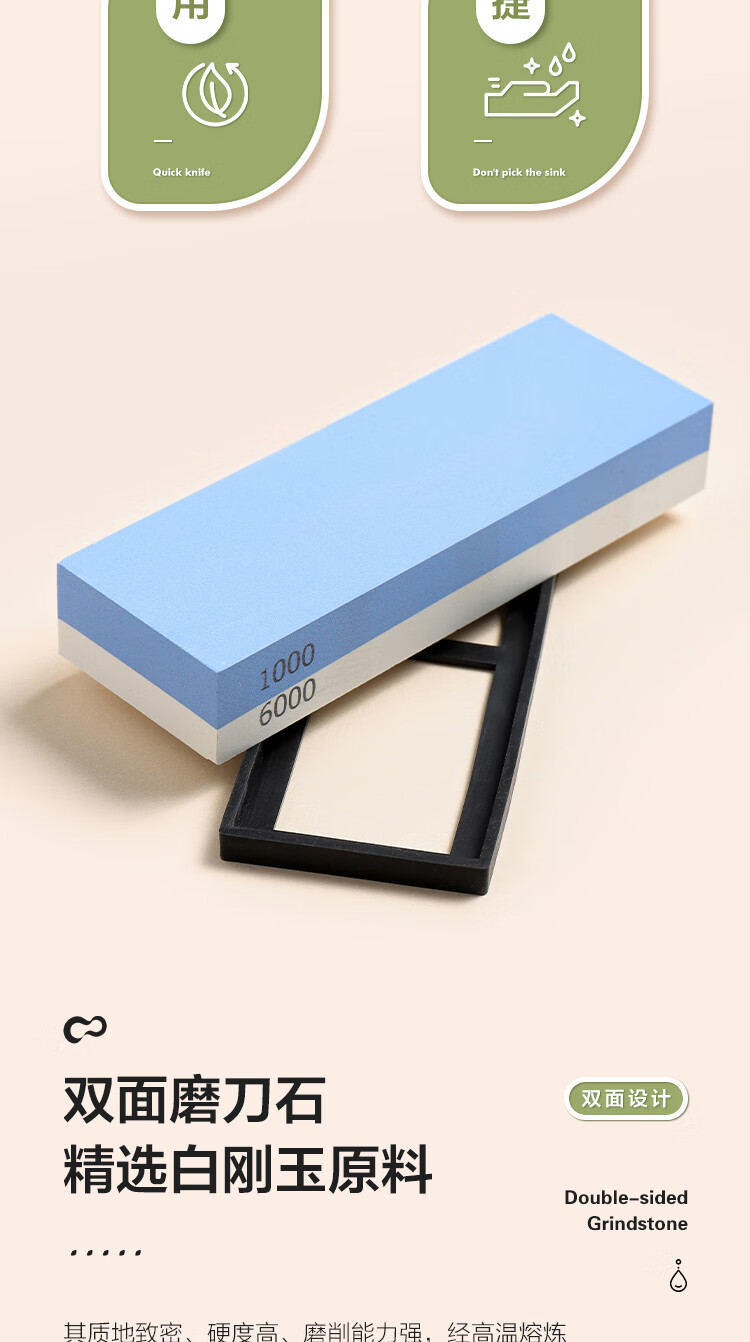 Fat Donglai same style whetstone white corundum double-sided household kitchen knife 1000/6000 mesh whetstone set
