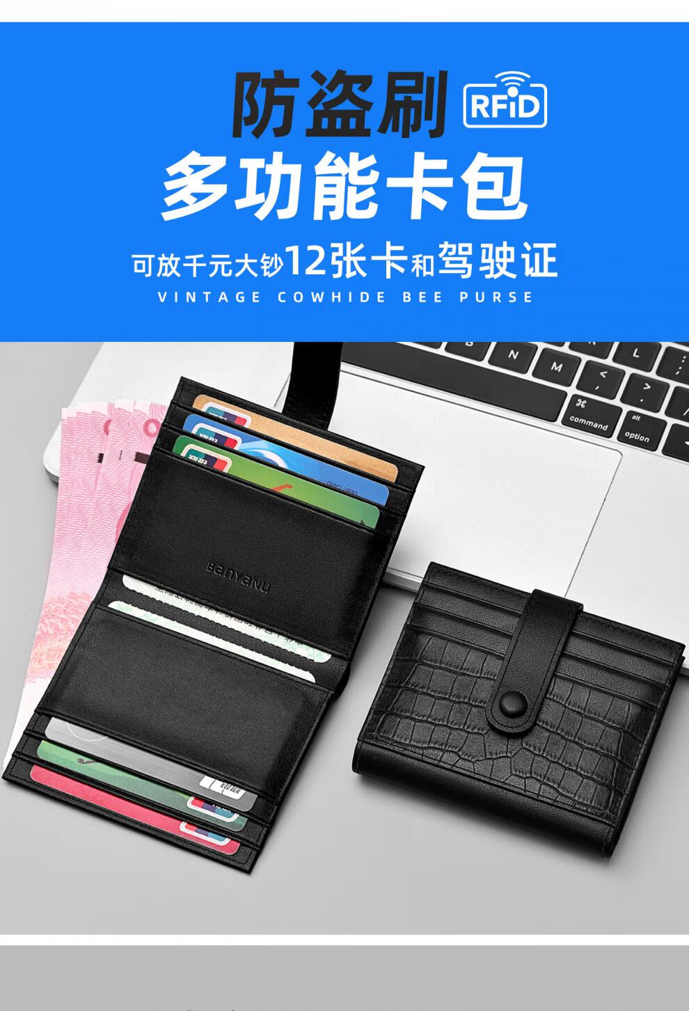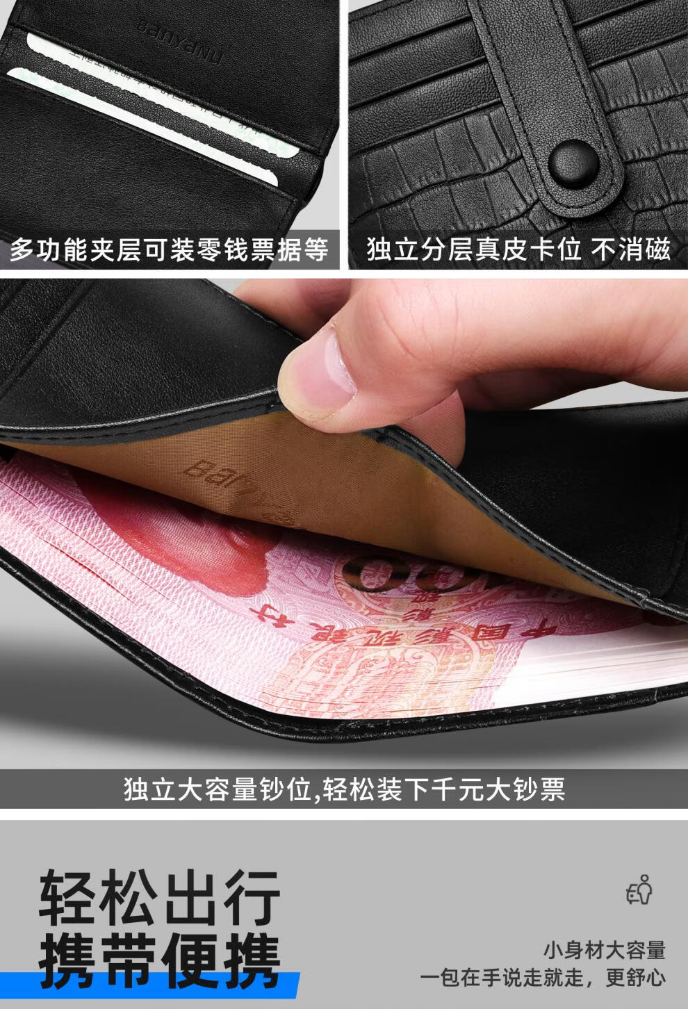 Banyanu wallet short style for men and women 2025 new first layer cowhide simple design wallet cowhide driver's license card holder brown (Napa pattern first layer cowhide) anti-theft brush