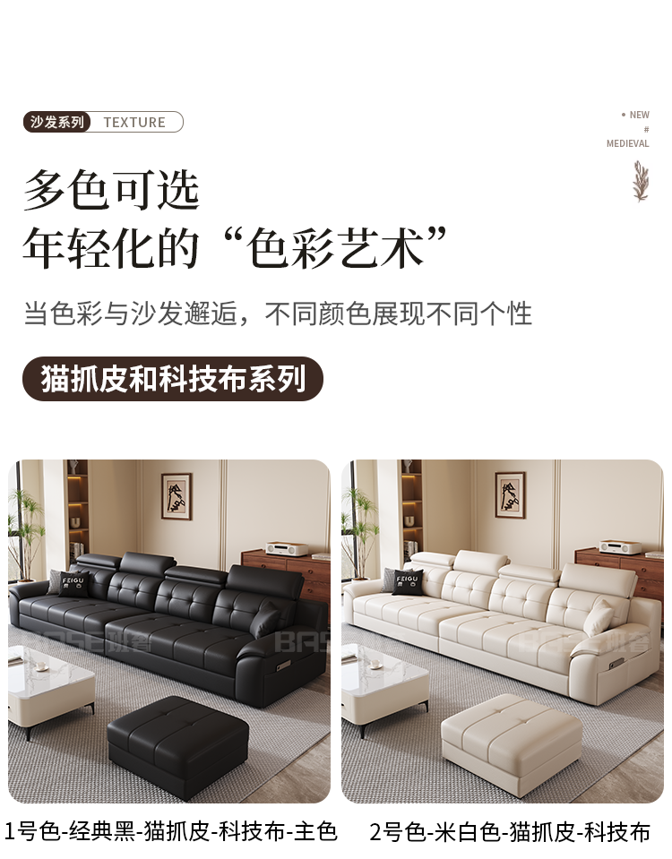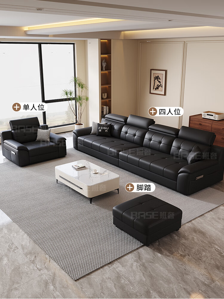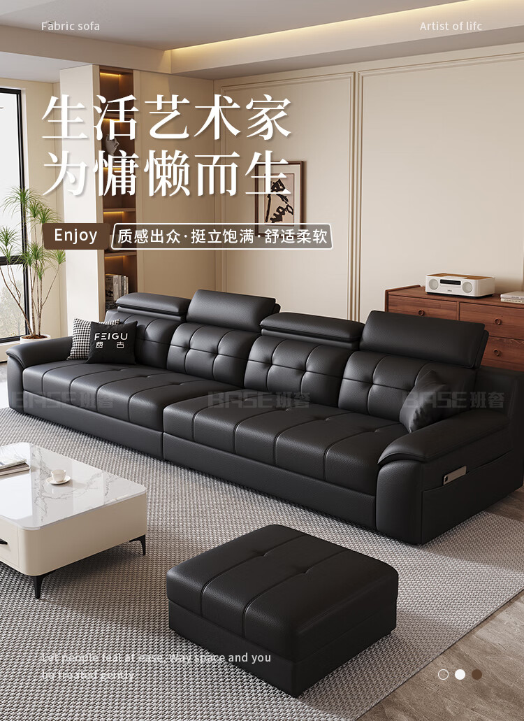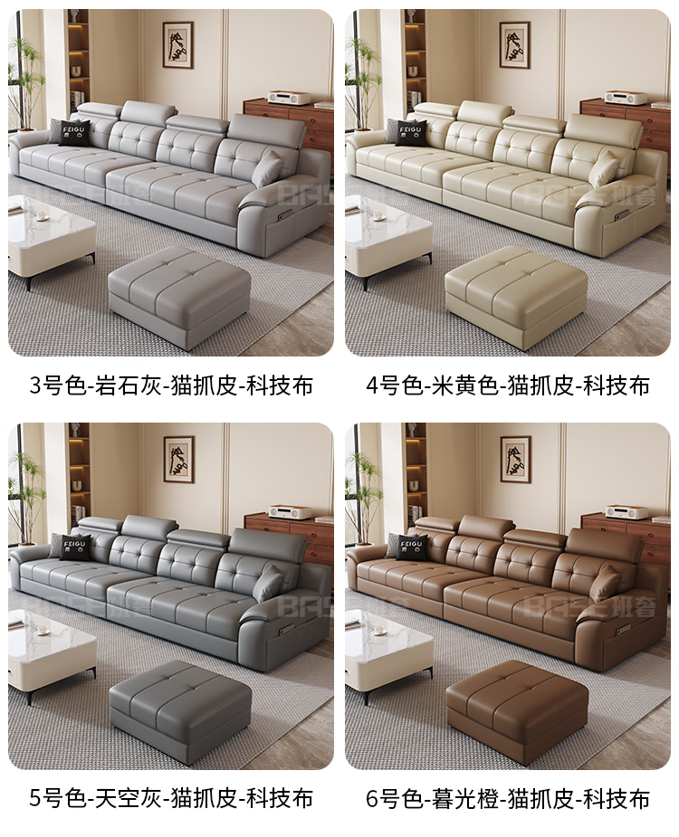 Banshe Italian-style Lawrence leather sofa living room light luxury 2025 new modern simple cat scratch leather art straight sofa 3.4 meters four-seater cat scratch leather wear-resistant and scratch-resistant S-grade leather + 55D natural latex cushion + solid wood frame