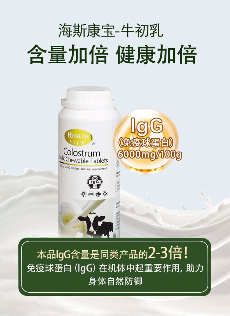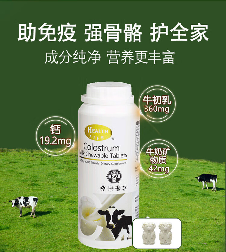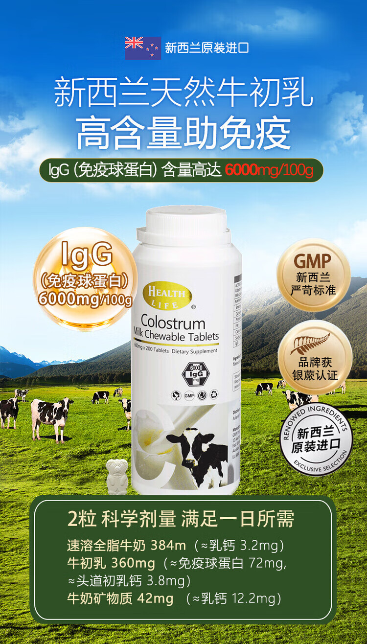 Healthlife New Zealand imported high content colostrum tablets, whey high calcium milk tablets 200 tablets 1 bottle