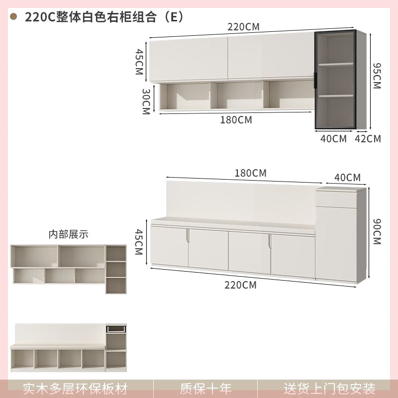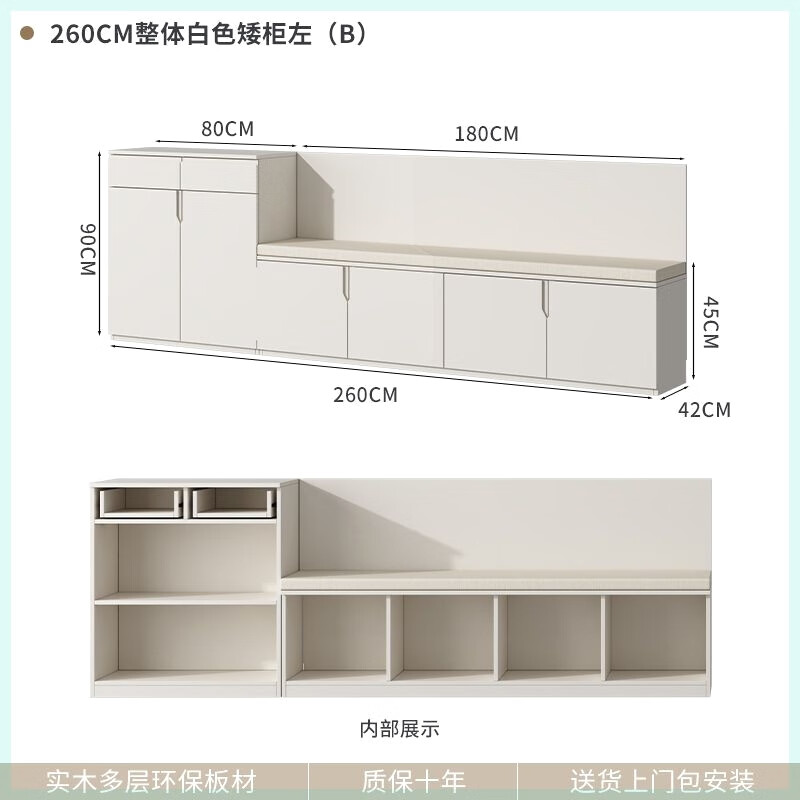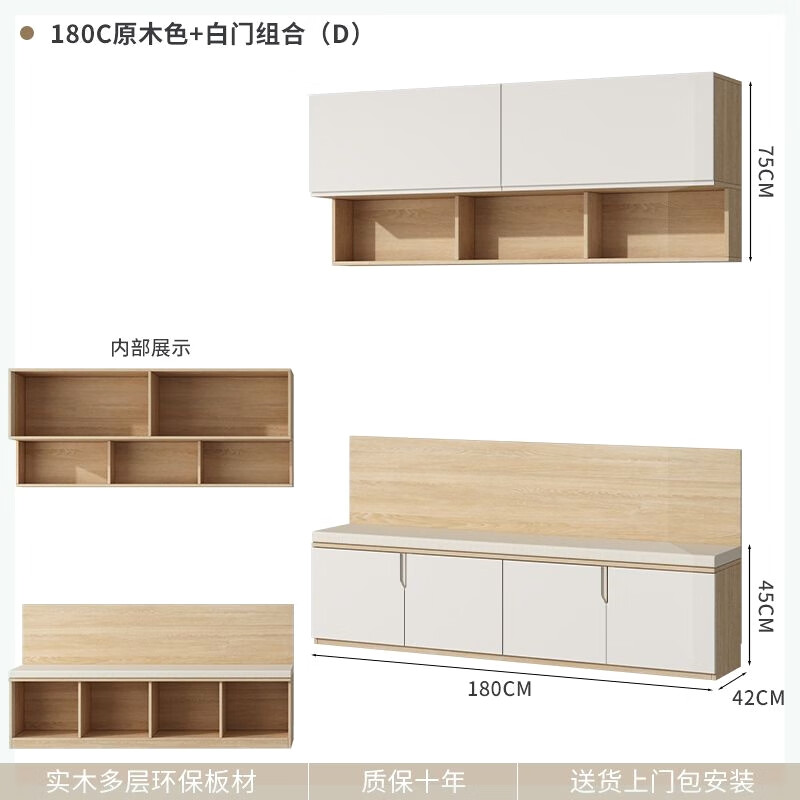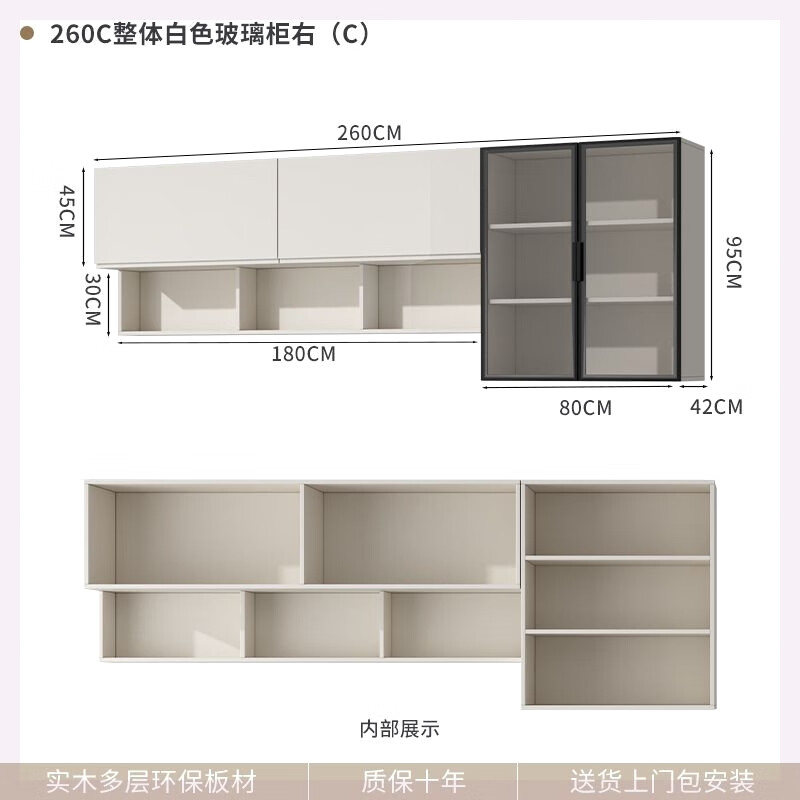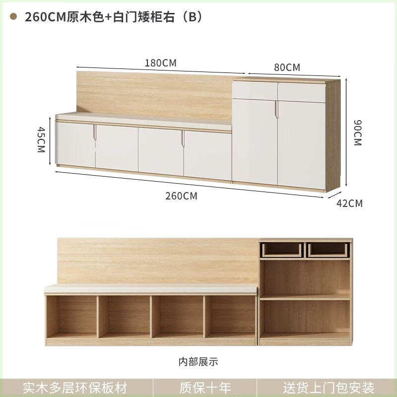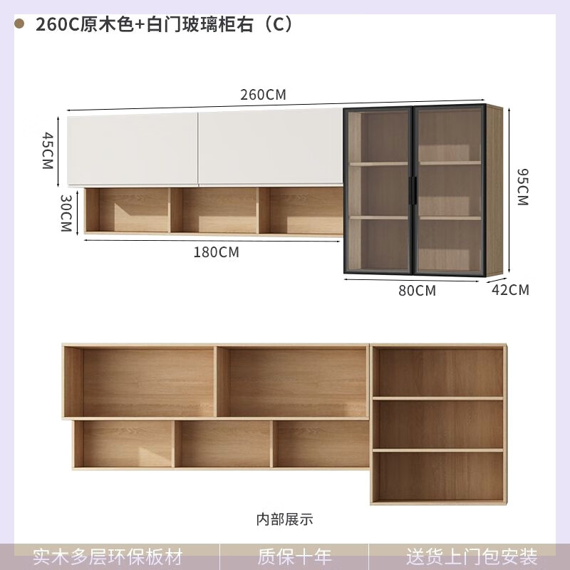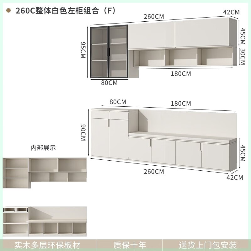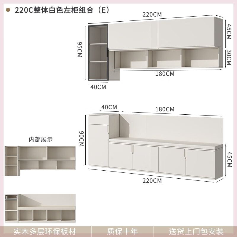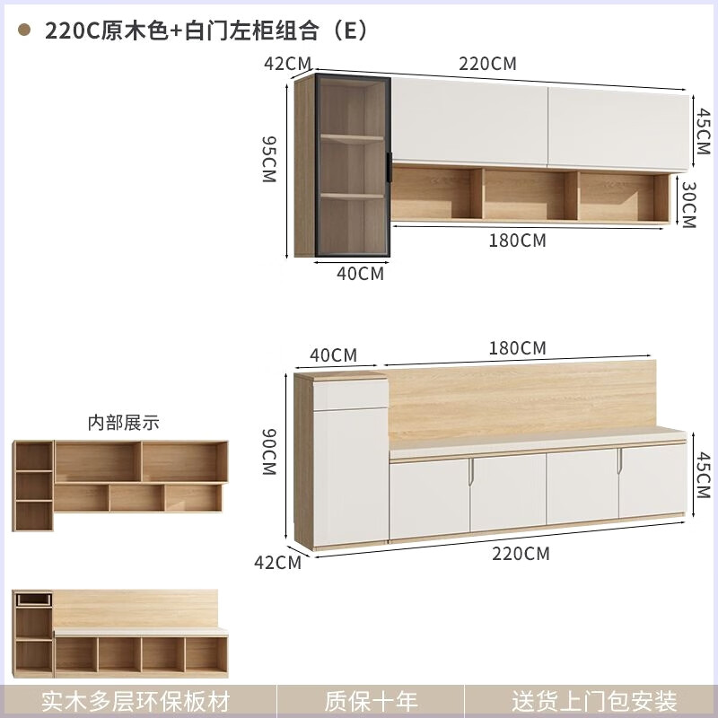Storage cabinet integrated wall cabinet card seat dining table household solid wood sideboard card seat side cabinet back C left style/wall cabinet length 260
