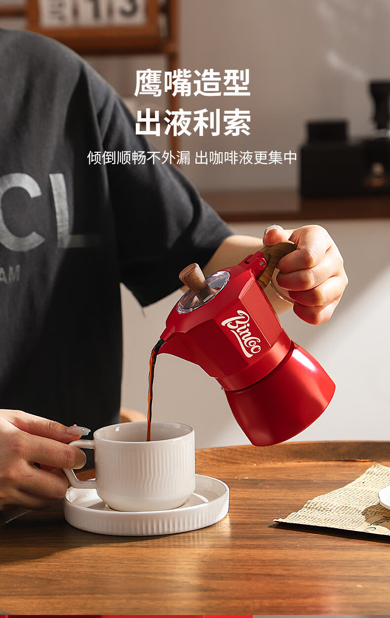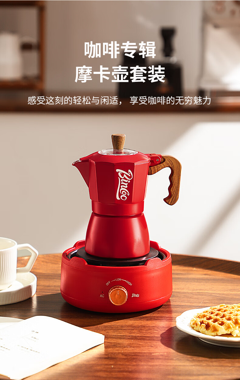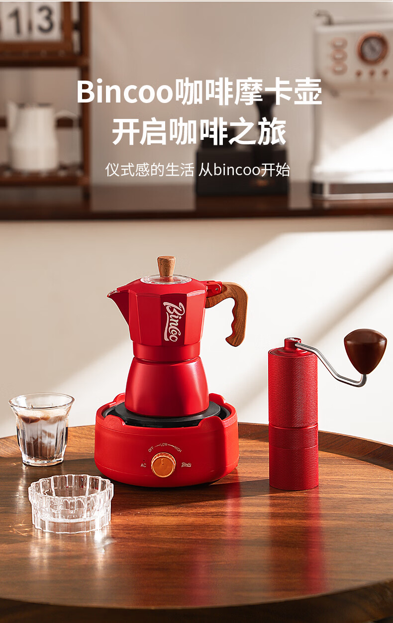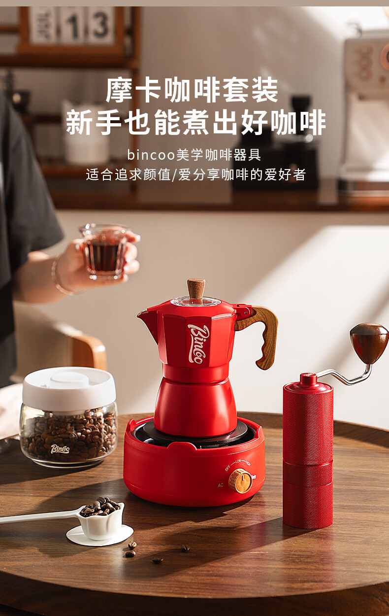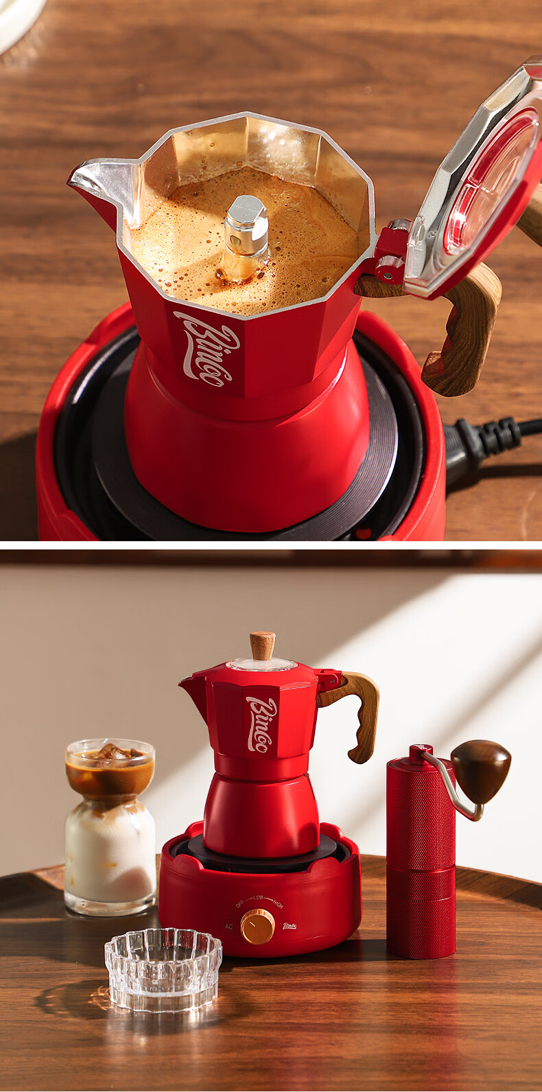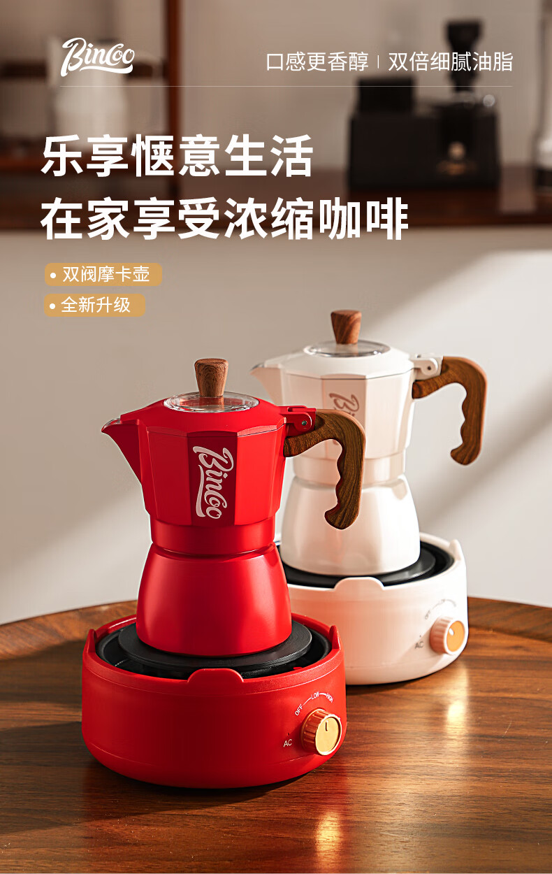 Bincoo double-valve Moka pot household electric stove coffee pot small espresso hand-ground coffee machine set for two people white double-valve Moka pot--4-piece set