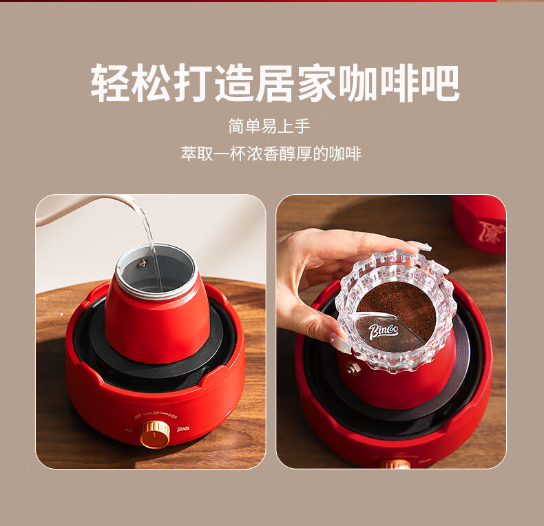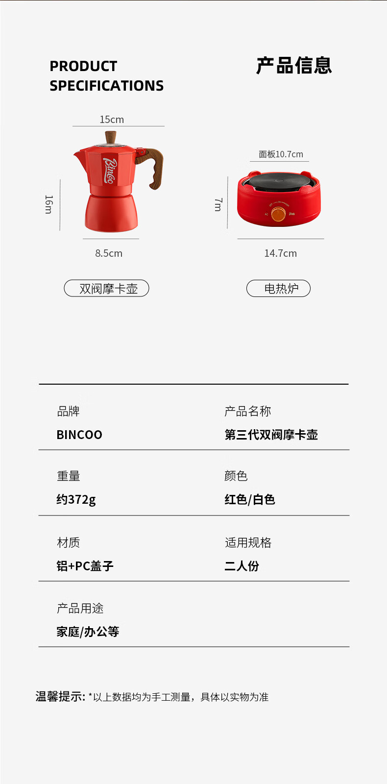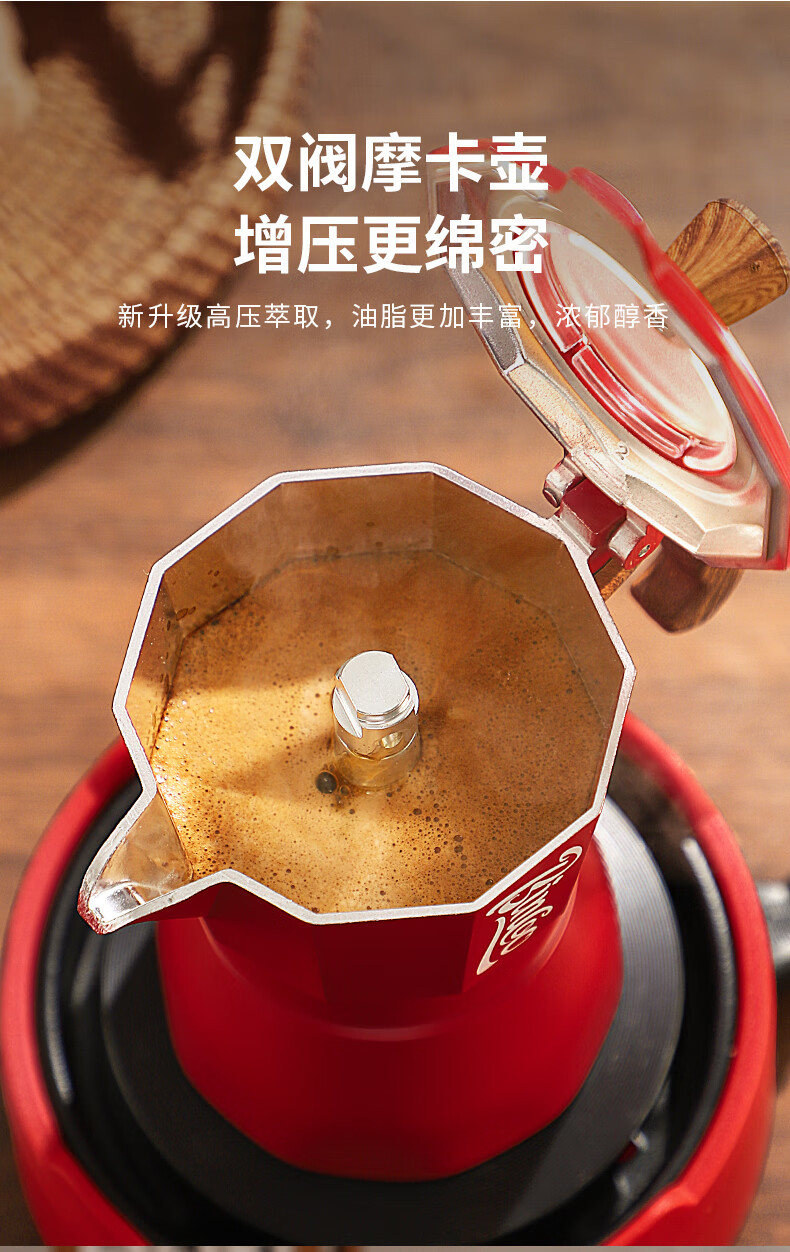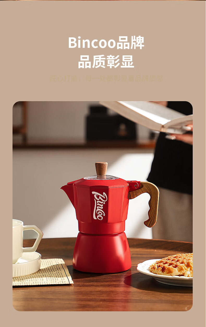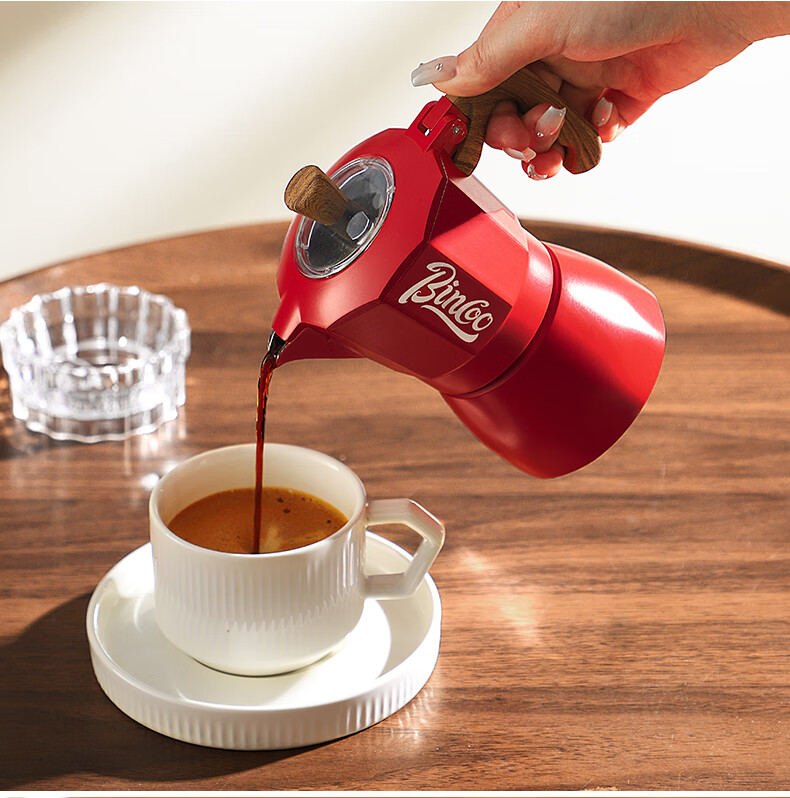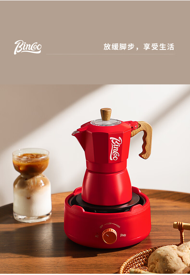 Bincoo double-valve Moka pot household electric stove coffee pot small espresso hand-ground coffee machine set for two people white double-valve Moka pot--4-piece set