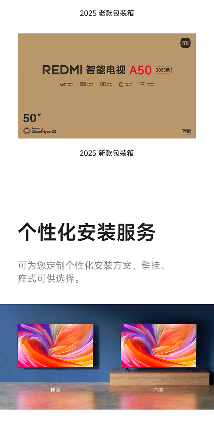 Xiaomi TV 50-inch REDMI Smart TV A50 2025 Energy Saving 144Hz High Brush 2GB+32GB Large Storage L50RB-RAE 50-inch Includes Hanger + Door Installation