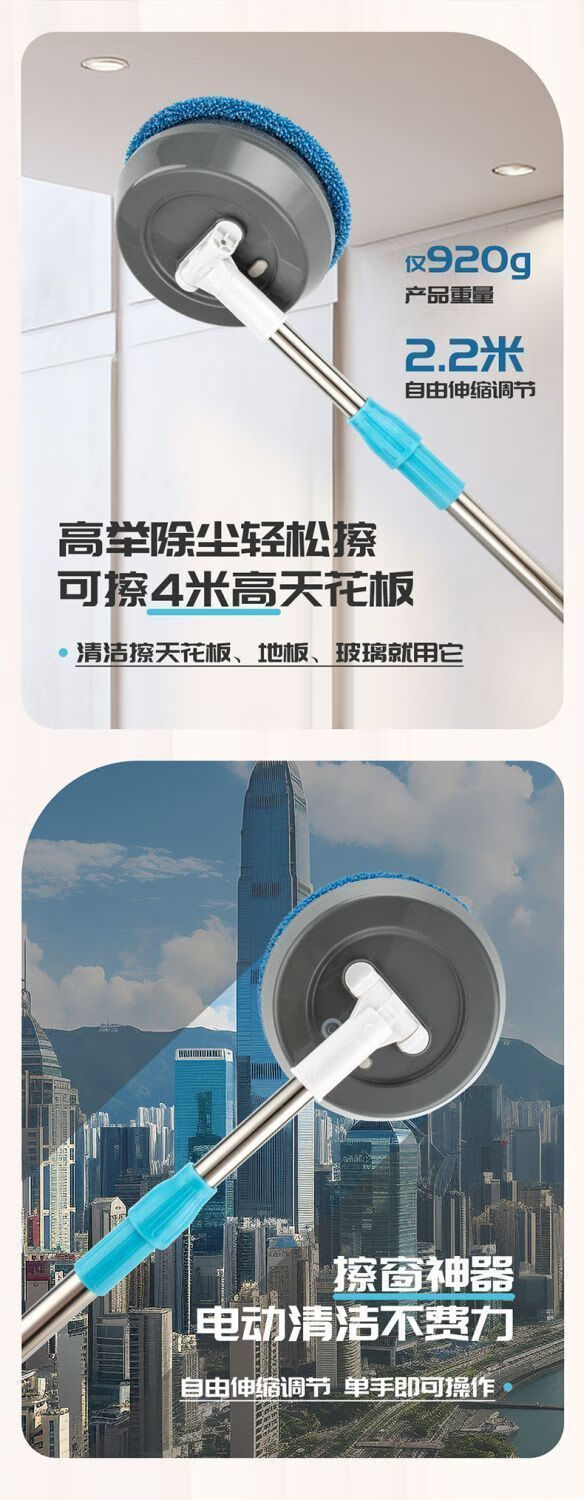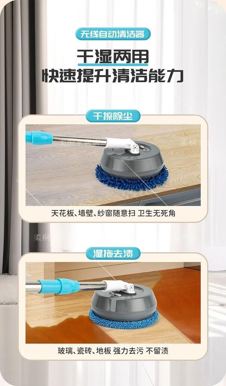 Greenwa window cleaning machine, electric glass cleaning, household wireless electric mop, wall shed, ceiling and floor cleaning, multifunctional wireless electric cleaner 1.4 meters, one size fits all, can clean glass + mop floor + mop ceiling + 10 mops