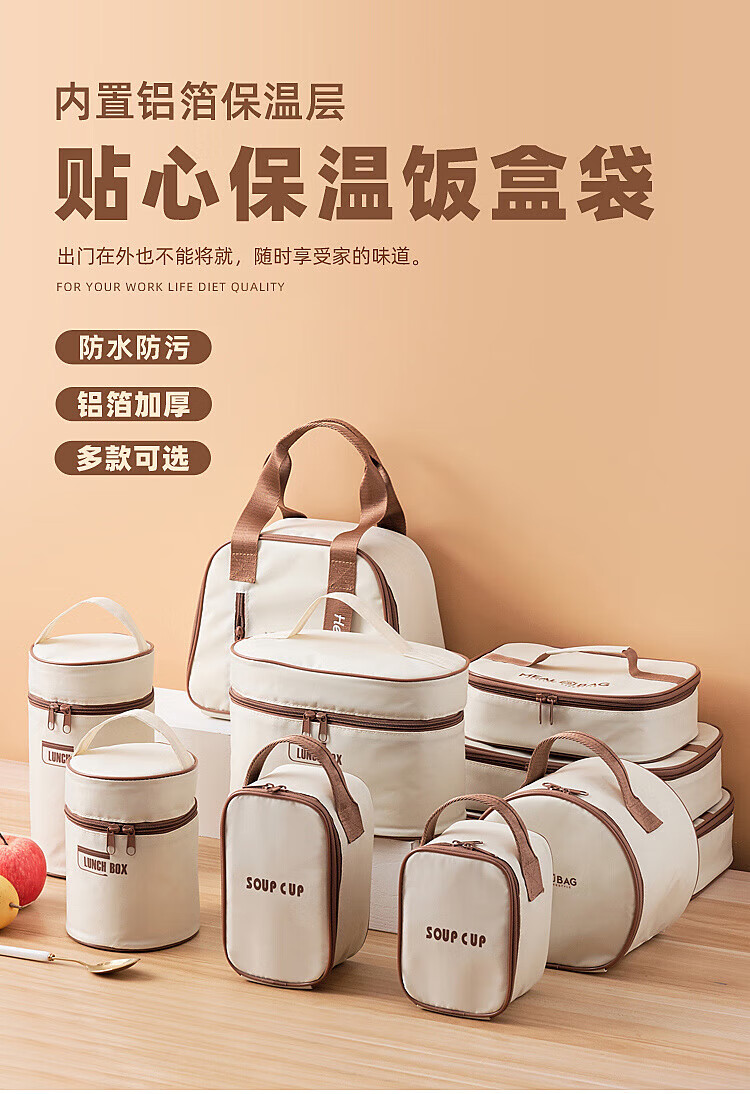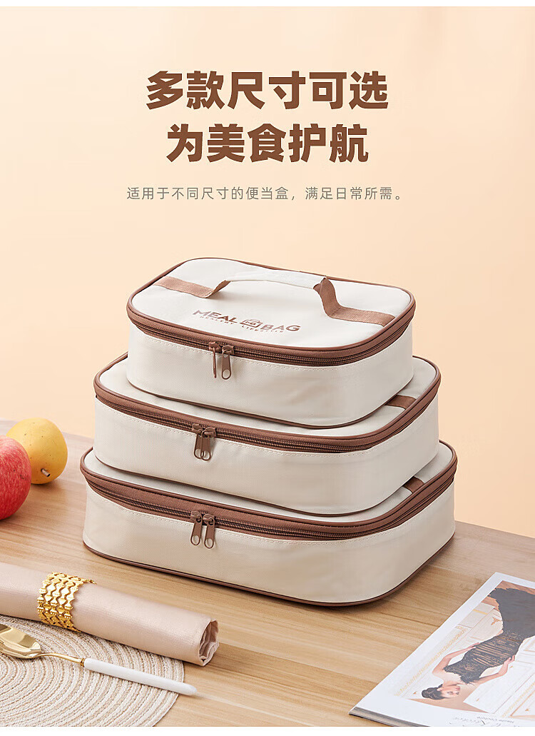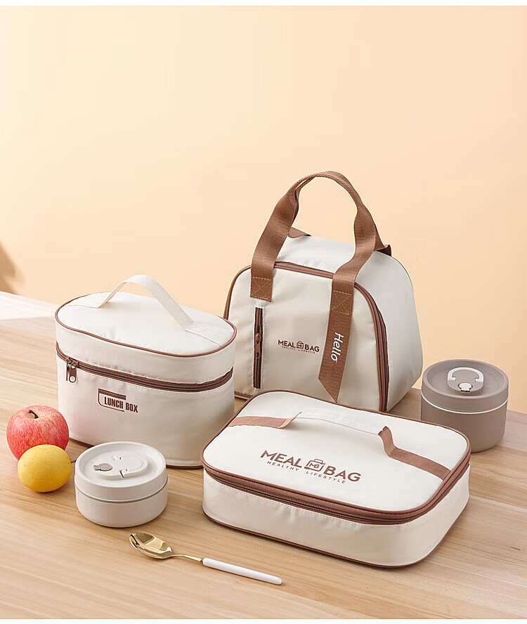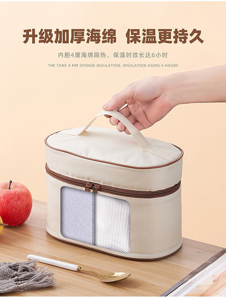 DONGRAN insulation bag thickened aluminum foil rectangular round large-capacity lunch box bag student office worker portable lunch bag with rice off-white oval heightening