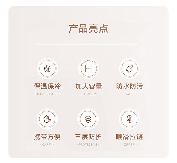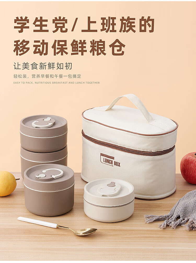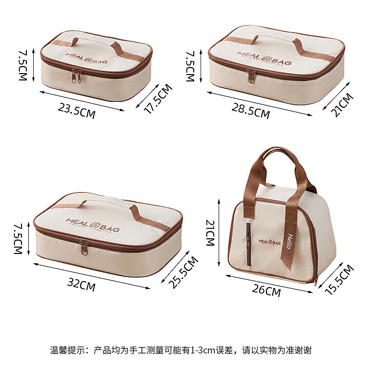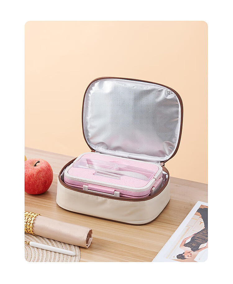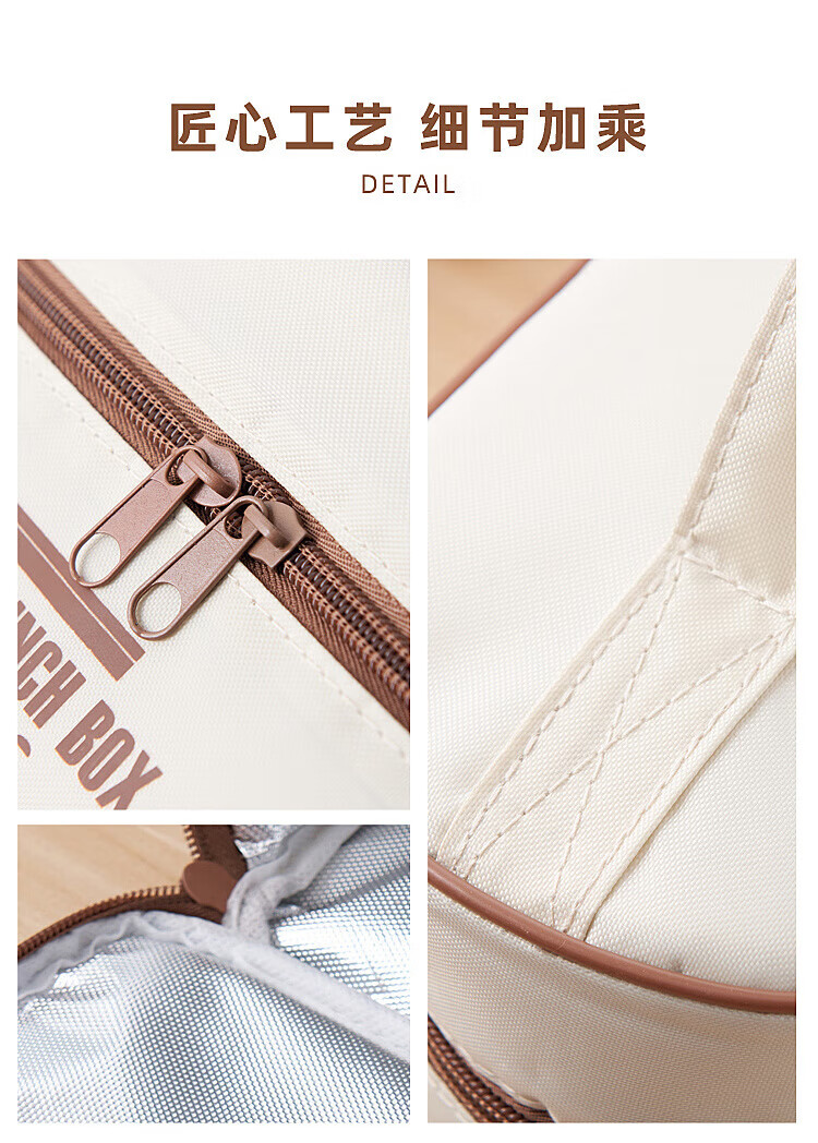 DONGRAN insulation bag thickened aluminum foil rectangular round large-capacity lunch box bag student office worker portable lunch bag with rice off-white oval heightening