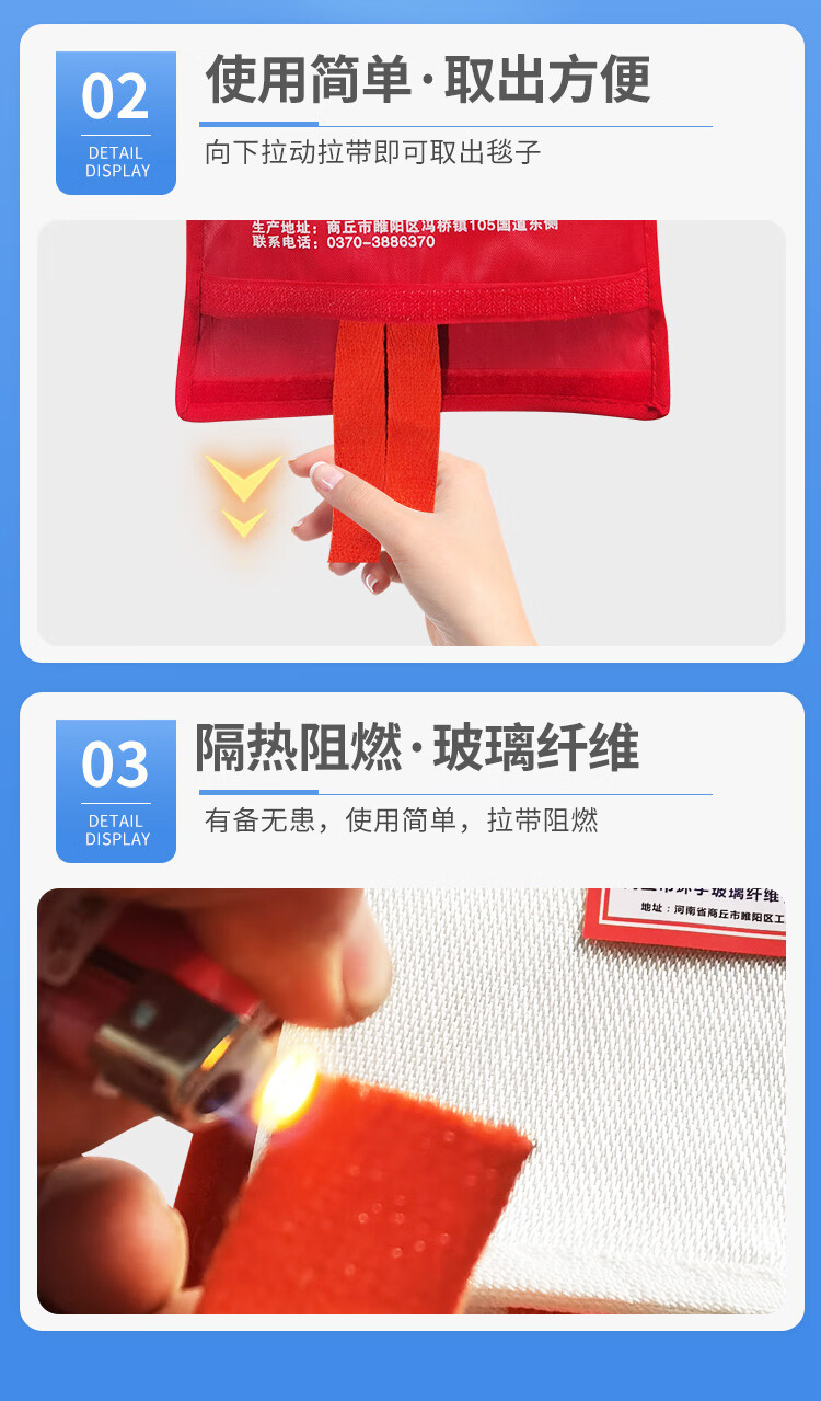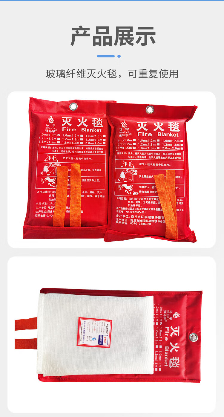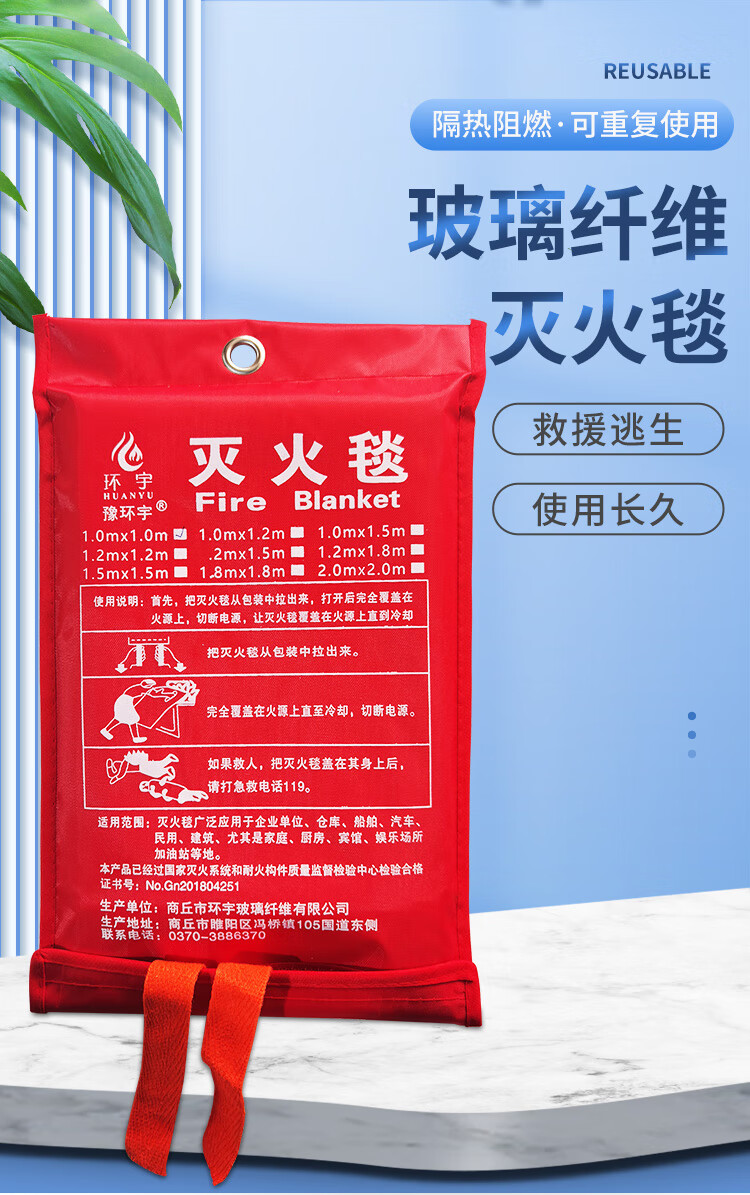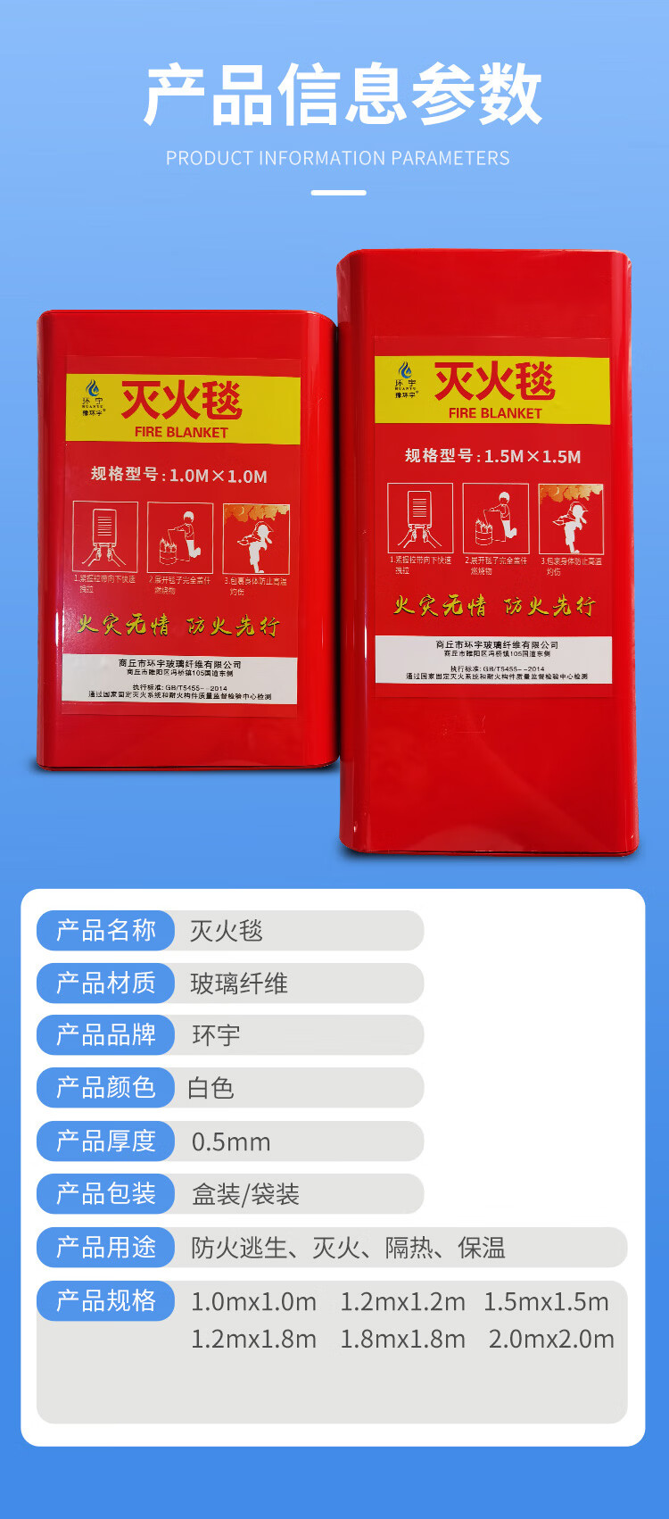 National standard 2*2m fiberglass fire-extinguishing blanket fireproof/lifesaving blanket for schools, units, shopping malls, kitchen escapes, etc. White 1.2m*1.2m*0.5mm boxed national standard