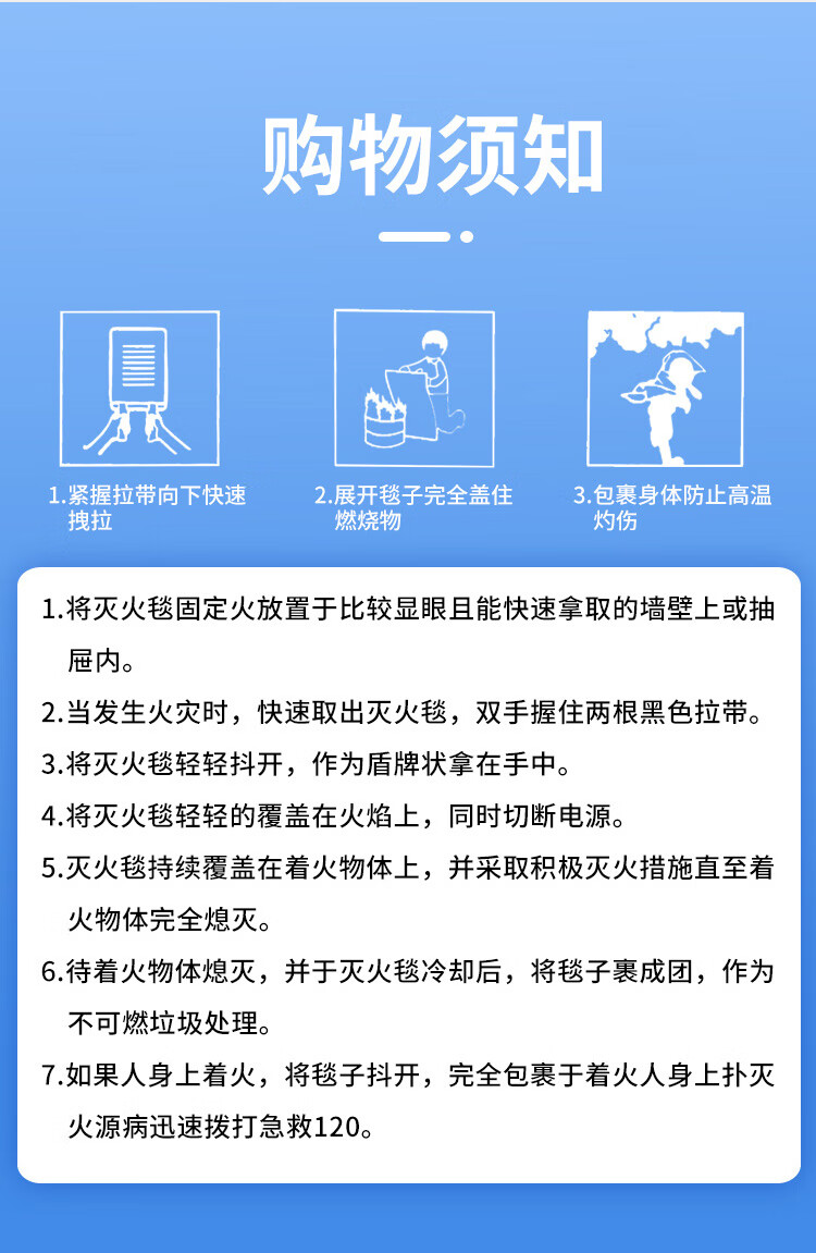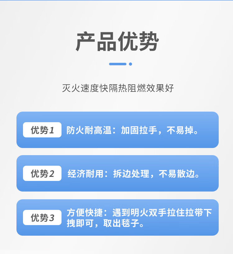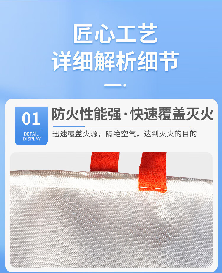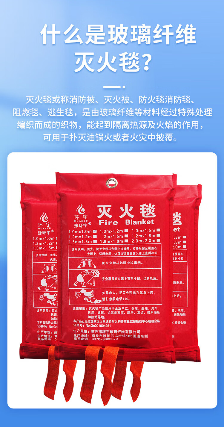 National standard 2*2m fiberglass fire-extinguishing blanket fireproof/lifesaving blanket for schools, units, shopping malls, kitchen escapes, etc. White 1.2m*1.2m*0.5mm boxed national standard
