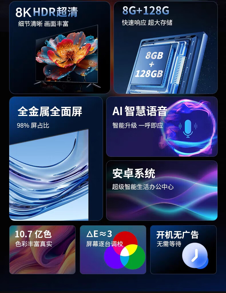 Xiaoqingmi ultra-clear 8K smart voice network TV best-selling list on the entire network 100-inch 55-inch 65-inch 75-inch 85-inch large screen borderless wireless projection 144HZ living room 85-inch super 8K full-screen flagship new model door-to-door delivery and free installation