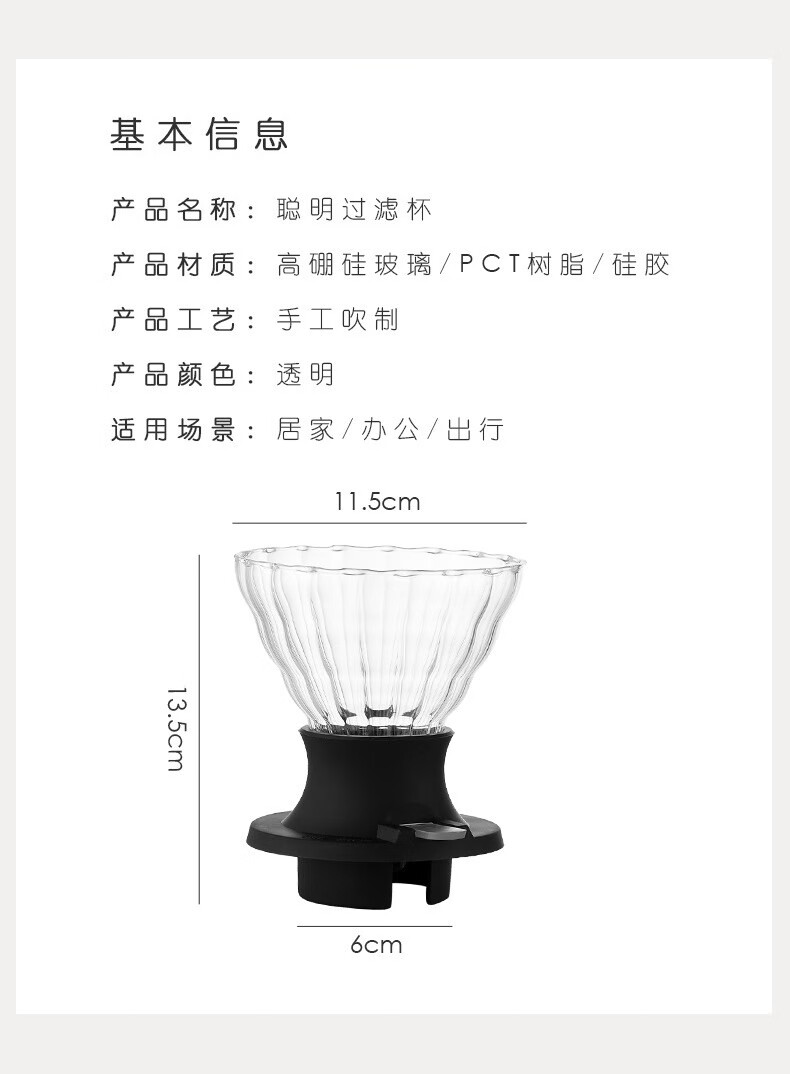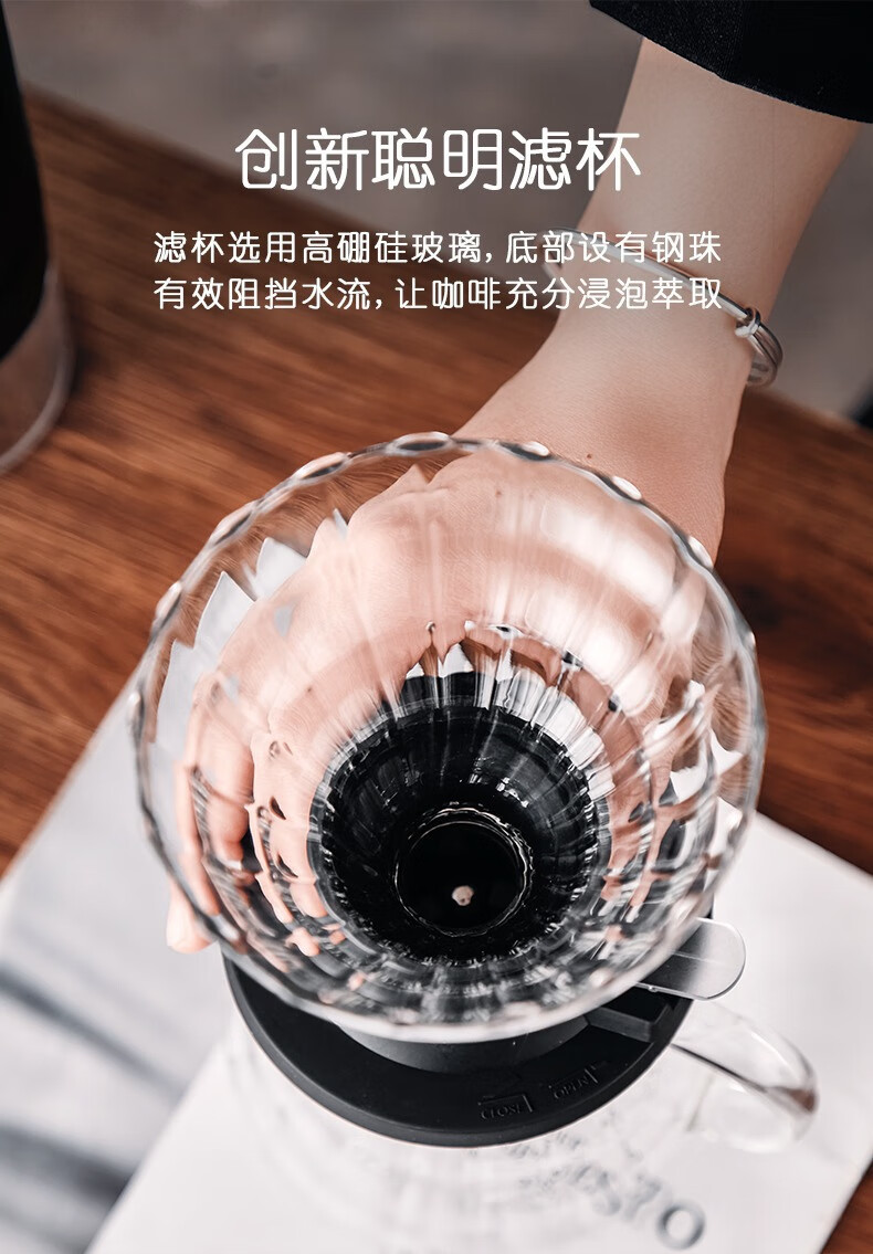 Japanese-style adjustable coffee filter, hand-brewed filter cup, coffee filter paper, high borosilicate glass filter cup, upgraded smart cup