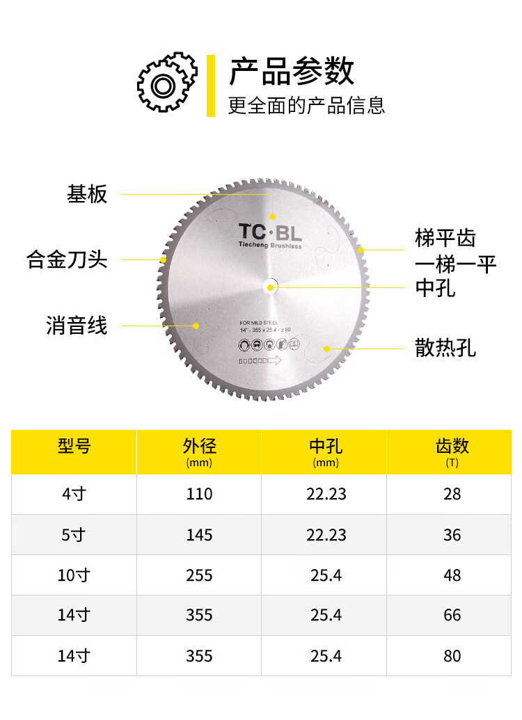 Tiecheng TCBL Tiecheng cold cutting saw blade steel bar 10 inch piece cold saw cutting blade cutting iron G series slice metal cold slice 14 inch TC355*25.4*66 teeth