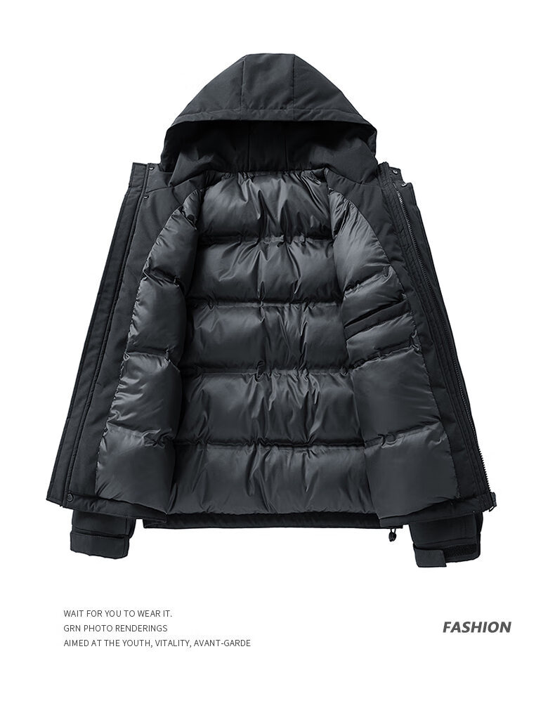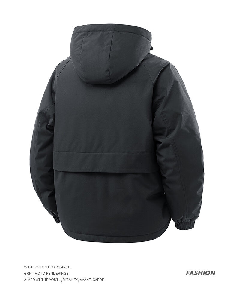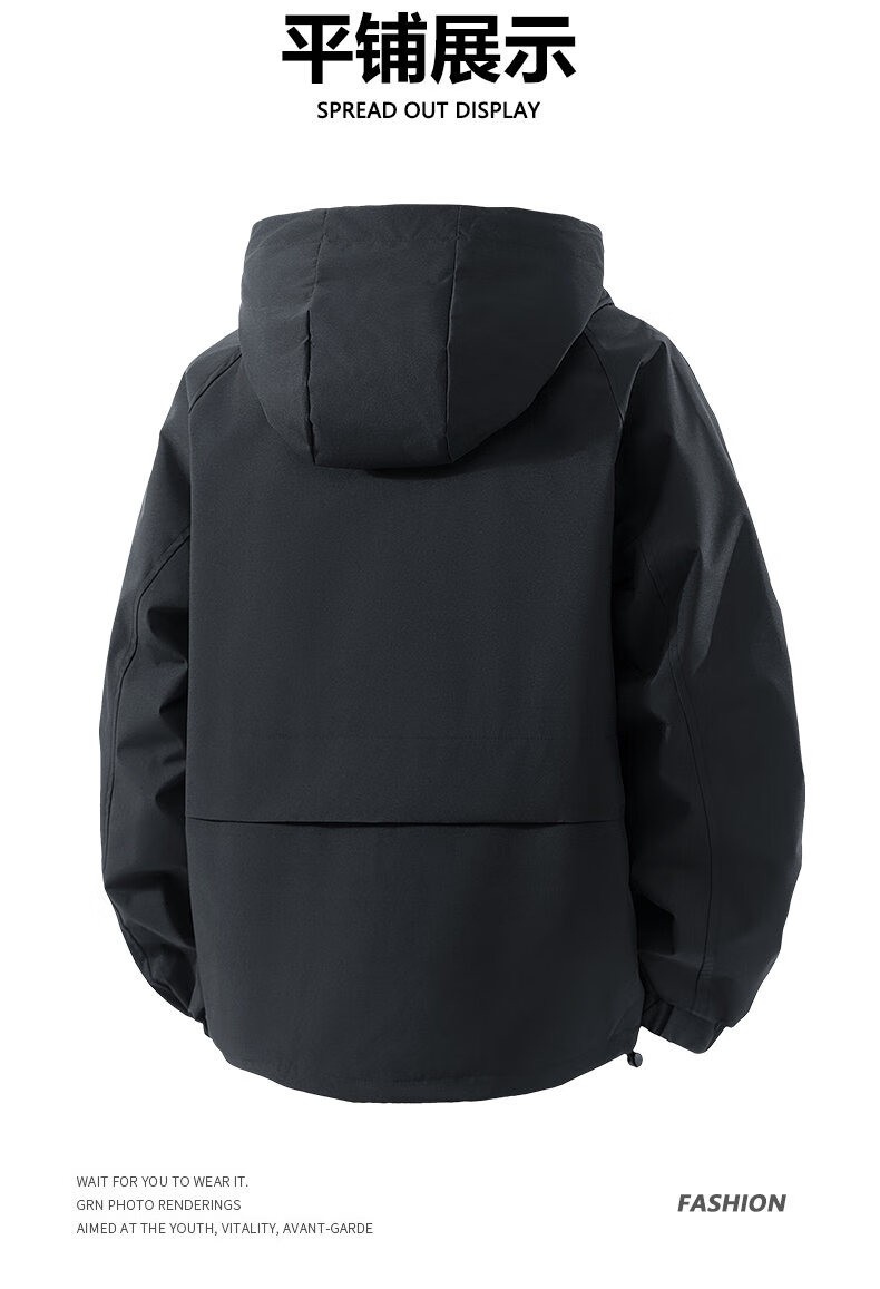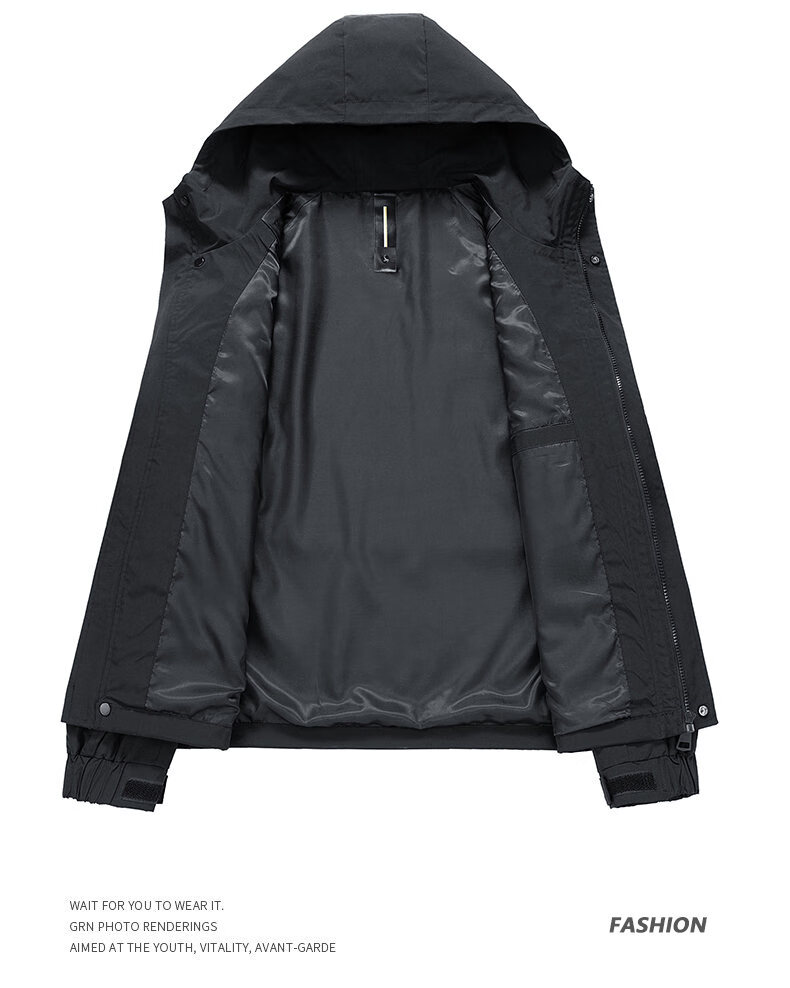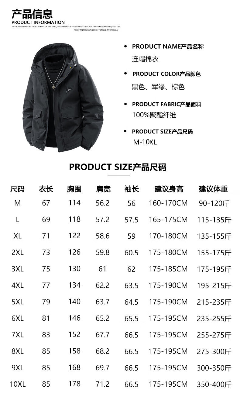 LOFVRANG plus size plus size jacket for men in autumn and winter, thickened with cotton, warm and loose, fat hooded workwear windproof and waterproof jacket, black, thickened with cotton, 7XL, suitable for 255 to 275 pounds