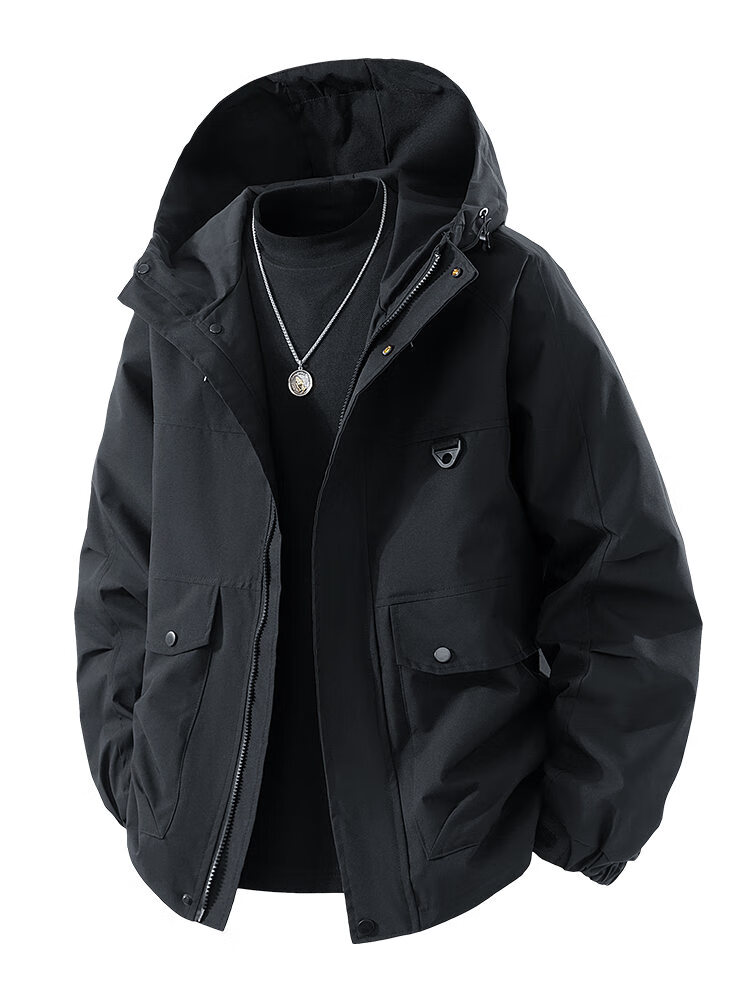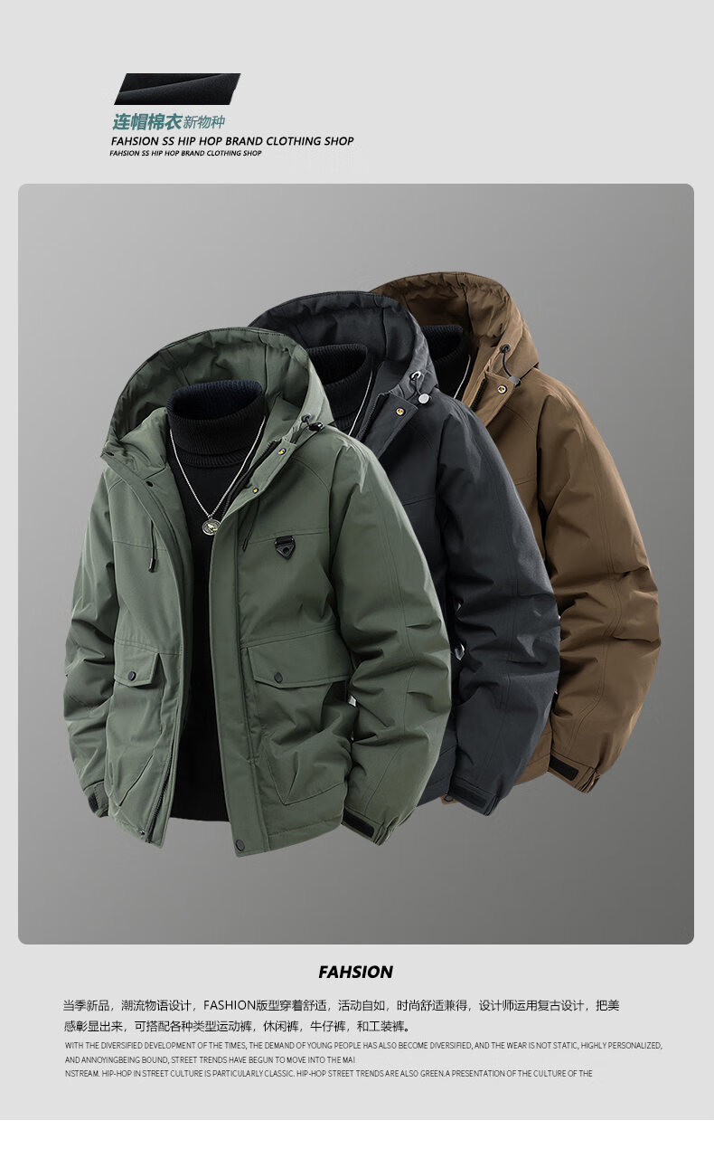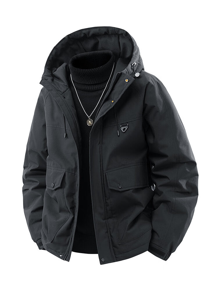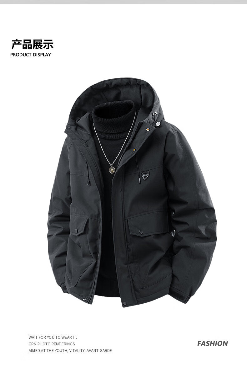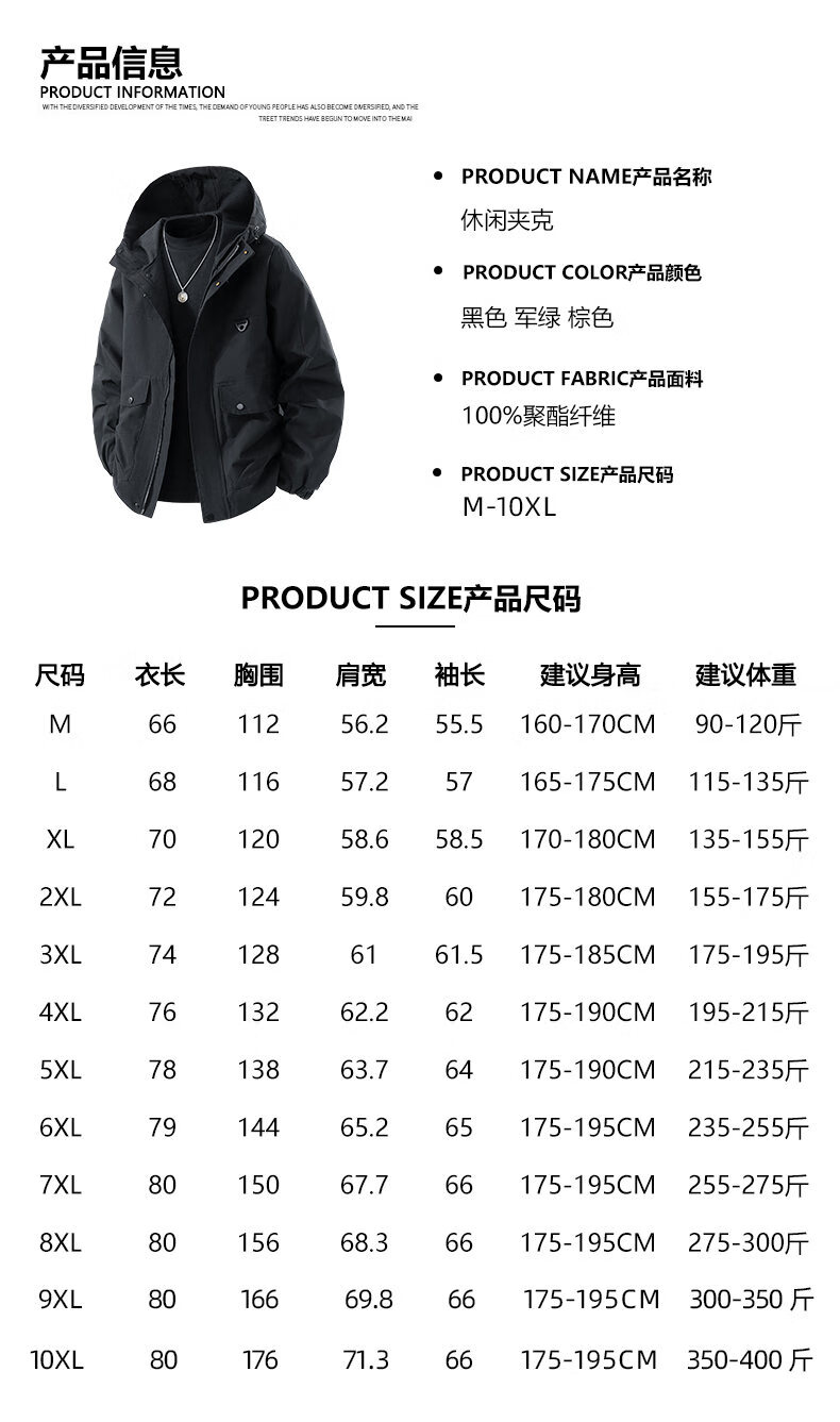 LOFVRANG plus size plus size jacket for men in autumn and winter, thickened with cotton, warm and loose, fat hooded workwear windproof and waterproof jacket, black, thickened with cotton, 7XL, suitable for 255 to 275 pounds