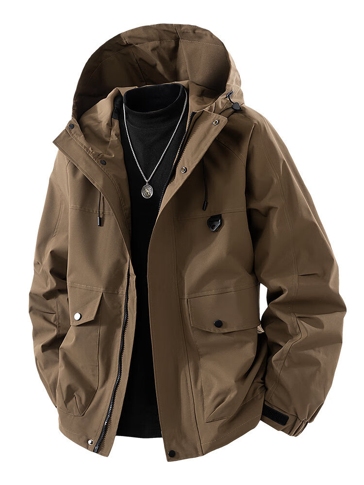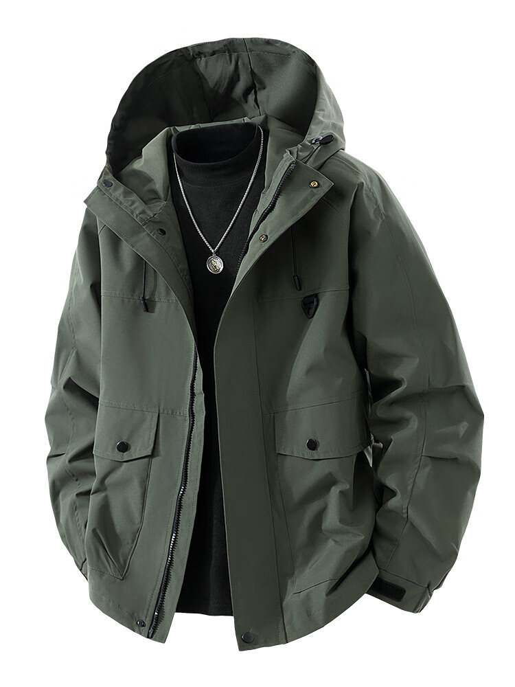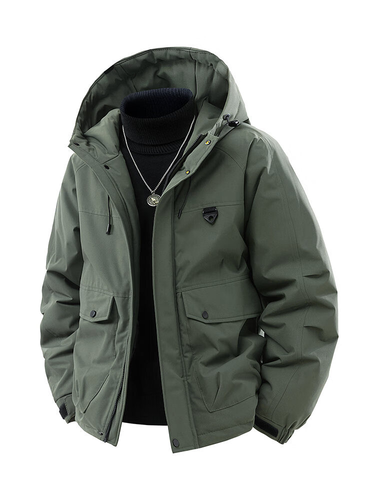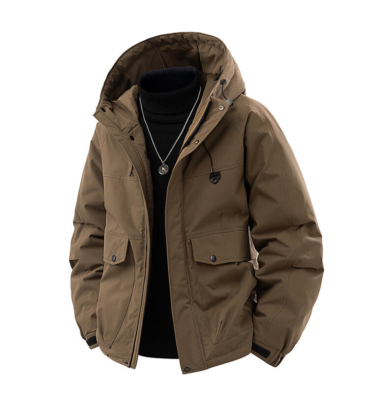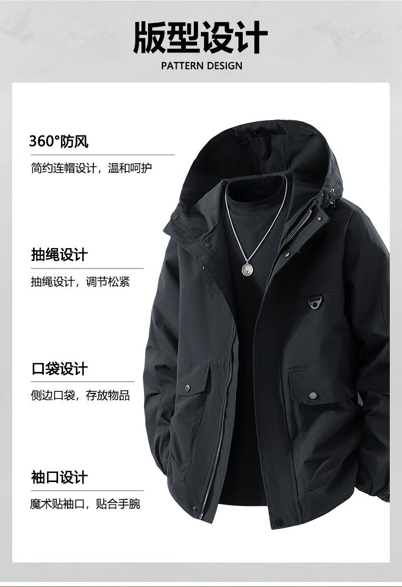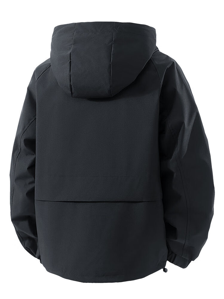 LOFVRANG plus size plus size jacket for men in autumn and winter, thickened with cotton, warm and loose, fat hooded workwear windproof and waterproof jacket, black, thickened with cotton, 7XL, suitable for 255 to 275 pounds