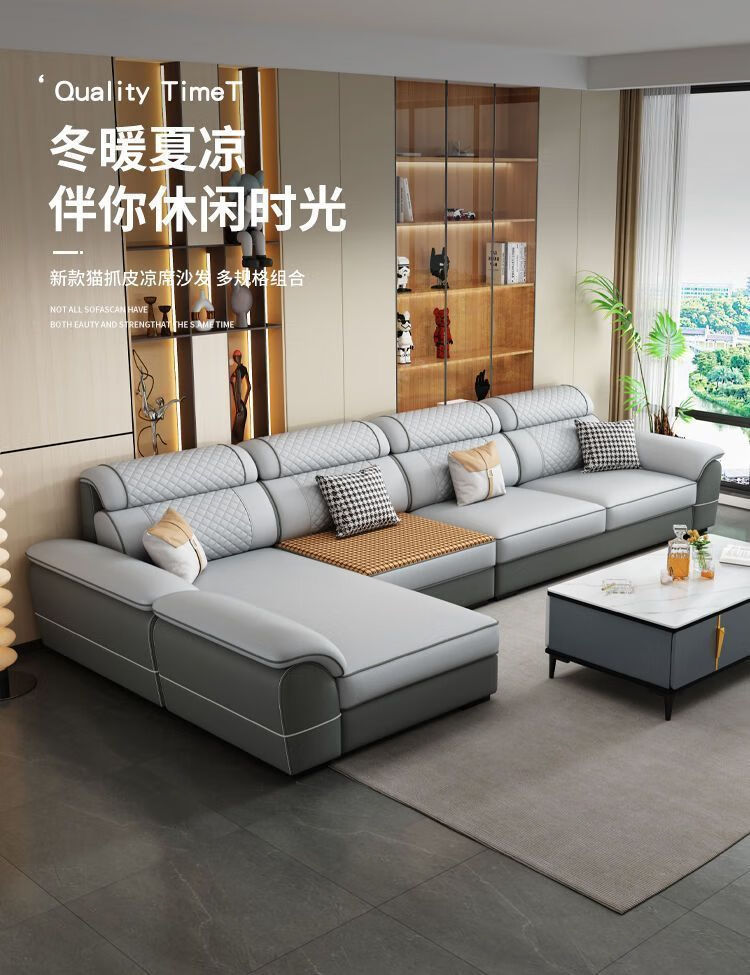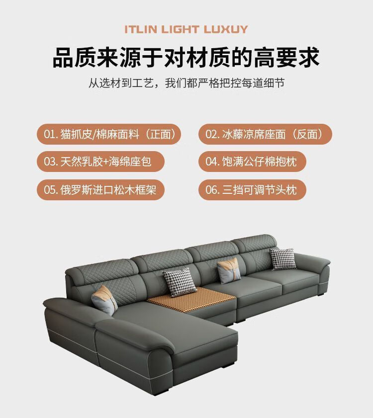 Huang Kairui's new winter and summer dual-use removable cotton and linen sofa, modern and simple living room, fabric, large and small, cat claw leather sofa, double + single + imperial concubine 3.2 meters + coffee table TV cabinet, skin-friendly and breathable cotton and linen, soft and delicate sponge, color contact customer service