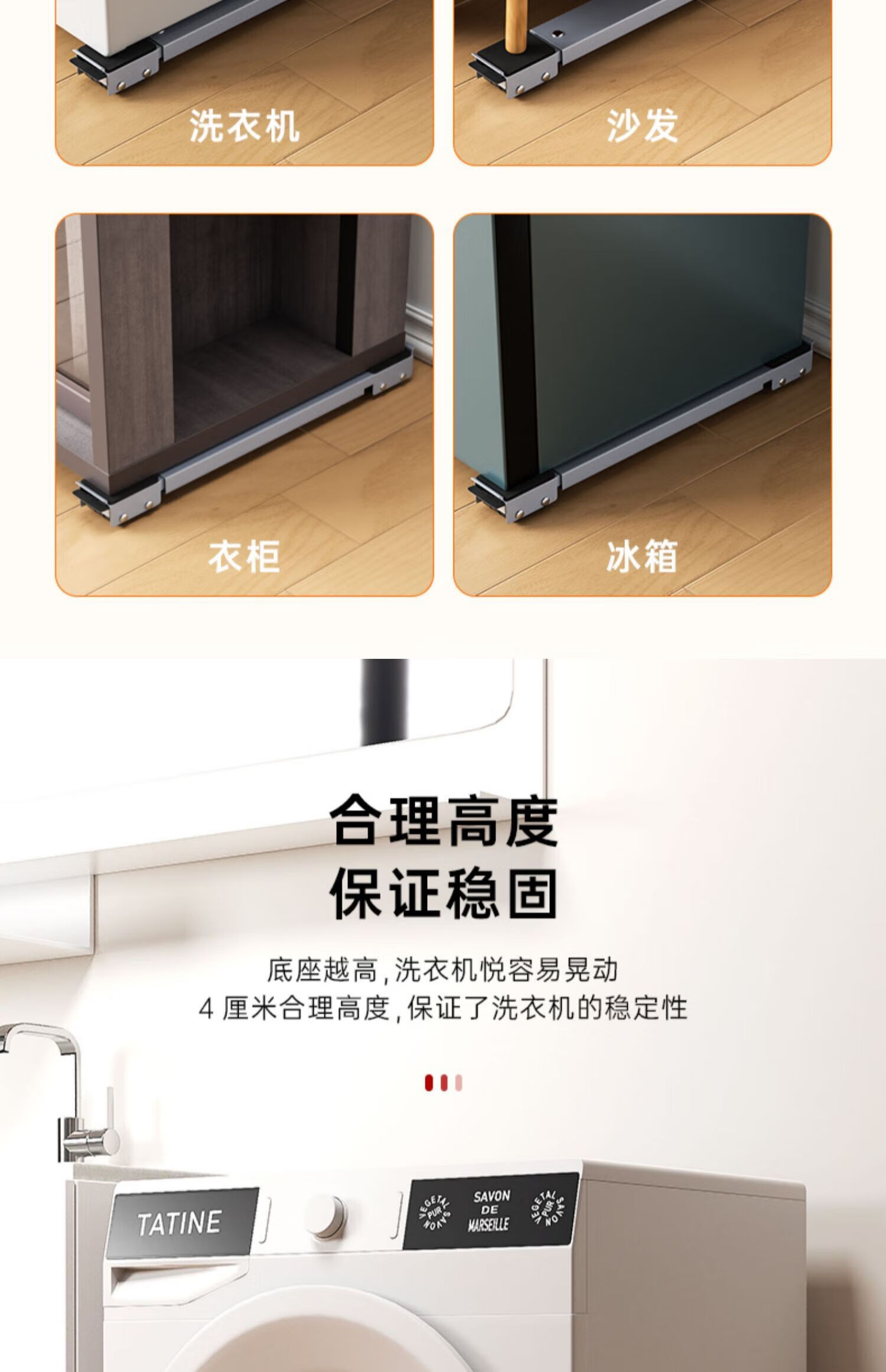 Haier washing machine suitable base frame removable pulley foot pad refrigerator storage shelf roller pad height bracket special Yahei universal 28 wheels retractable 46-72cm brake