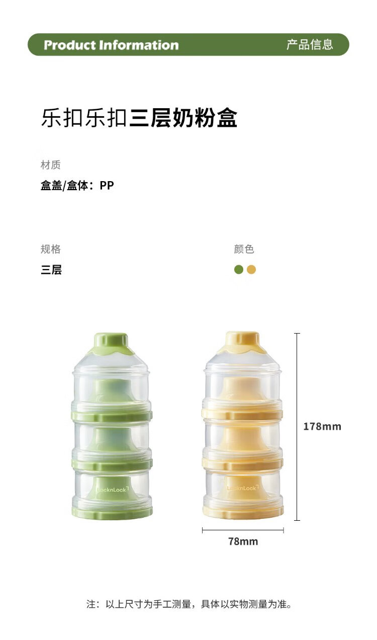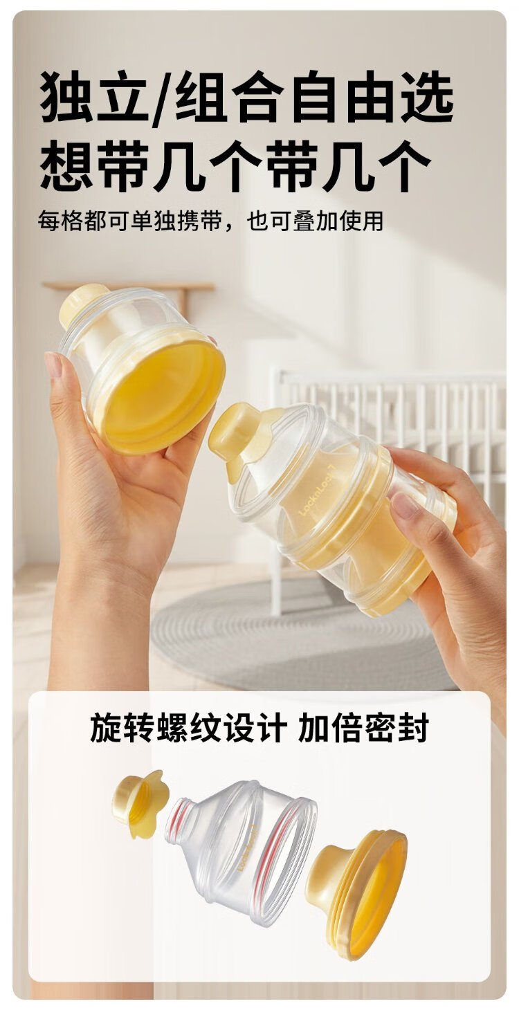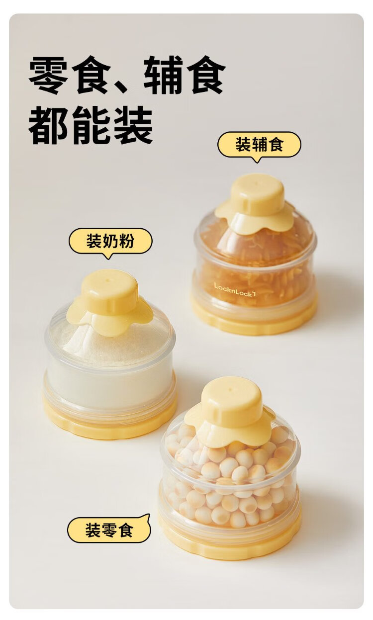 LOCK&LOCK milk powder box portable dispensing box small rice noodle jar baby snack storage box food storage jar plastic food supplement box goose yellow 3-layer independent storage