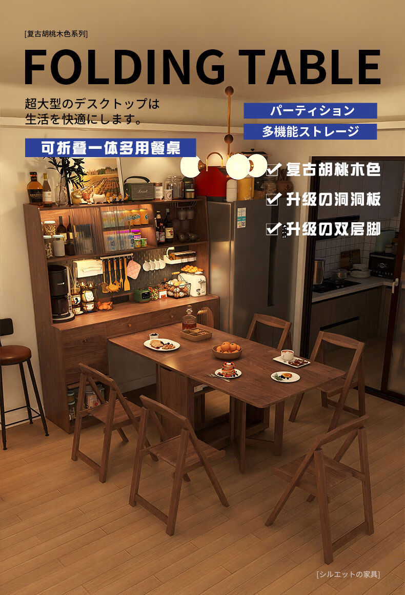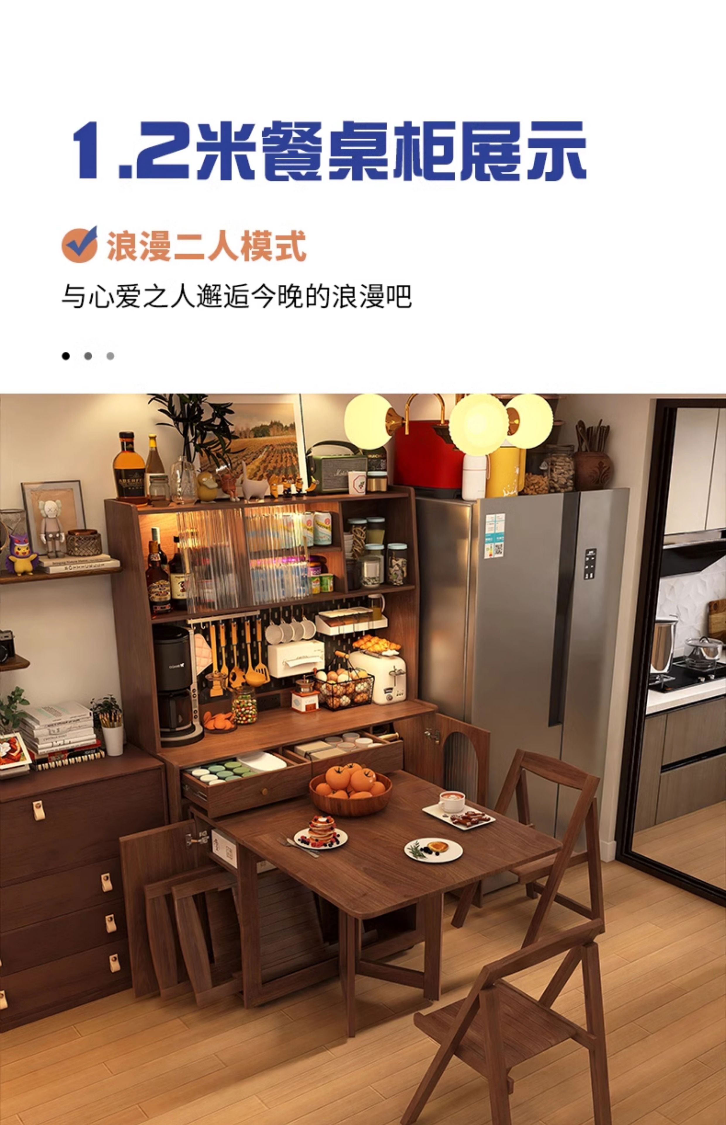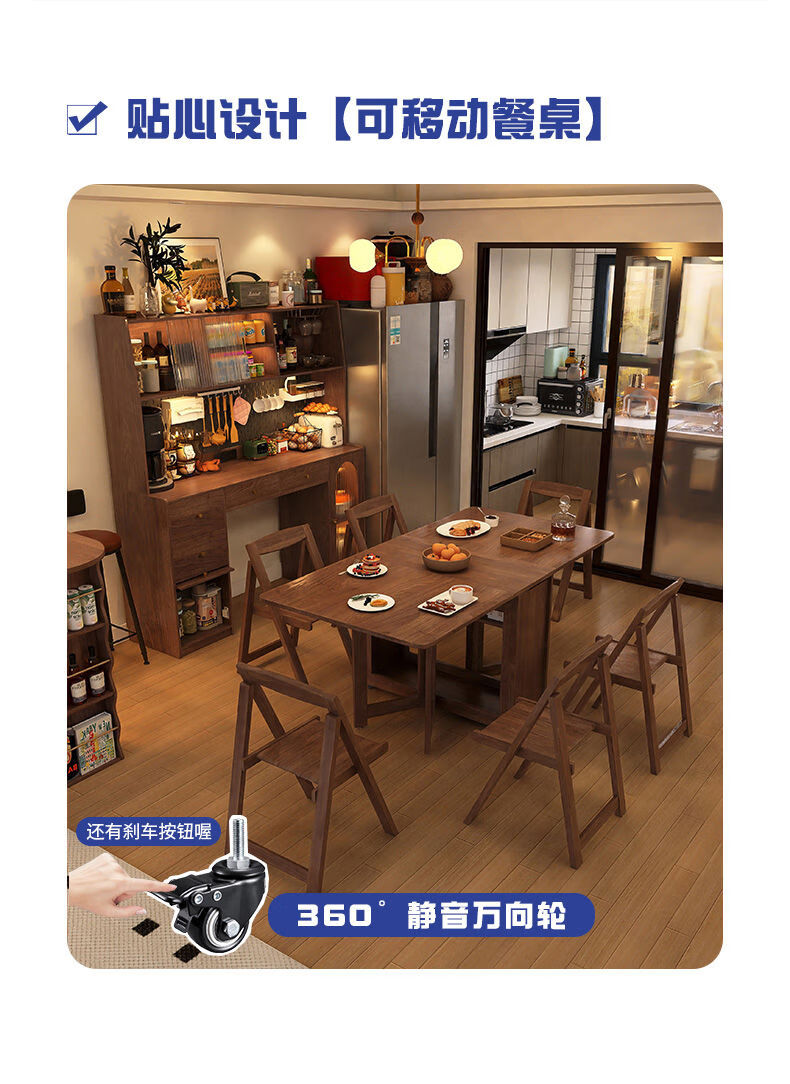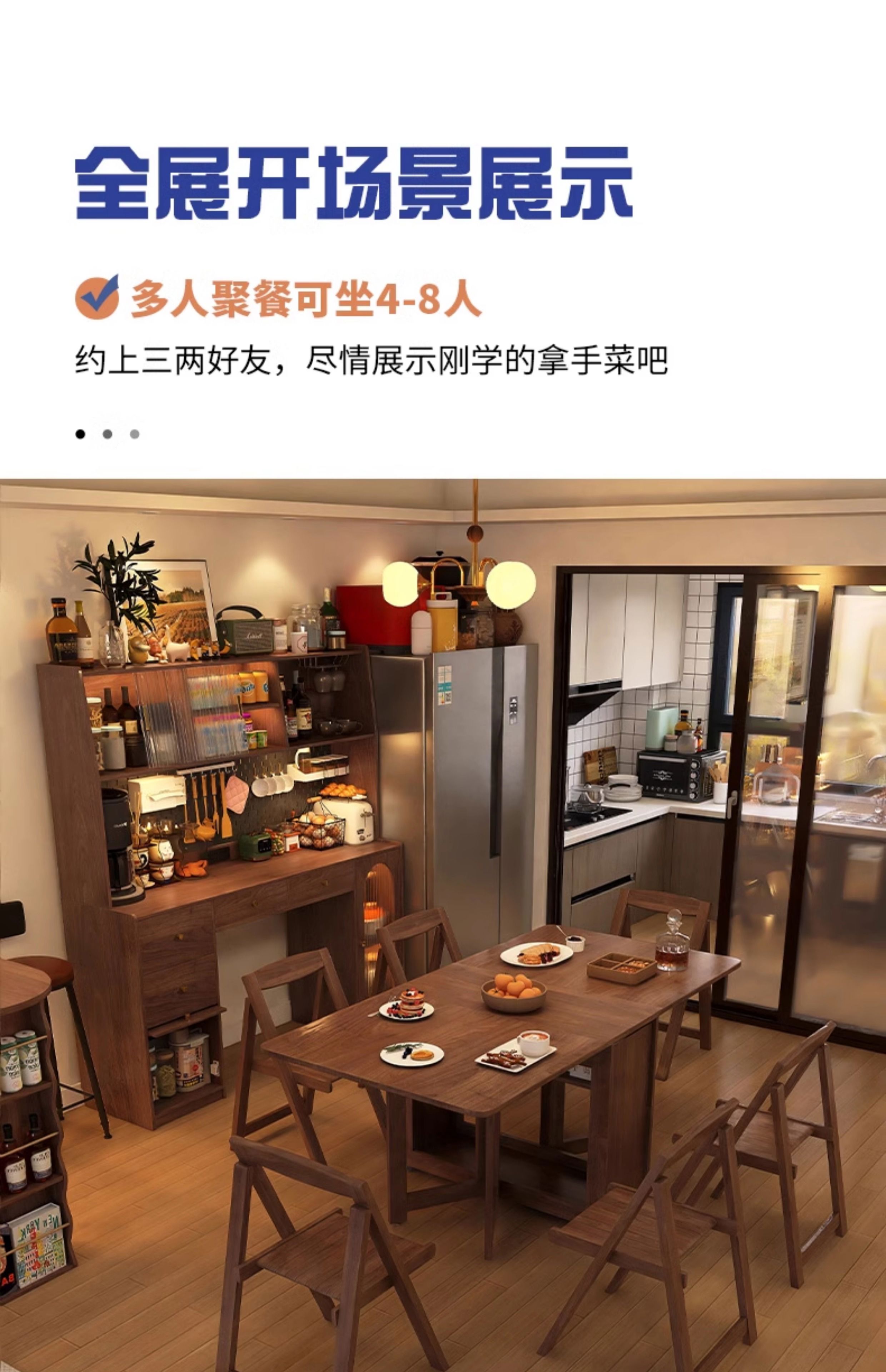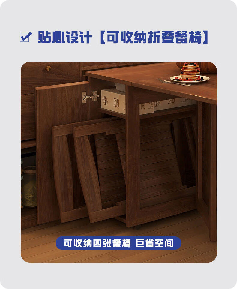Xingying Furniture sideboard dining table integrated folding retractable mid-century style small apartment cabinet home table all solid wood walnut color 1.6m dining table cabinet