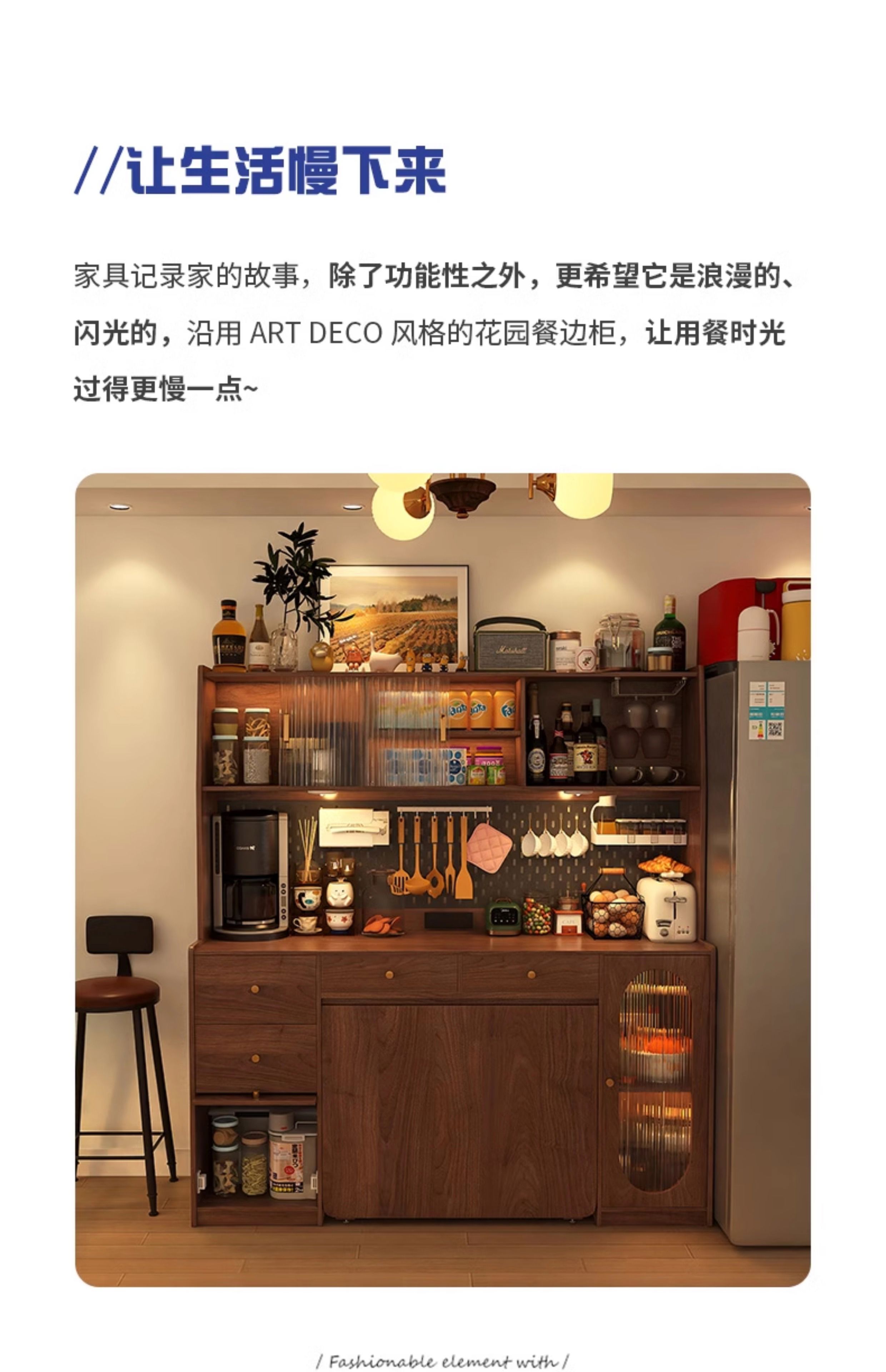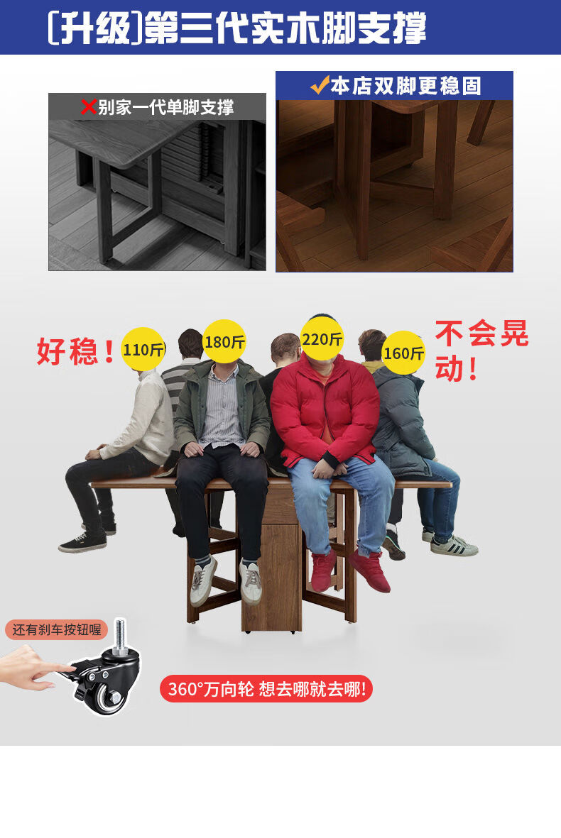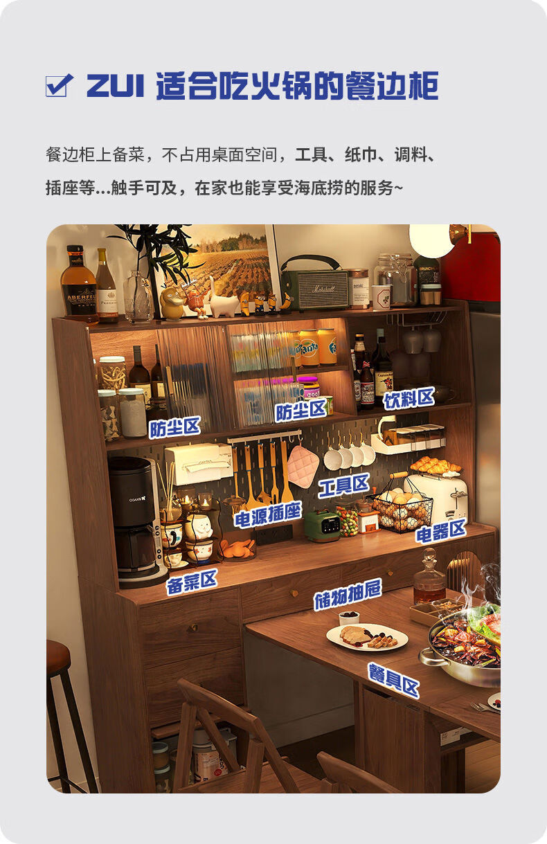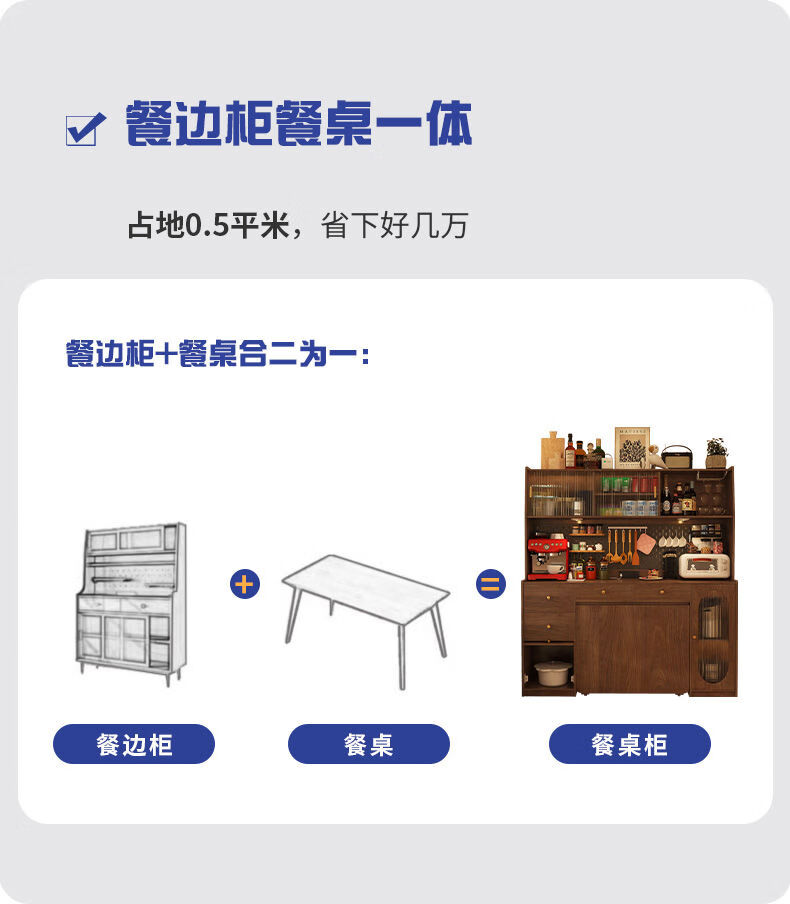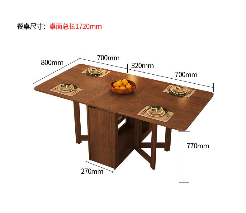 Xingying Furniture sideboard dining table integrated folding retractable mid-century style small apartment cabinet home table all solid wood walnut color 1.6m dining table cabinet