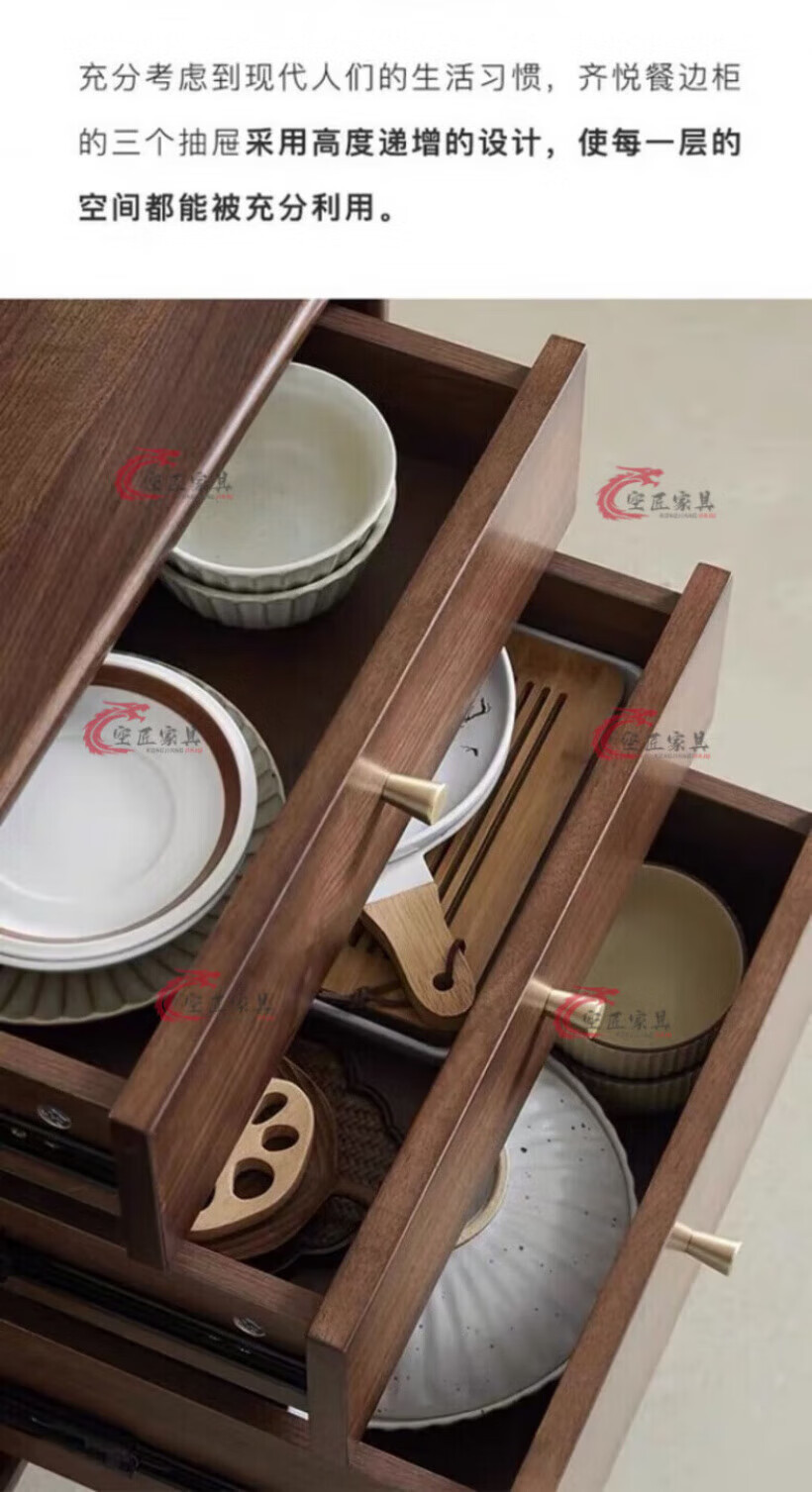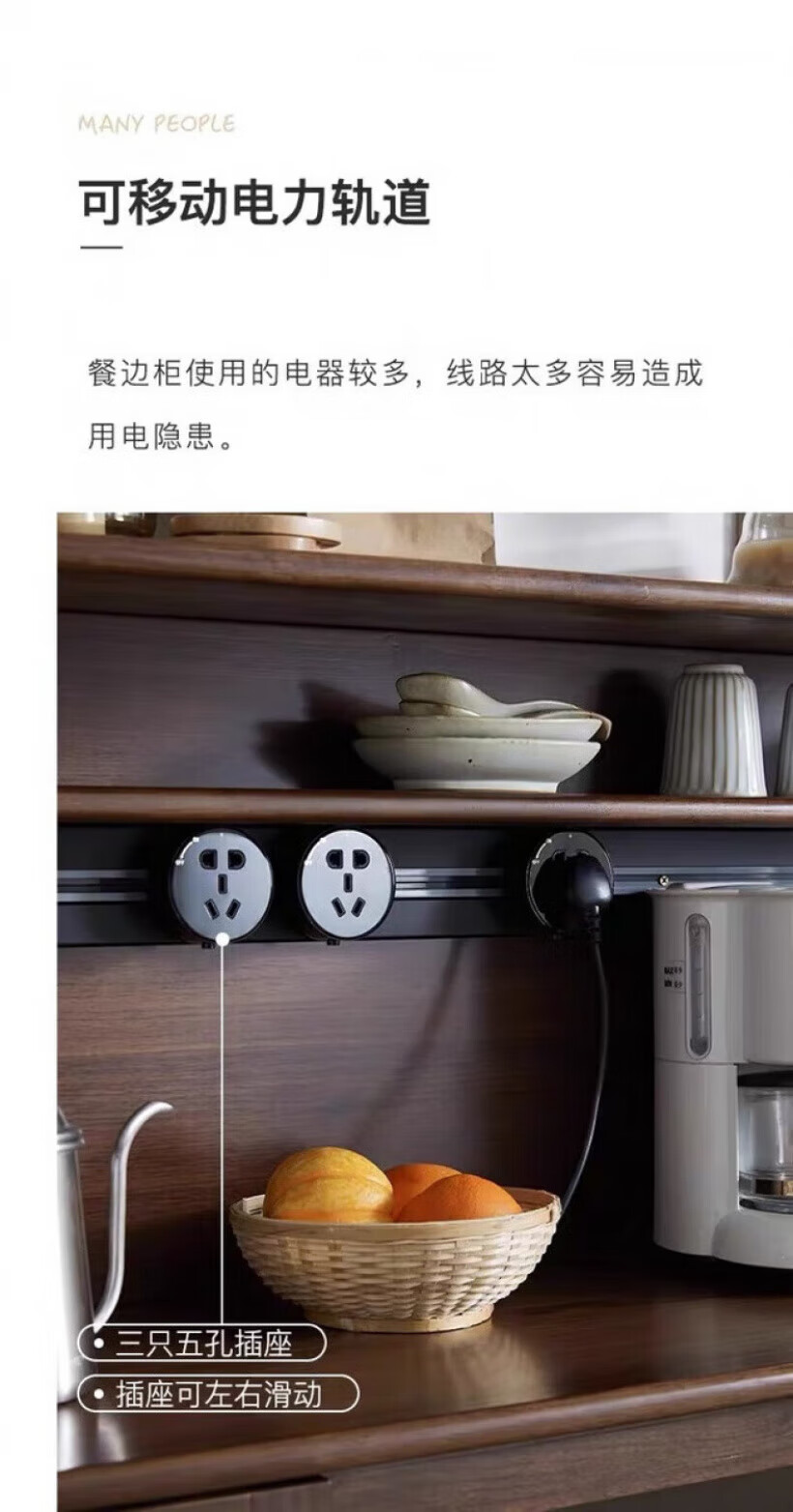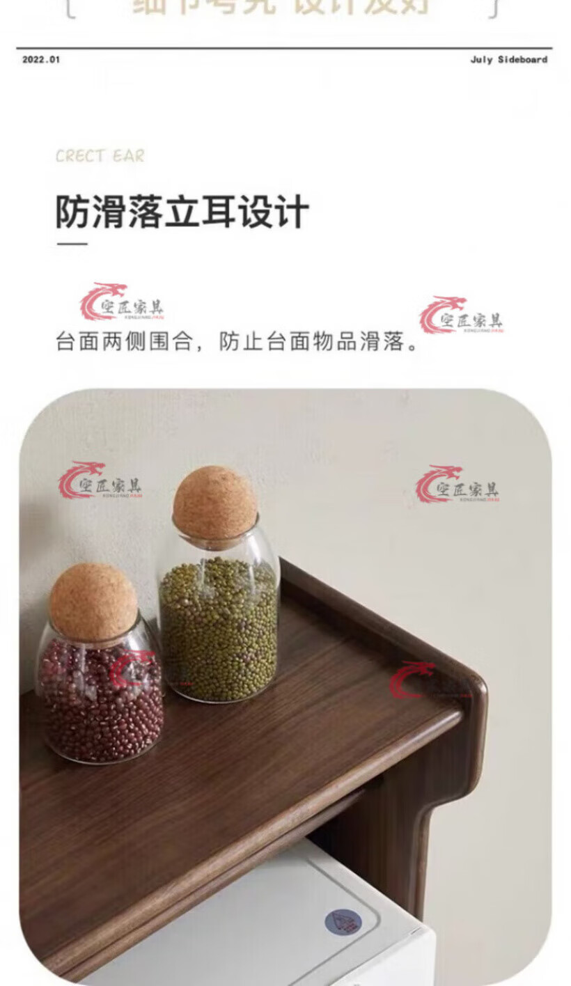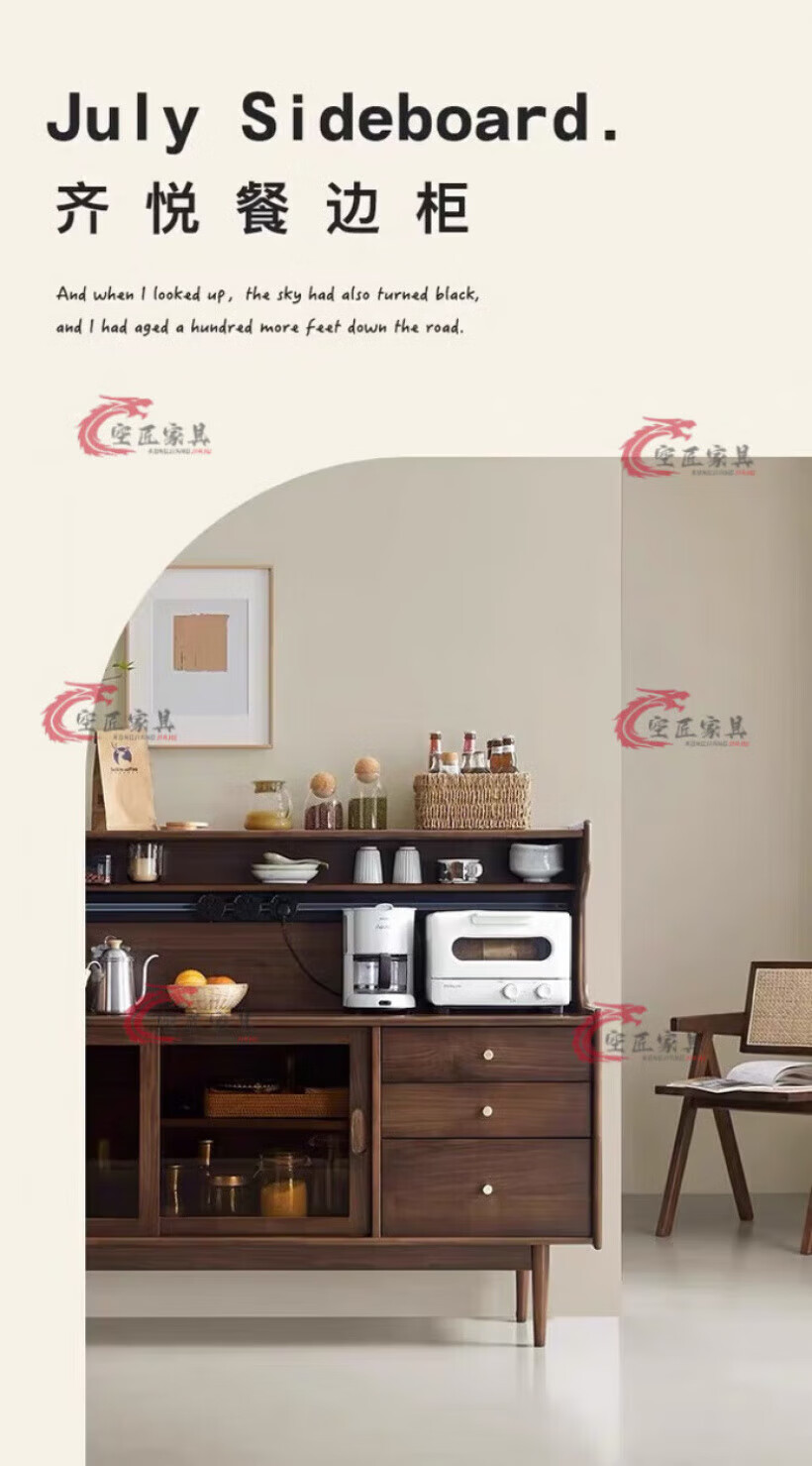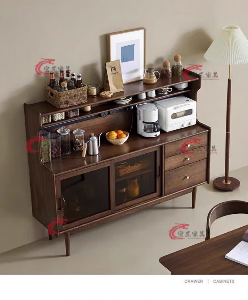 Kongjiang solid wood sideboard integrated wall cabinet mid-century style black walnut color multi-functional storage wine cabinet tea cabinet 120.40.117cm walnut color (with power track)