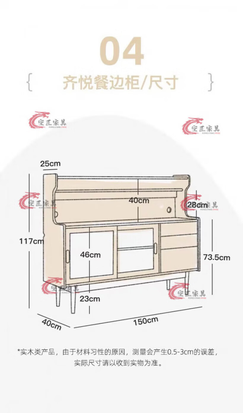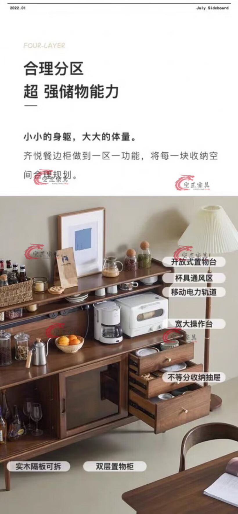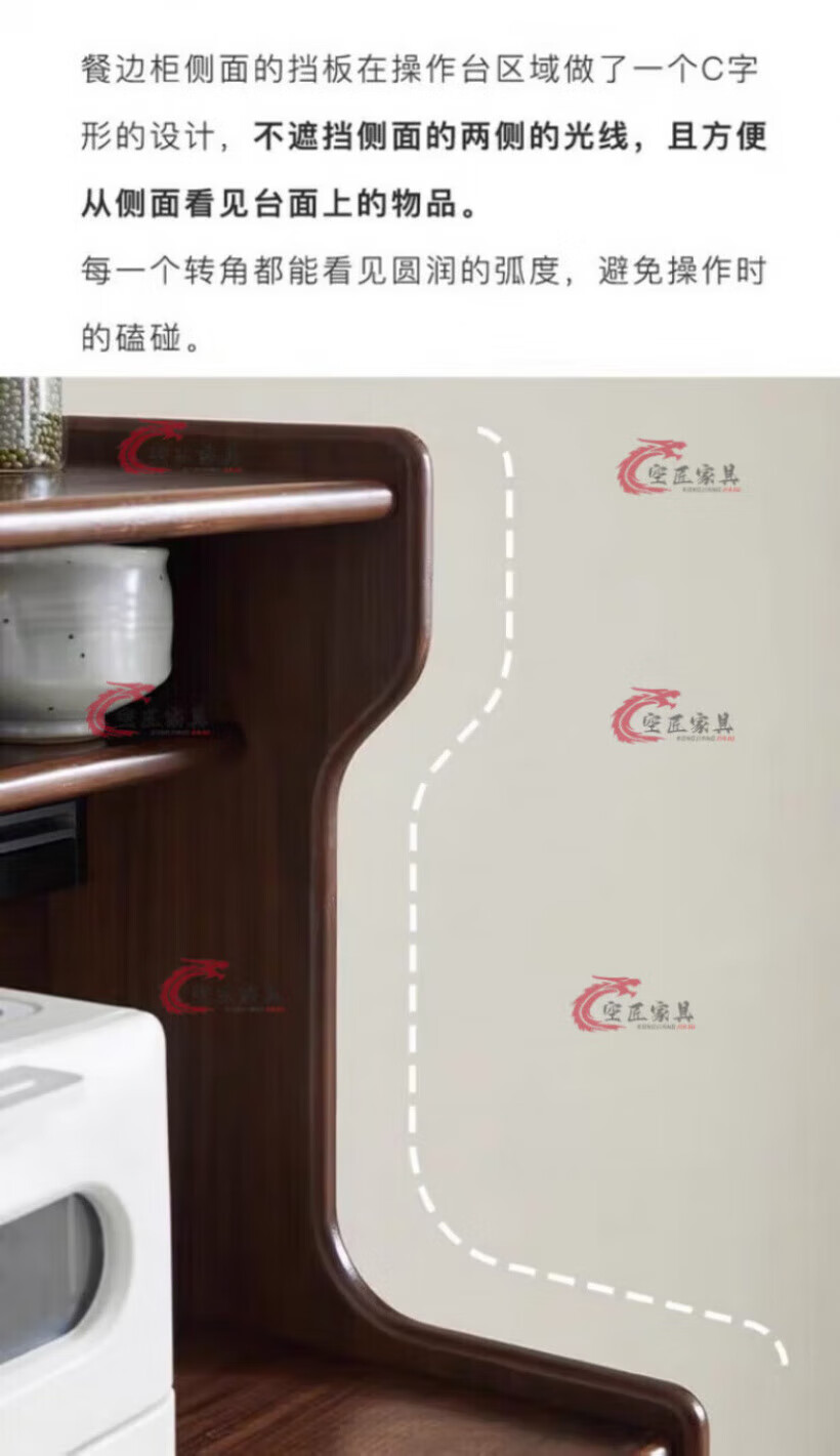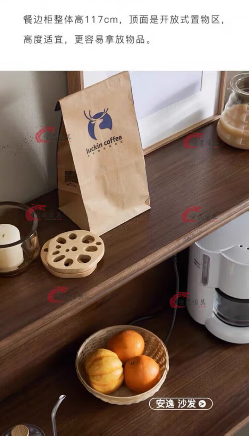 Kongjiang solid wood sideboard integrated wall cabinet mid-century style black walnut color multi-functional storage wine cabinet tea cabinet 120.40.117cm walnut color (with power track)
