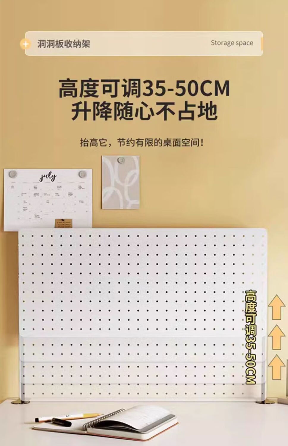 Desktop shelf perforated board storage and organization study desk partition baffle desk desk punch-free vertical clip height adjustable magnetic elegant white length 30 height 35 panels high configuration white storage eight-piece set