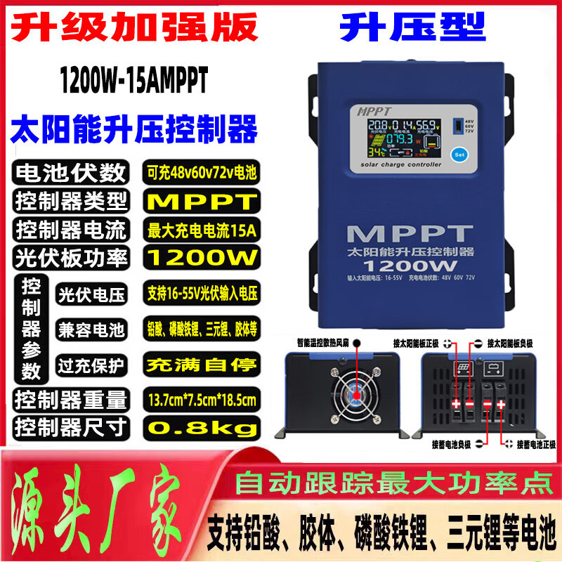 MPPT solar photovoltaic boost controller 48V60V72V battery adjustable universal electric vehicle charger boost-600W blue 16V-55V input