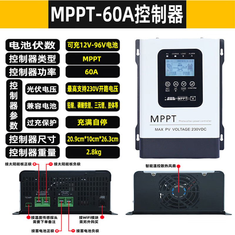 MPPT solar controller 12V24V48V60V72V96V lithium battery universal 230V photovoltaic charger 30A white supports up to 150V input
