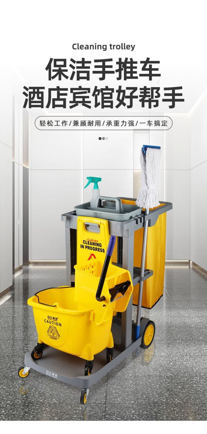 Bun Peng Cleaning Car Multi-function Trolley Hotel Property Restaurant Tool Cart Cleaning Cart Linen Cart Gray Car 2023 Thickened Model-Baiyun Brand