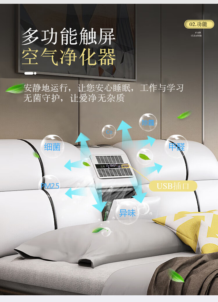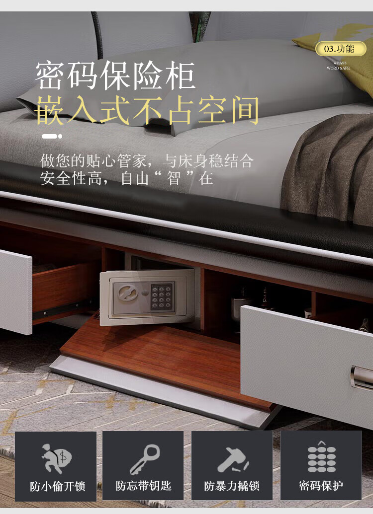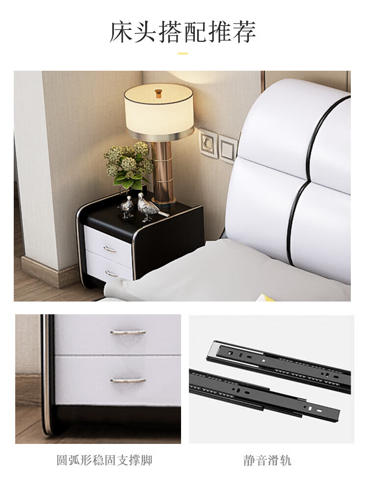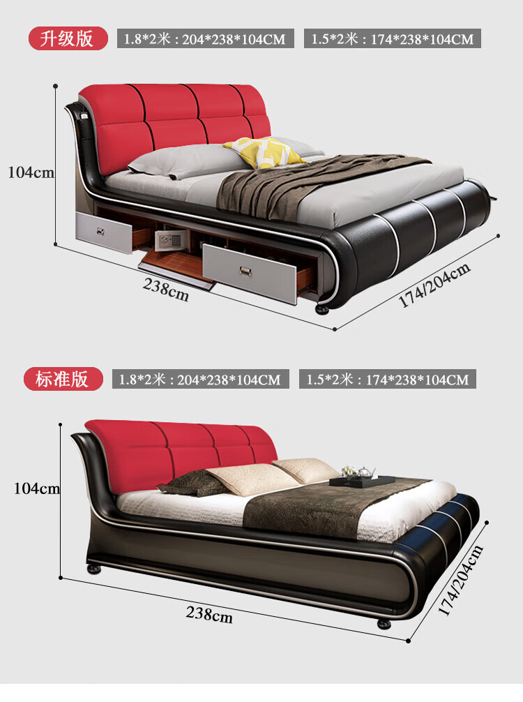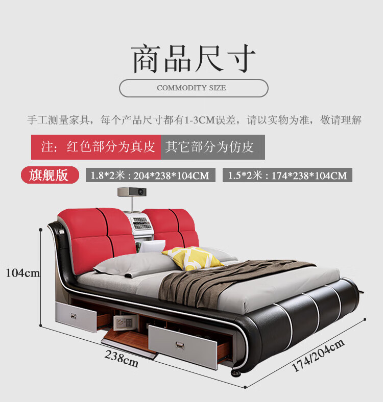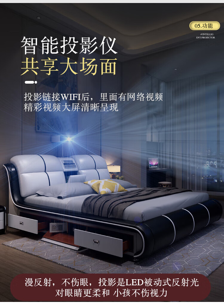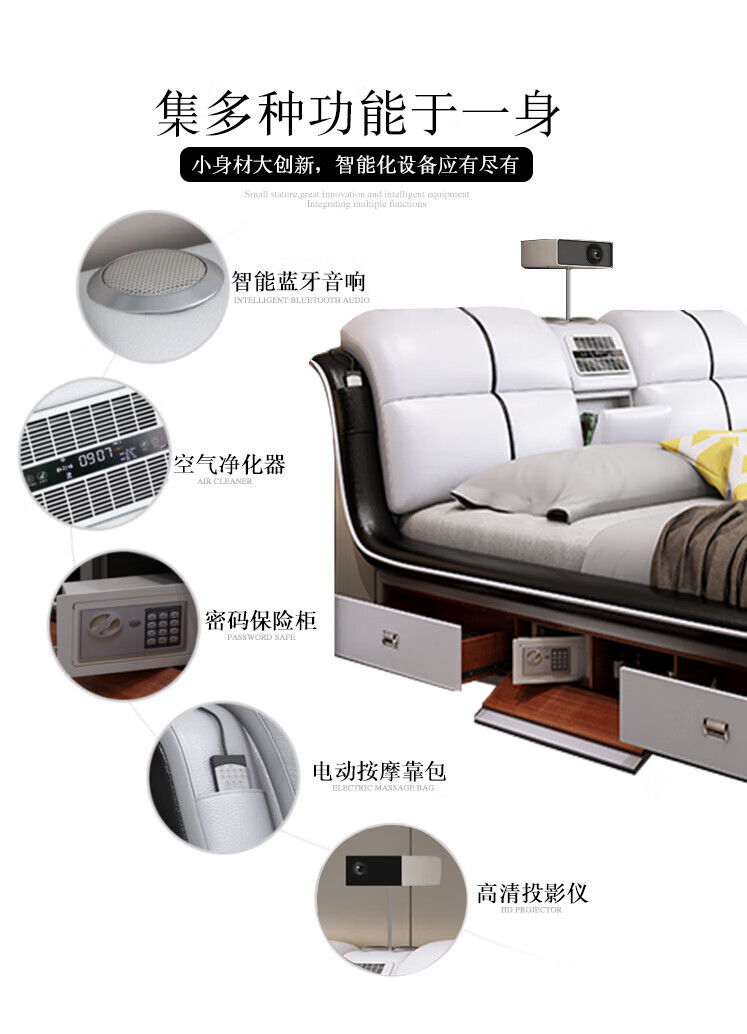 He Jiagong Leather Bed Multifunctional Electric Massage High Box Storage Double King Bed Master Bedroom Luxurious Soft Cover Wedding Bed Tatami Low Version Single Bed Without Mattress Bedside Table (Reactive 1500mm*2000mm Bracket Structure