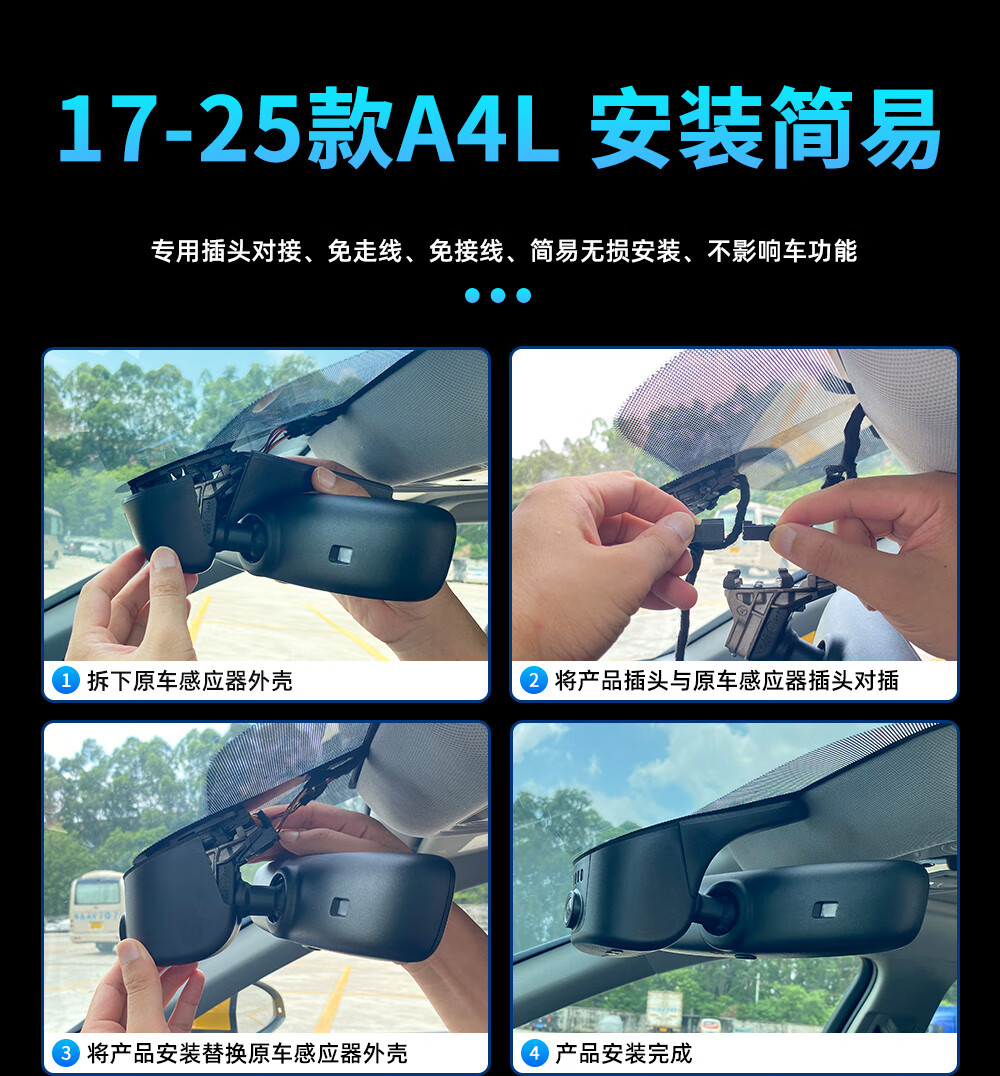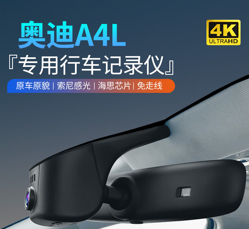 Lingzhou Audi a4l driving recorder special original factory wire-free high-definition night vision hidden mobile phone interconnection Audi a4 17-25 models Audi A4L special/black (single lens) 2160P 4K +128G high-speed U3 card