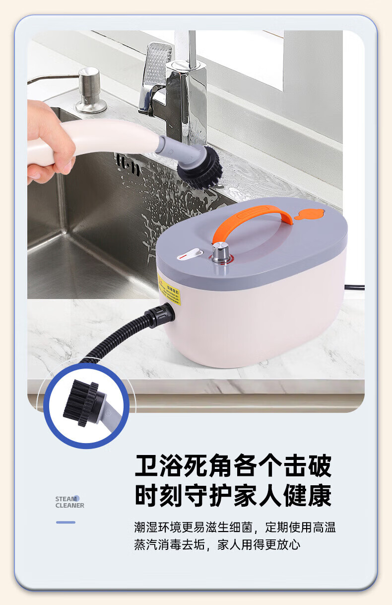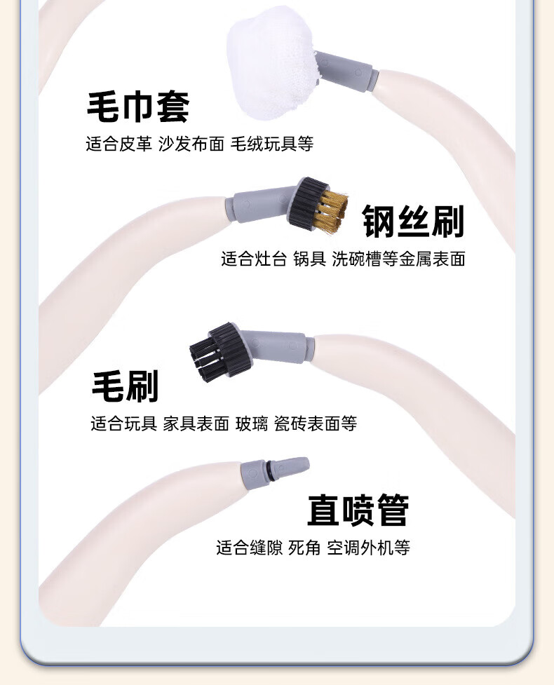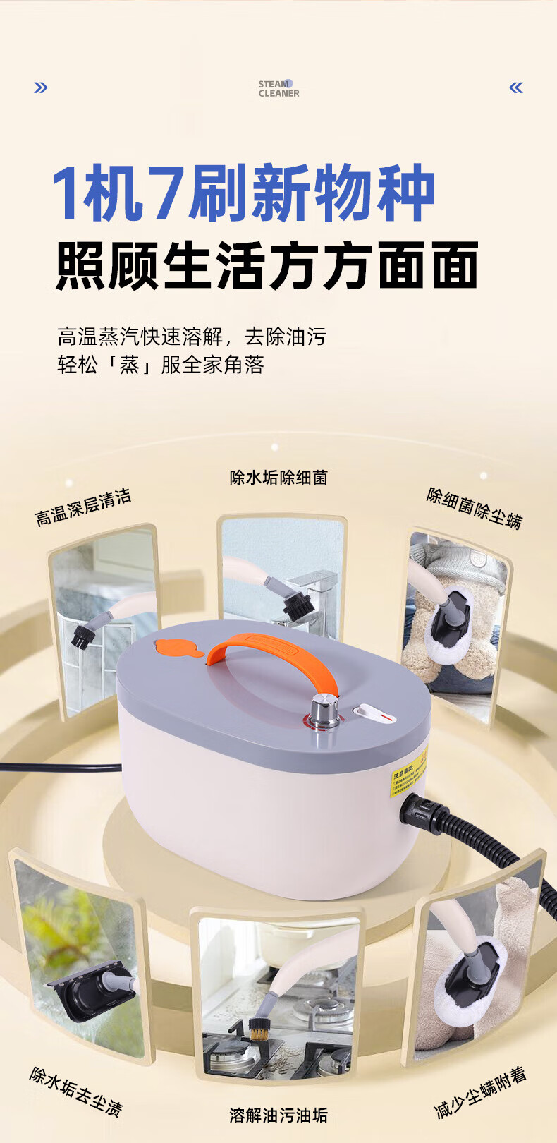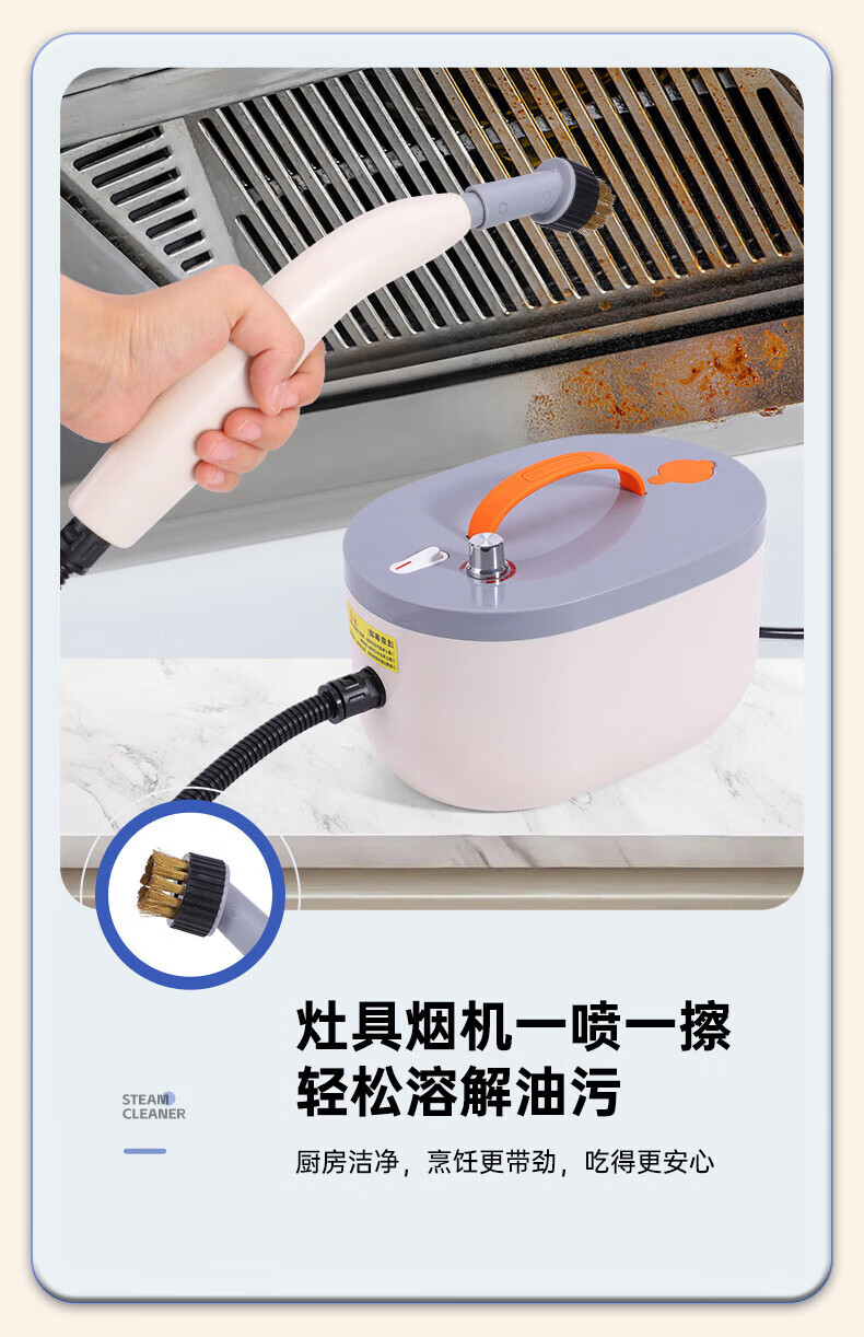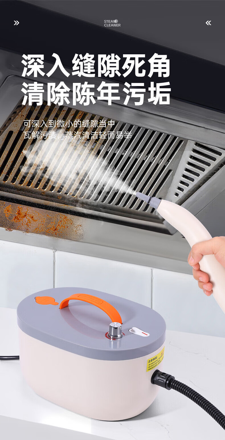 Midea steam cleaner high pressure and high temperature steam cleaner household window whole house housekeeping handheld kitchen fume and oil stain cleaning machine gray cover beige 1200W 4 pieces