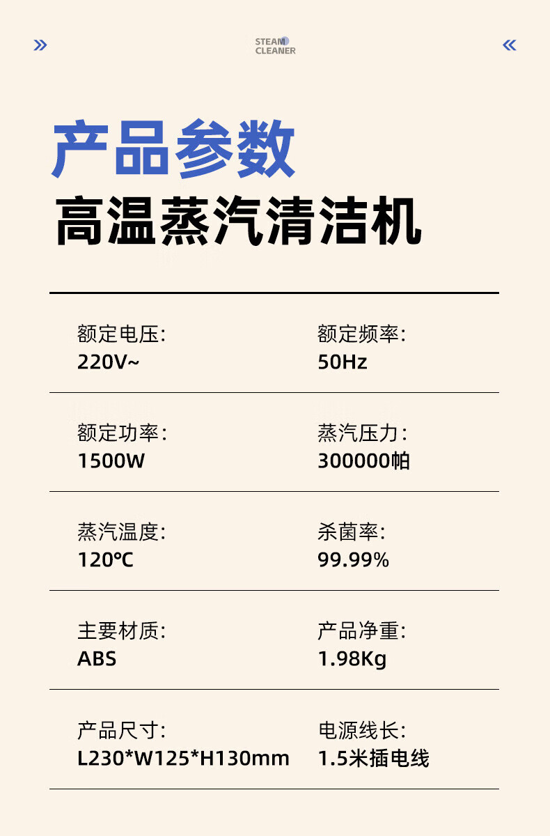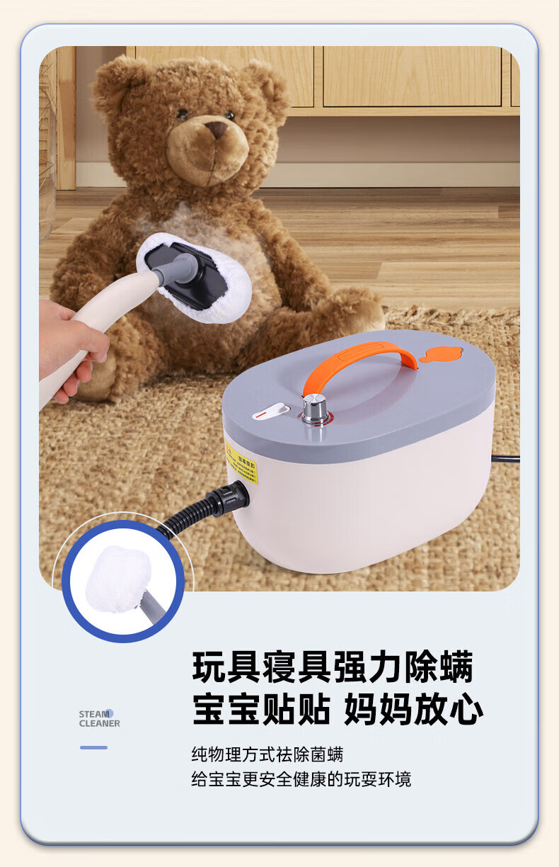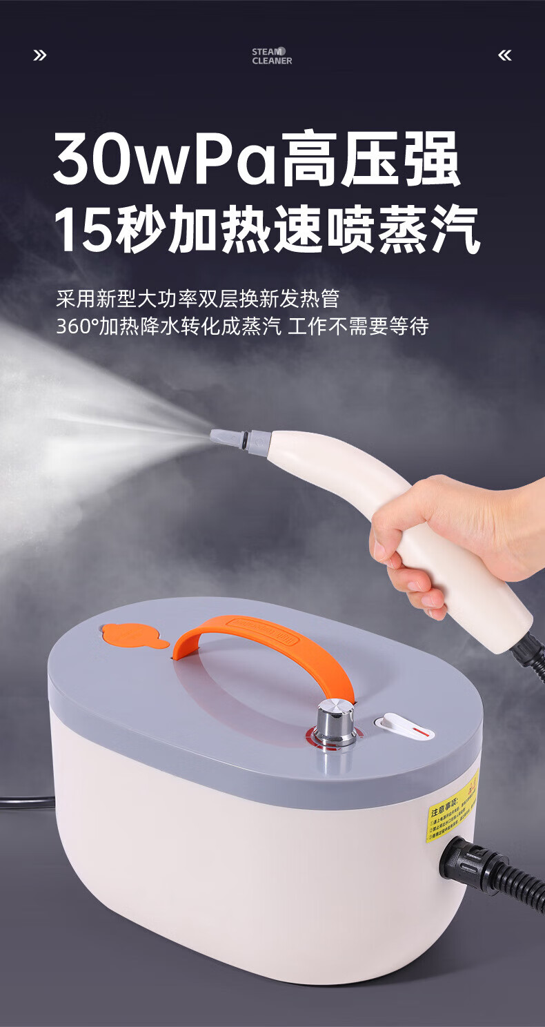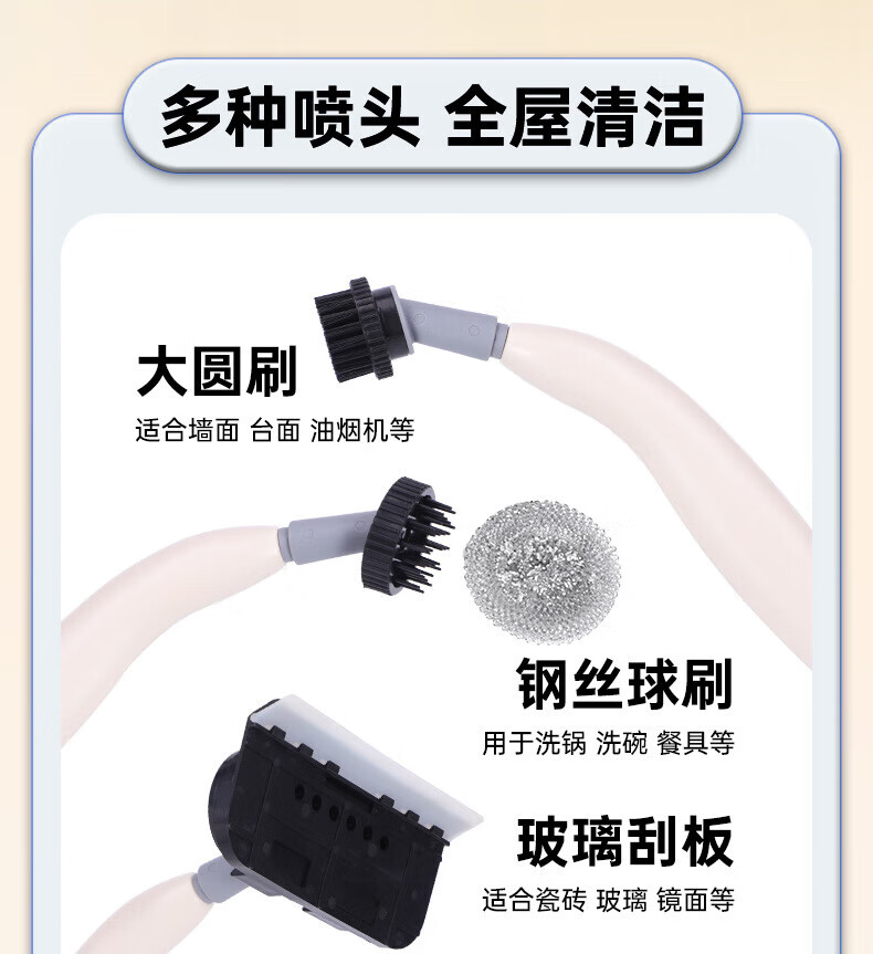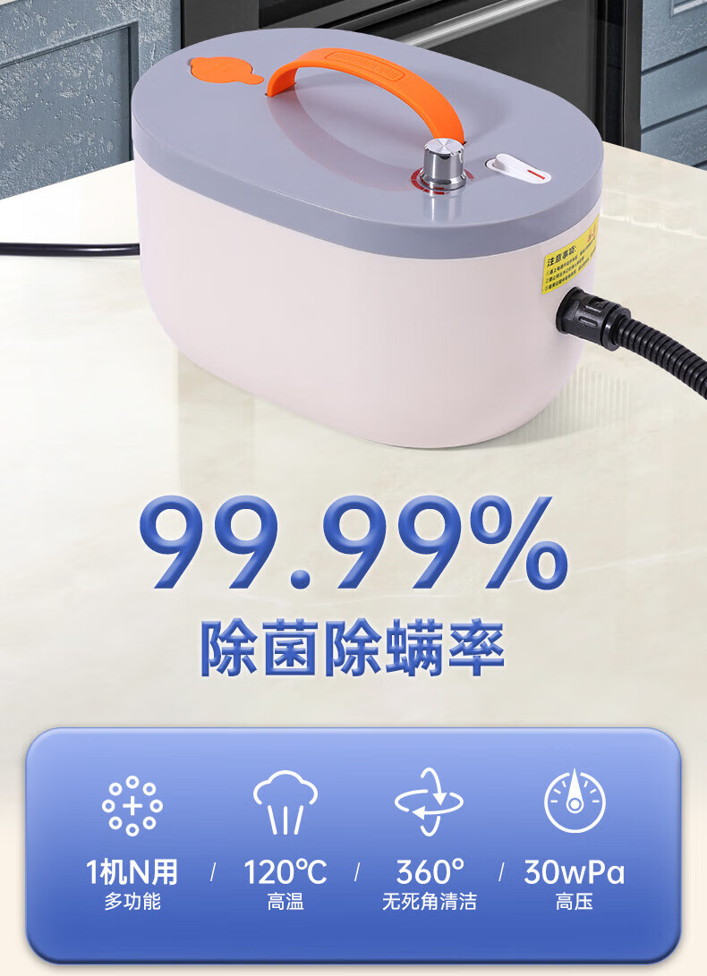 Midea steam cleaner high pressure and high temperature steam cleaner household window whole house housekeeping handheld kitchen fume and oil stain cleaning machine gray cover beige 1200W 4 pieces
