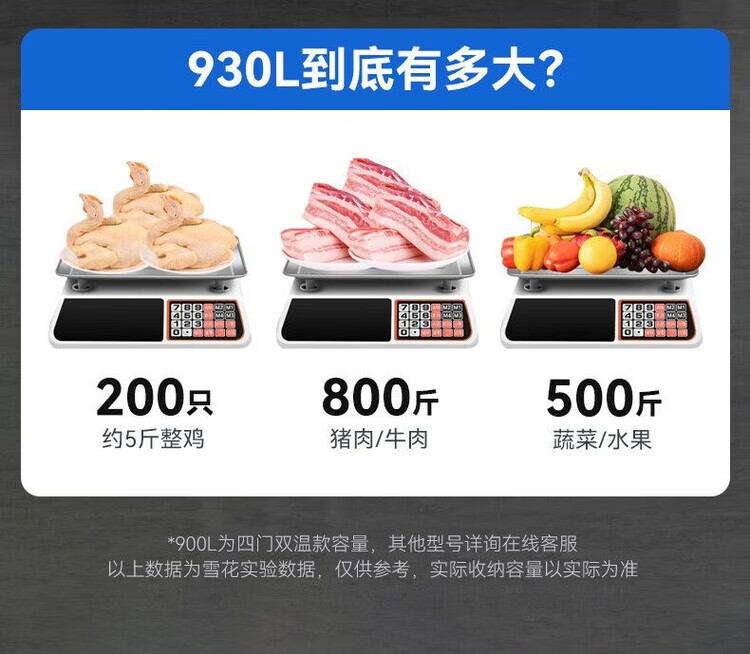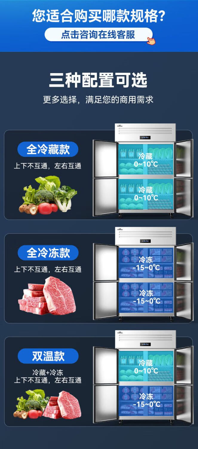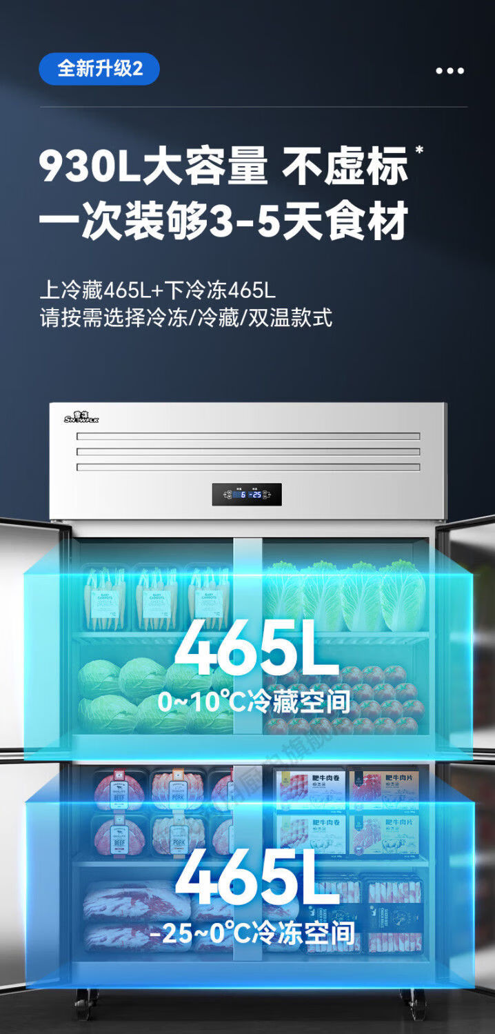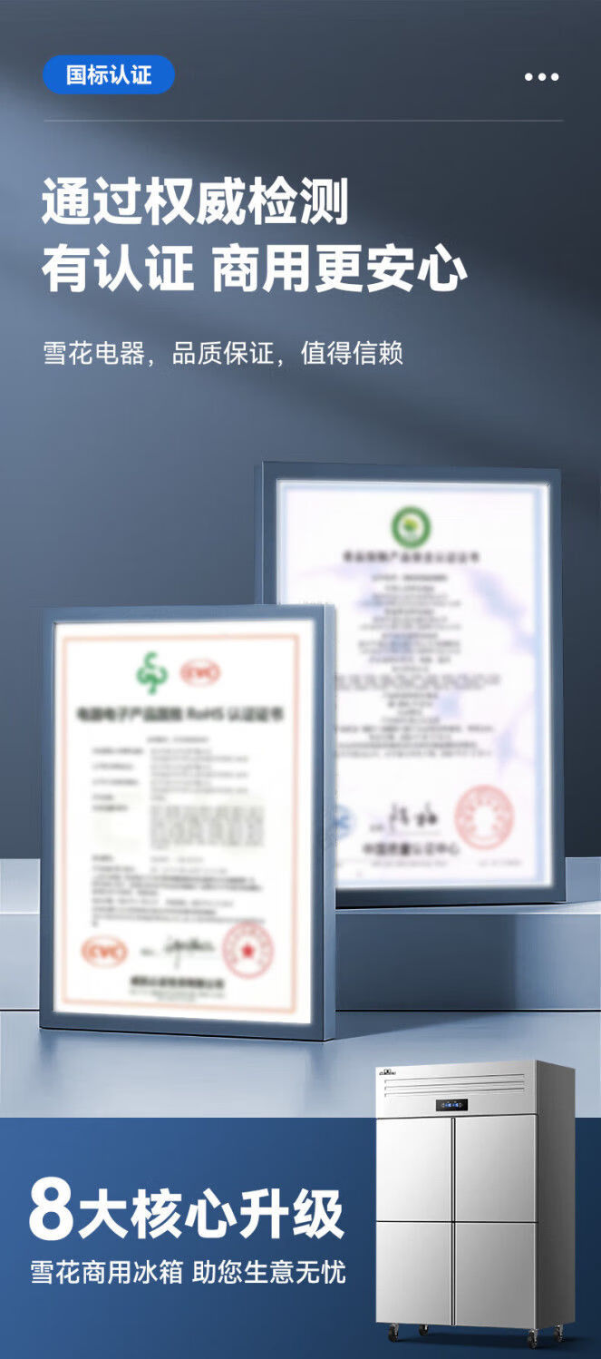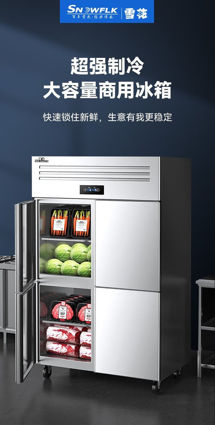 Snowflake (SNWFLK) four-six-door refrigerator commercial kitchen vertical refrigeration-freezer dual-temperature large capacity classic pure copper tube smart model brand new genuine + nationwide joint warranty upper two doors + lower two doors fully refrigerated - deep cooling and quick freezing + energy saving