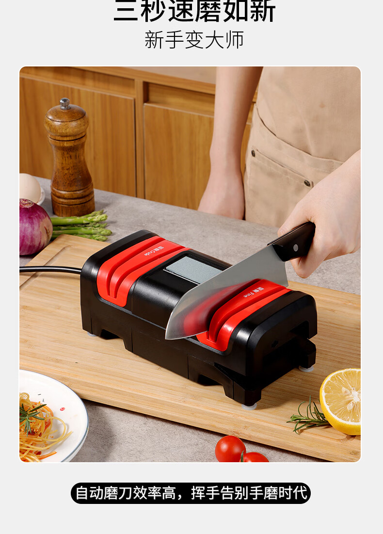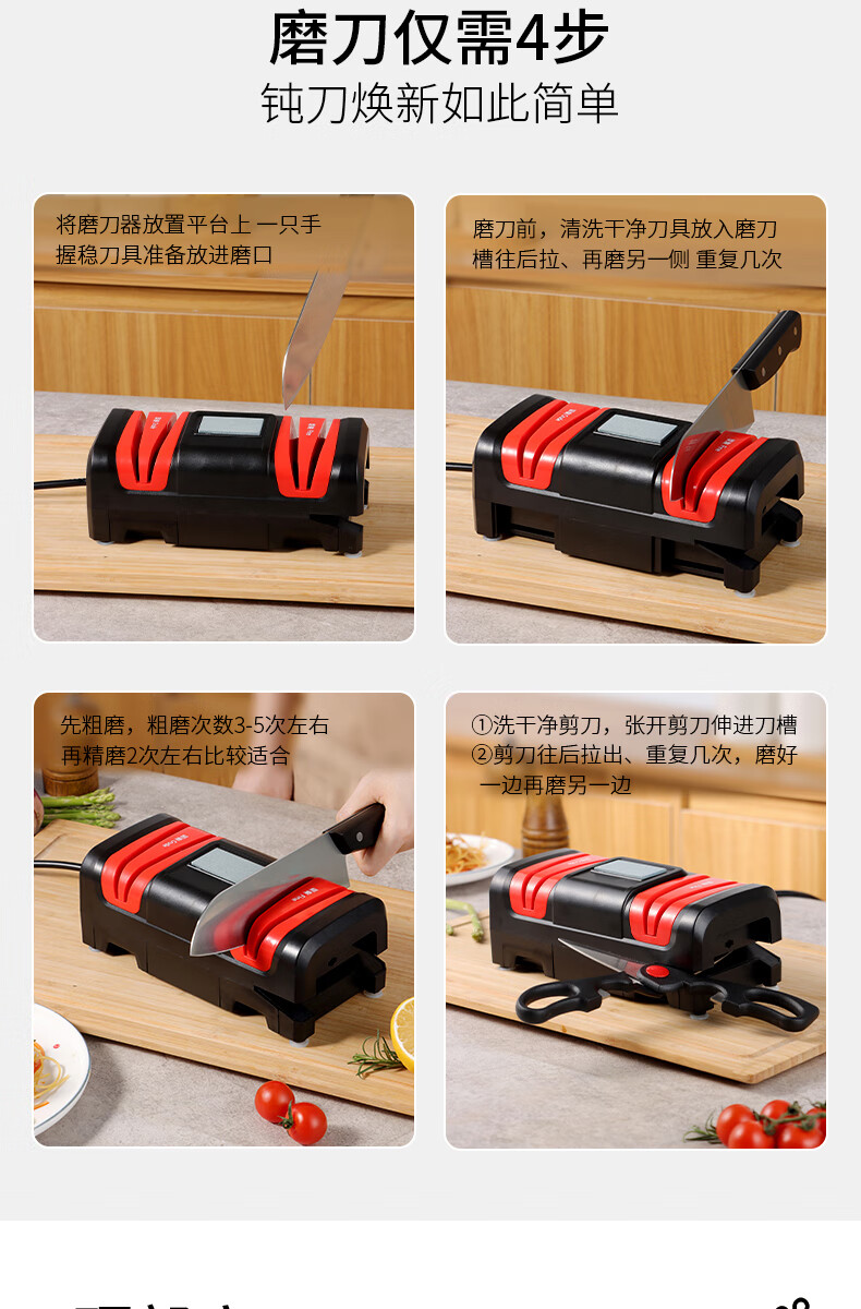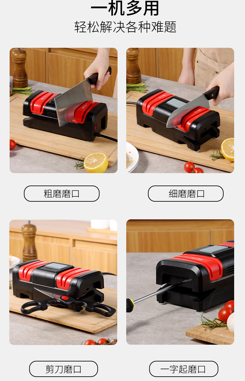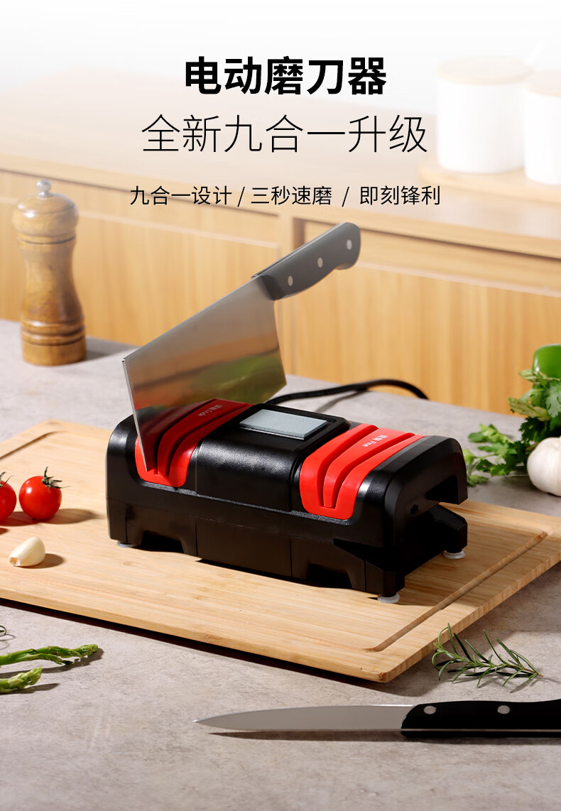 BJ Knife Sharpening Artifact Electric Knife Sharpener Fully Automatic Small Household Kitchen Knife Quick Sharpening Stone Sharpening Scissors Black and Red - Upgraded Eight Grinding Positions Comes with 3 Spare Grinding Wheels + Cleaning Brush