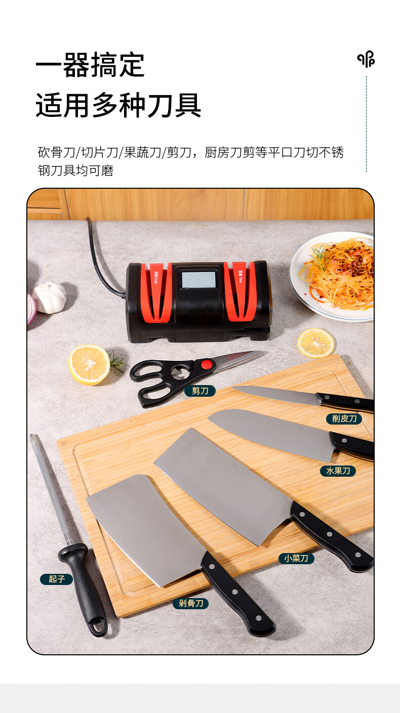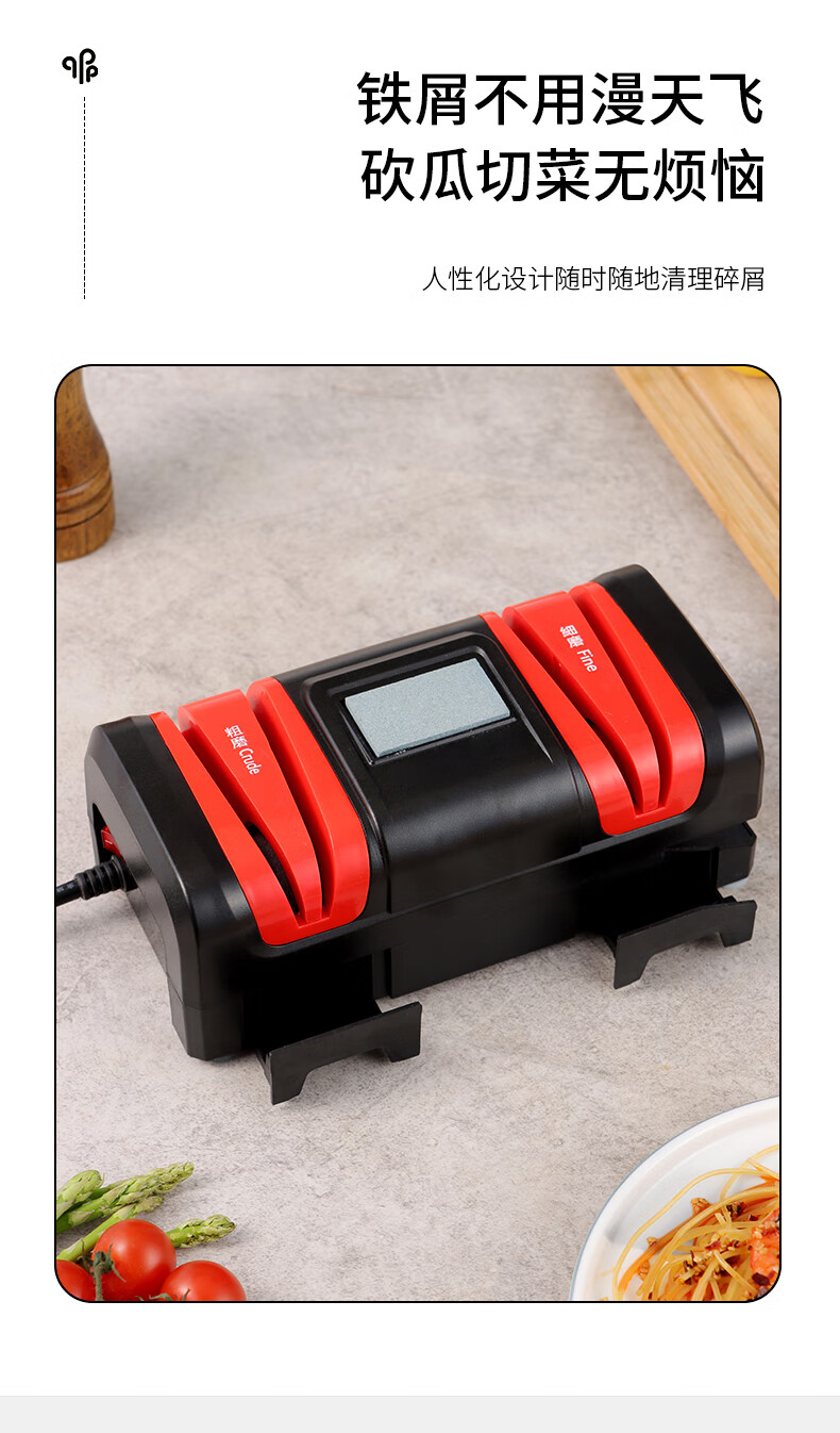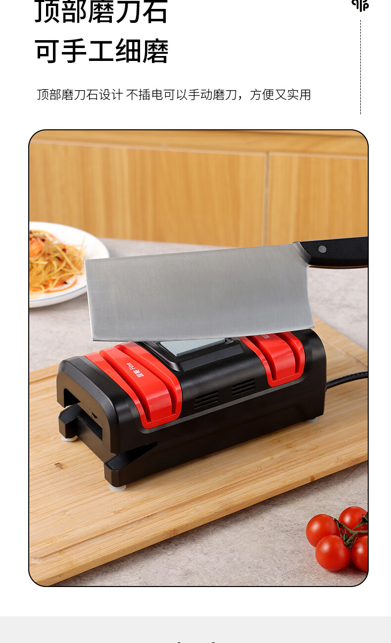 BJ Knife Sharpening Artifact Electric Knife Sharpener Fully Automatic Small Household Kitchen Knife Quick Sharpening Stone Sharpening Scissors Black and Red - Upgraded Eight Grinding Positions Comes with 3 Spare Grinding Wheels + Cleaning Brush