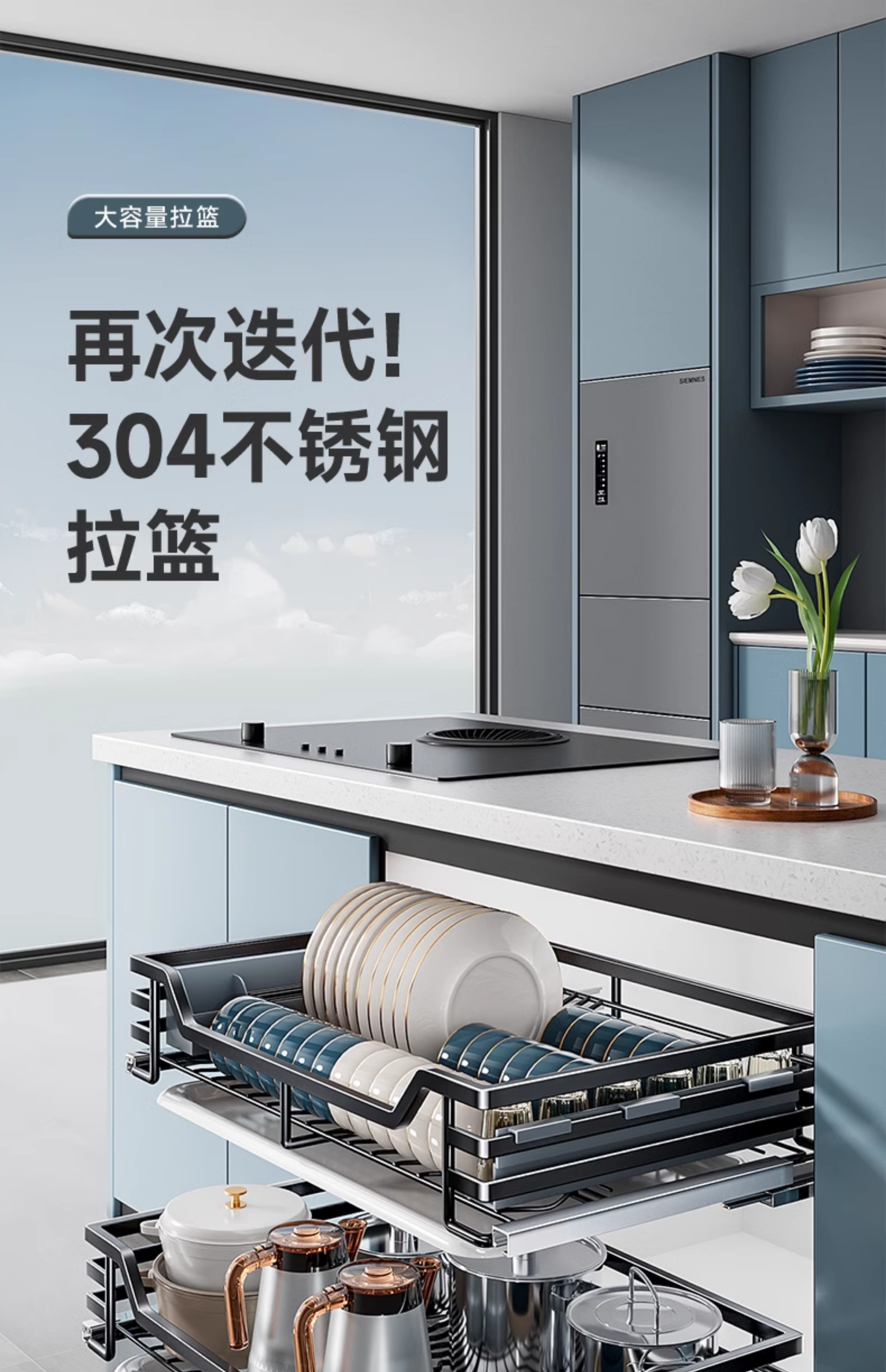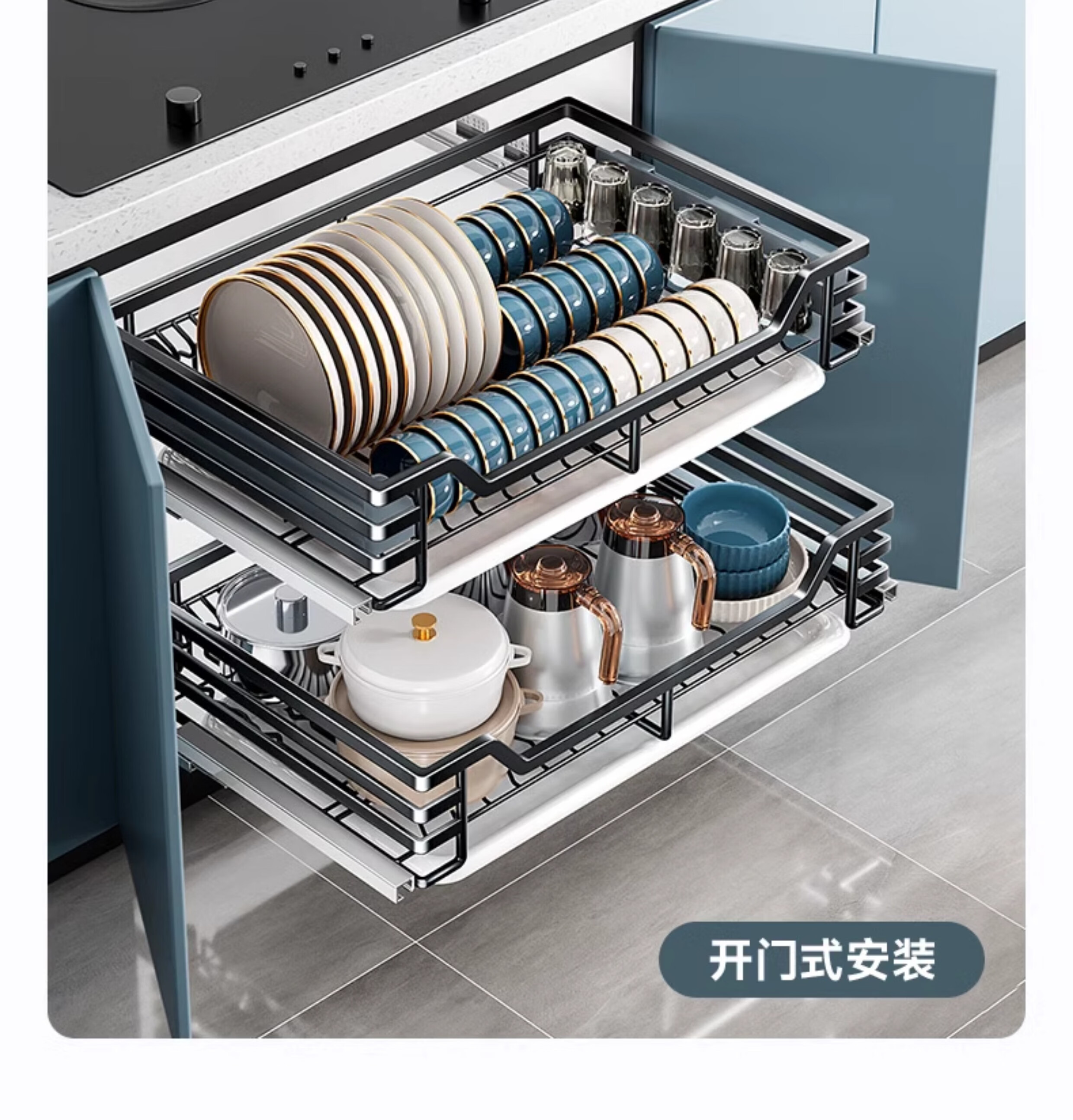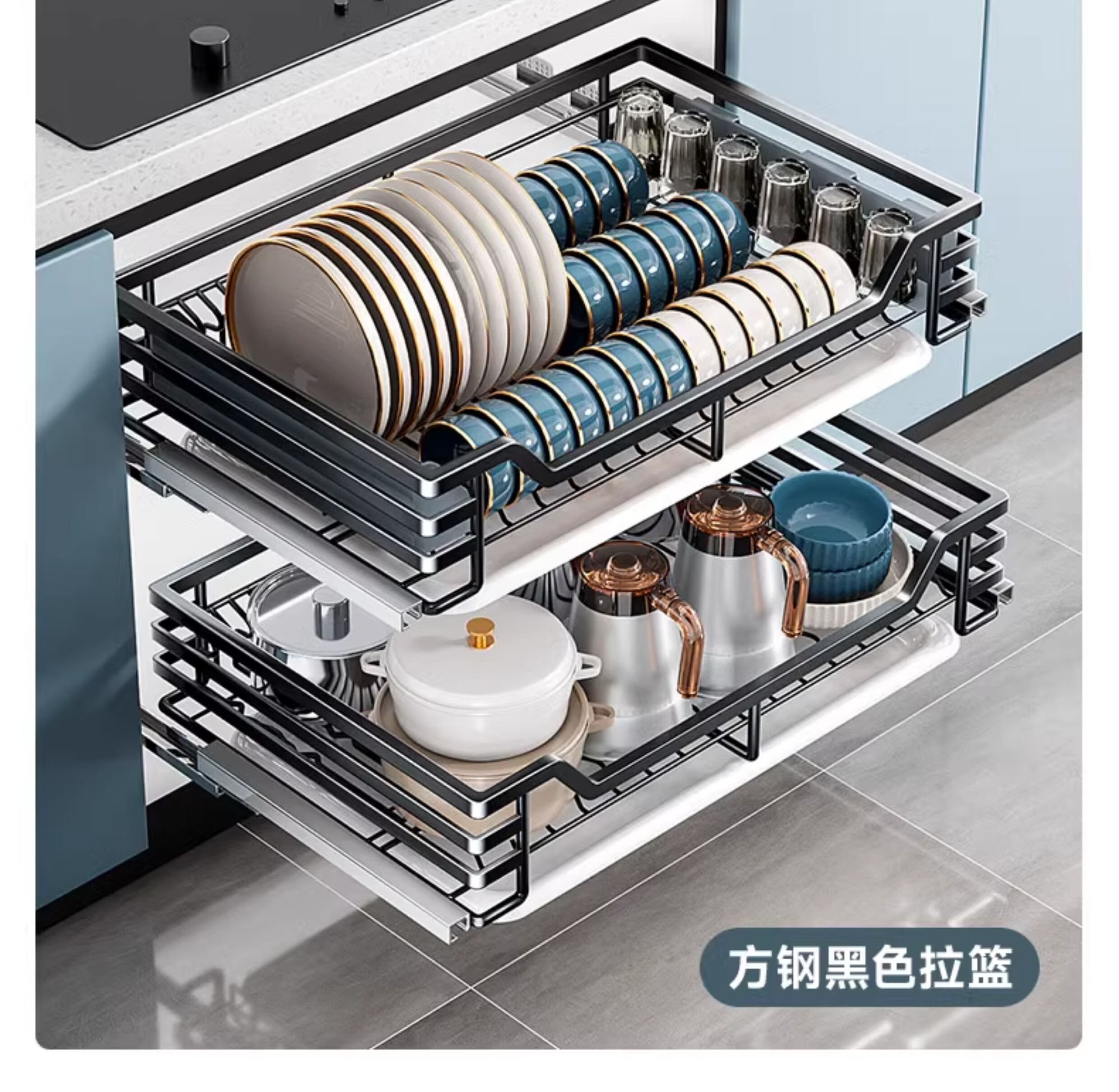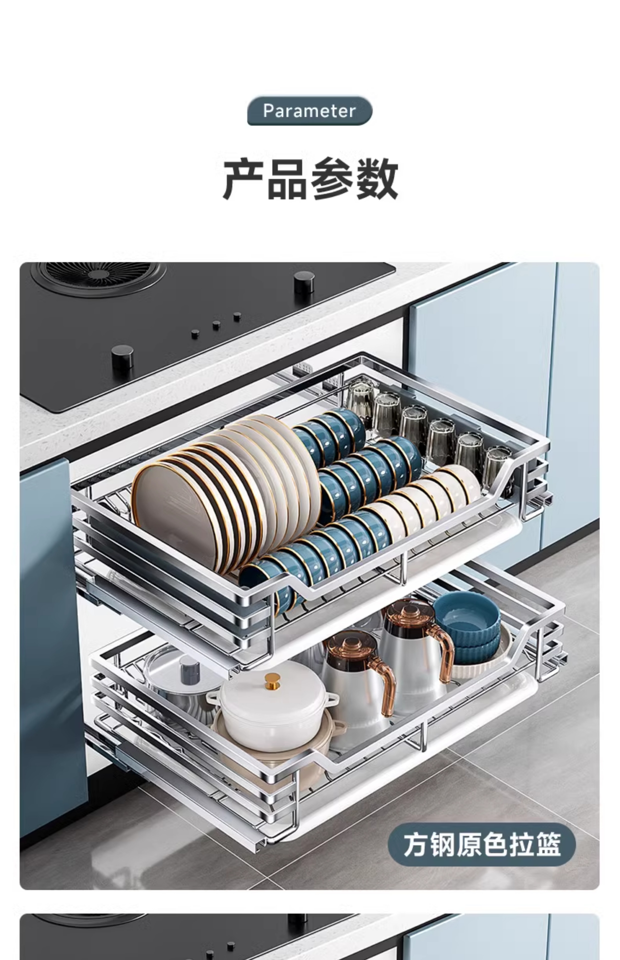 Kitchen cabinet pull basket 304 stainless steel customizable double-layer drawer-type dish rack kitchen cabinet bowl basket 360 depth double-layer solid original color-600 cabinet