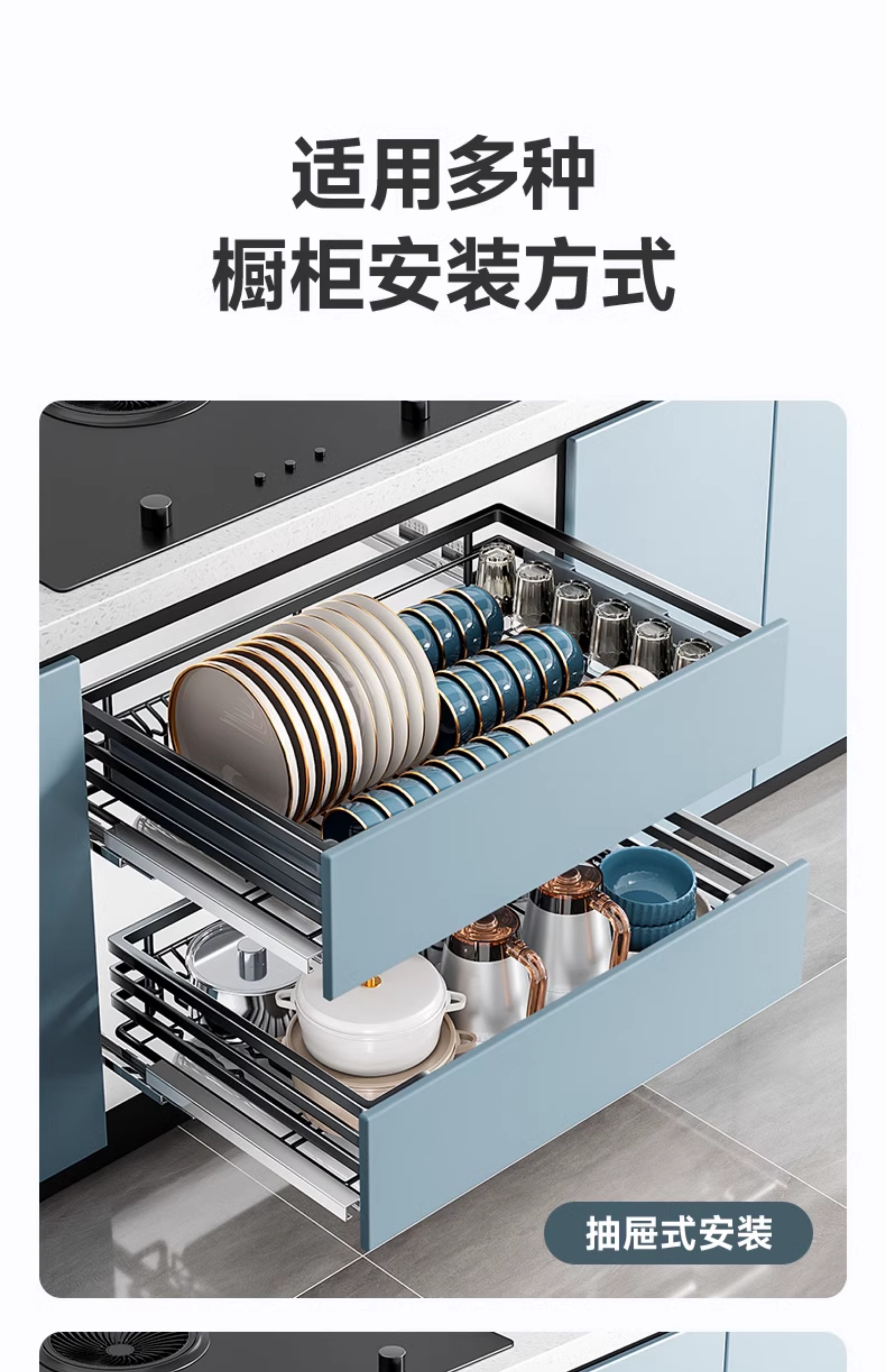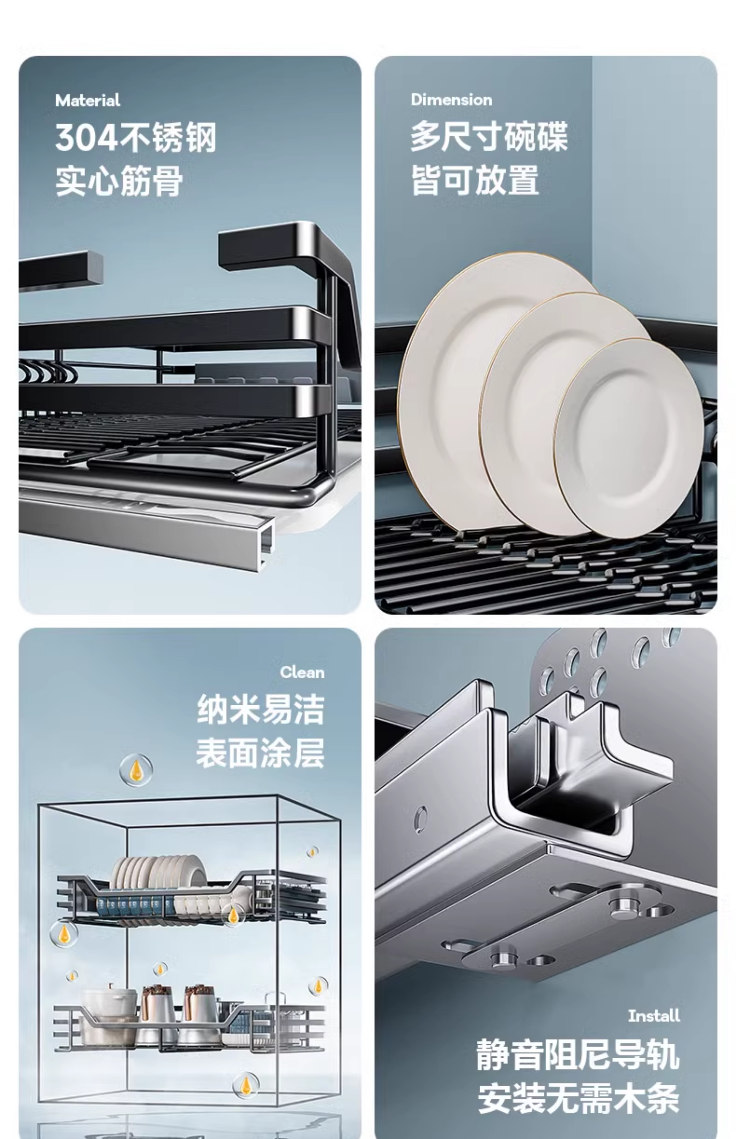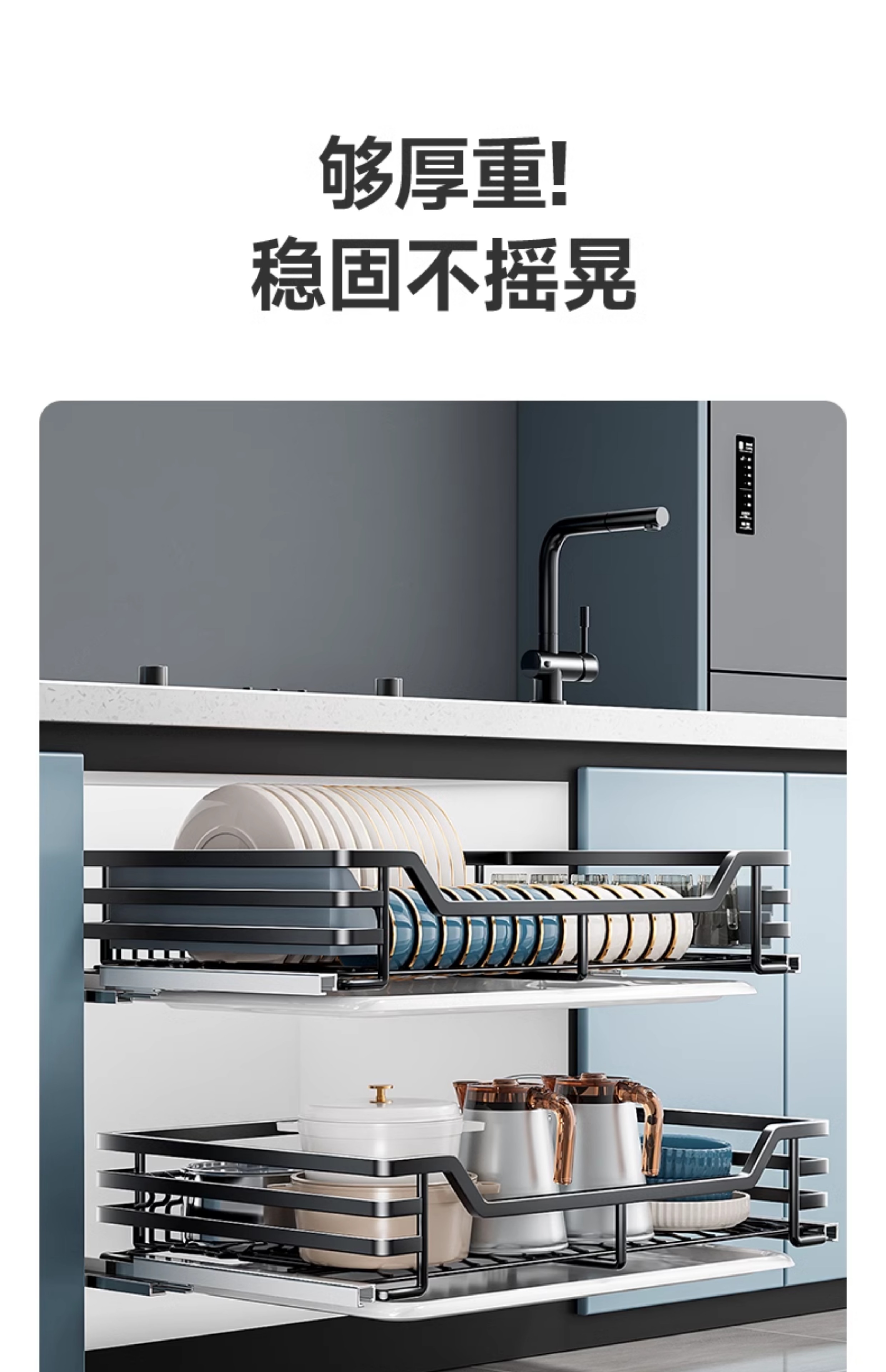 Kitchen cabinet pull basket 304 stainless steel customizable double-layer drawer-type dish rack kitchen cabinet bowl basket 360 depth double-layer solid original color-600 cabinet