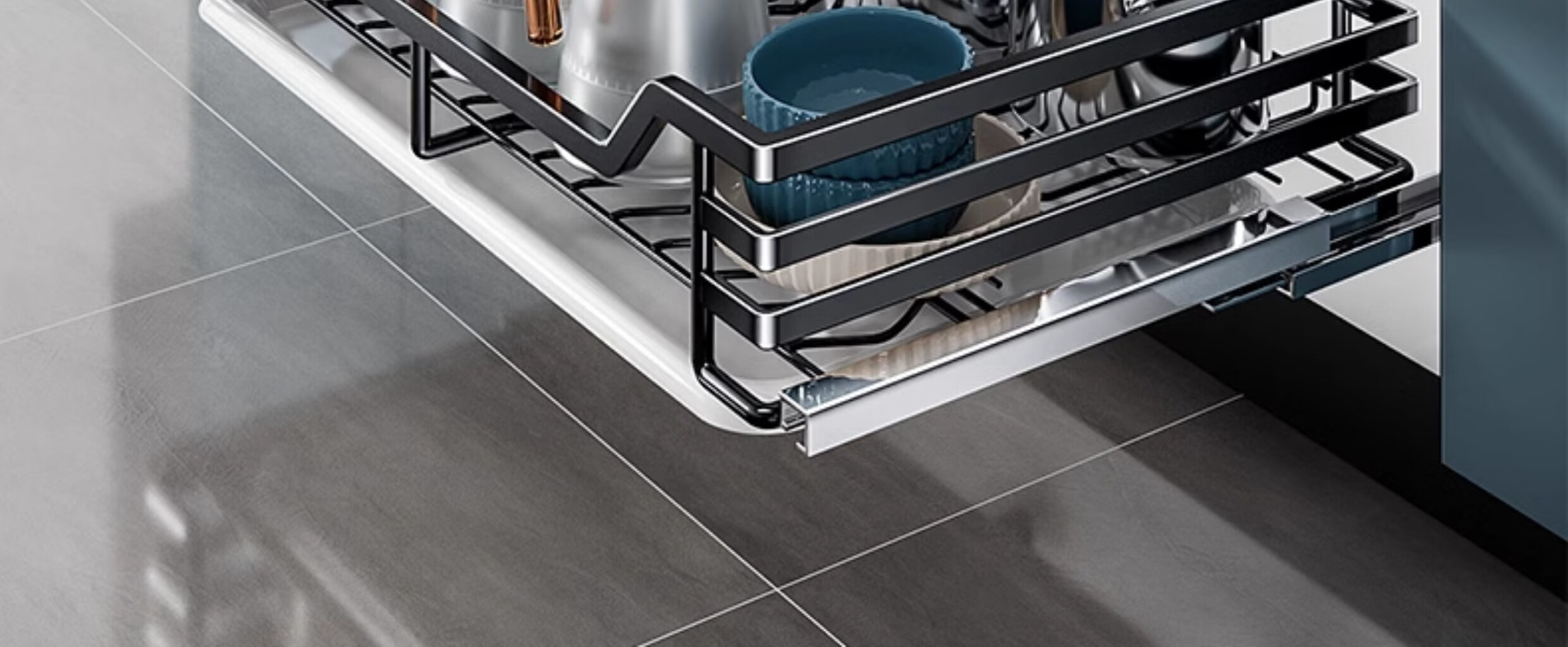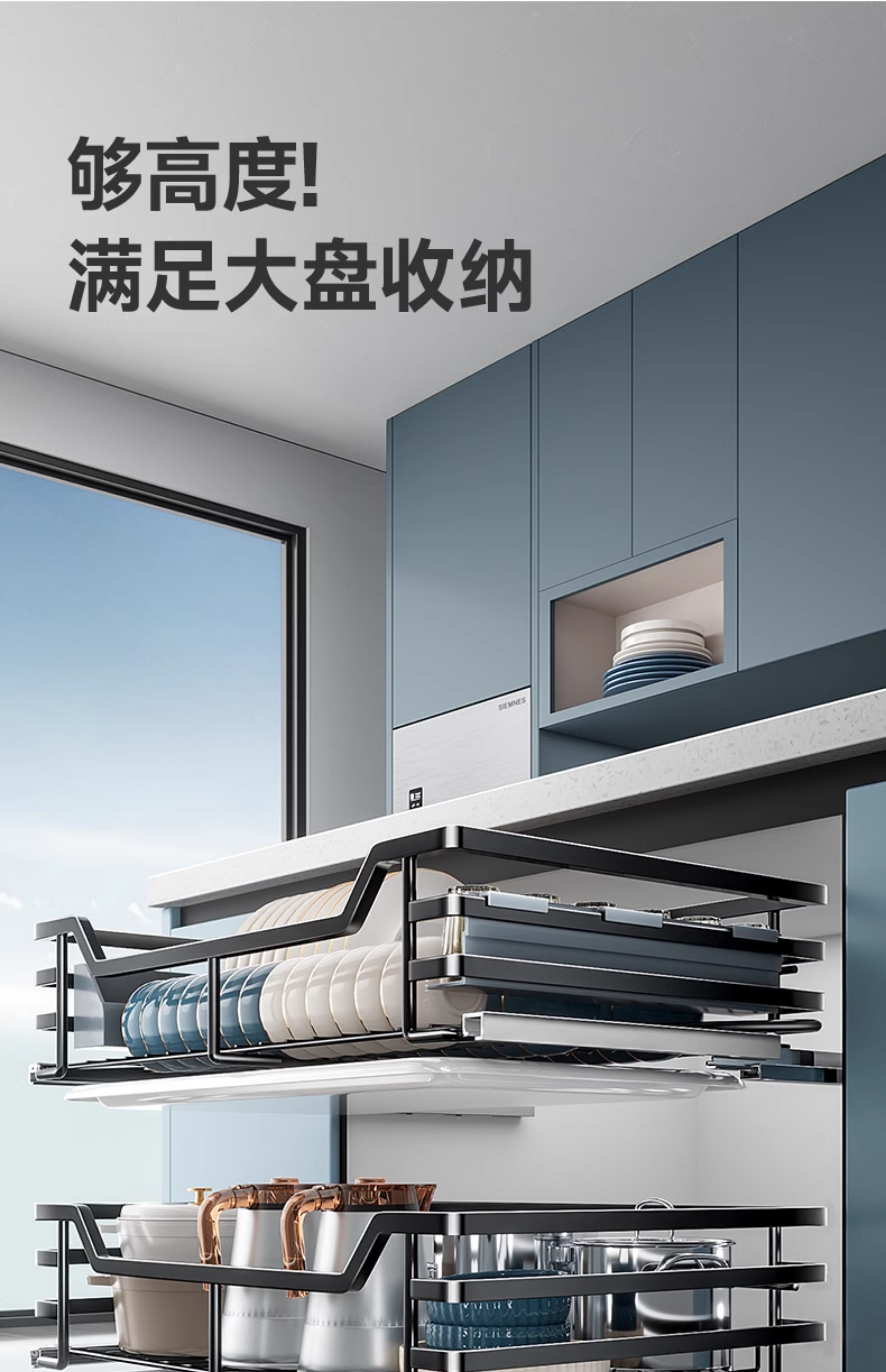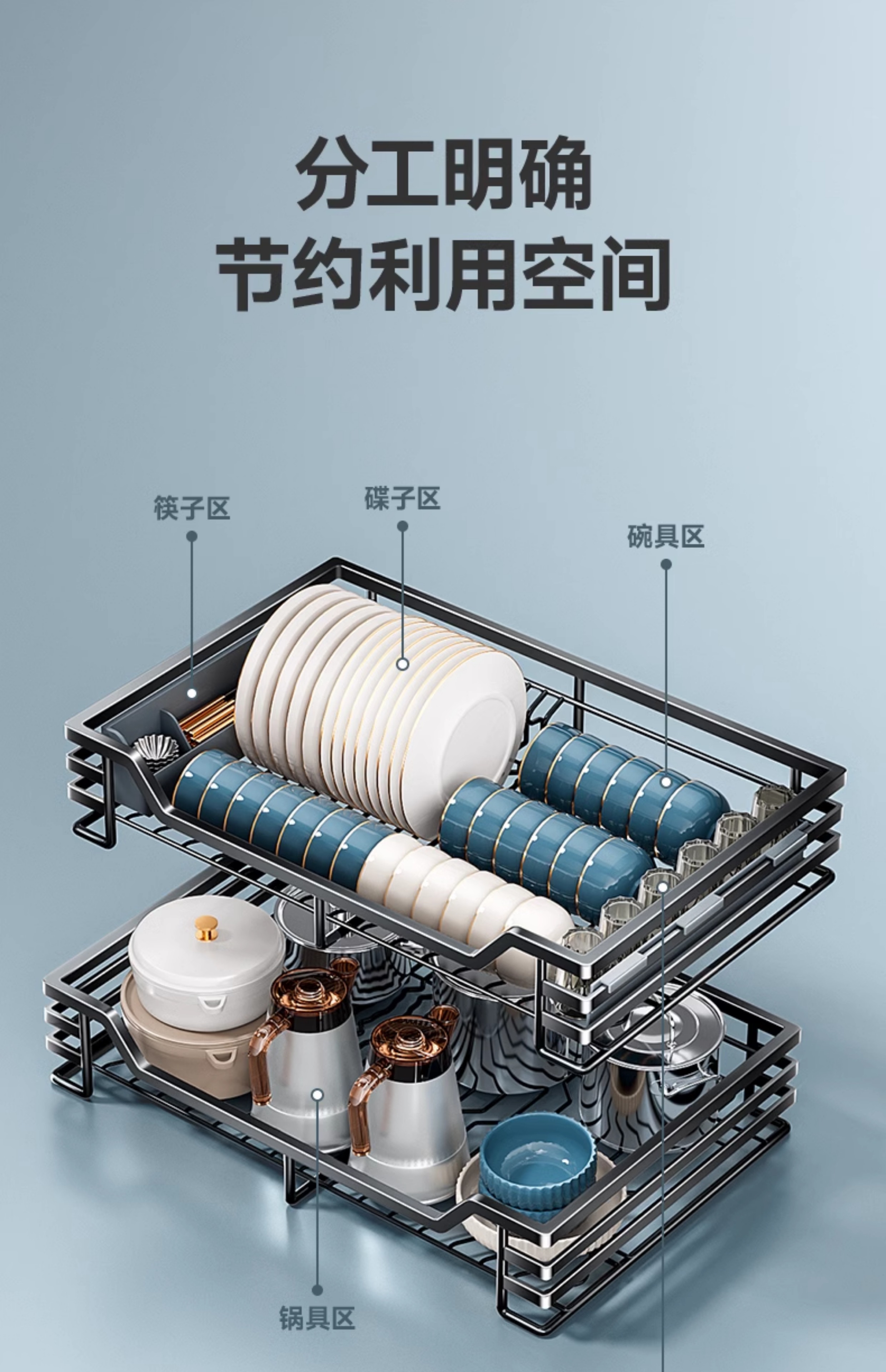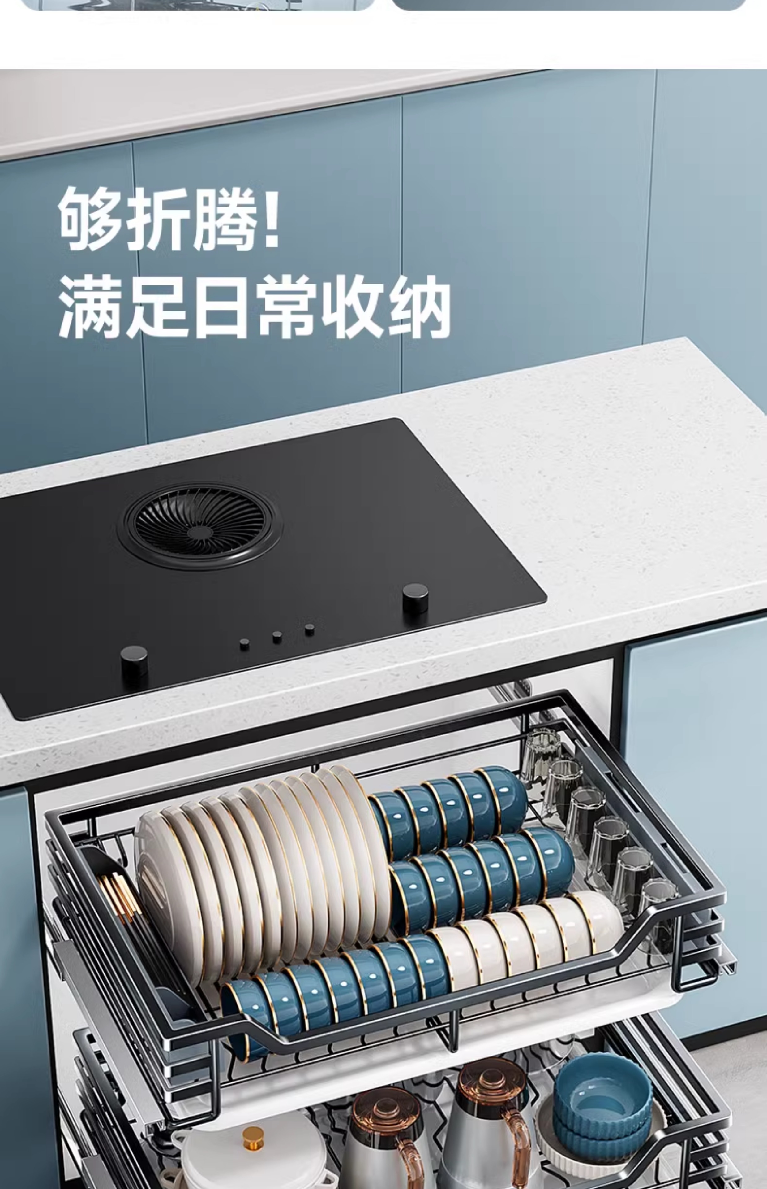 Kitchen cabinet pull basket 304 stainless steel customizable double-layer drawer-type dish rack kitchen cabinet bowl basket 360 depth double-layer solid original color-600 cabinet