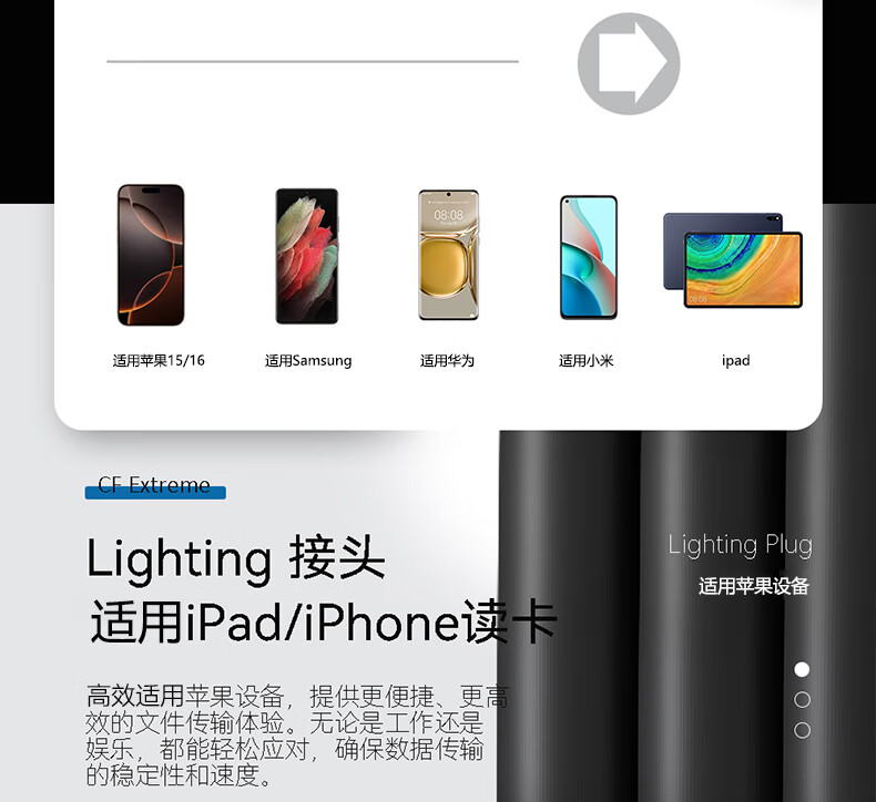 Huaqiangbei CF card reader all-in-one Canon Nikon ccd camera SD memory card TF memory Android type c high-speed USB3.0 suitable for Huawei Xiaomi Apple mobile phone otg battery suitable for Apple+TypeC+USB lanyard model double-headed CF-3 in USB3.0