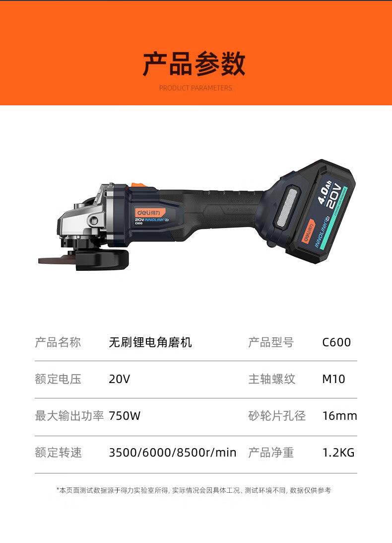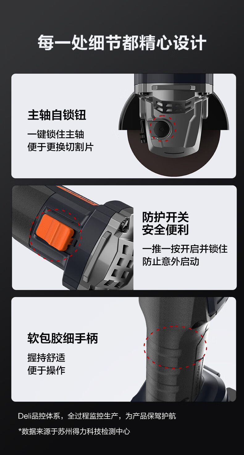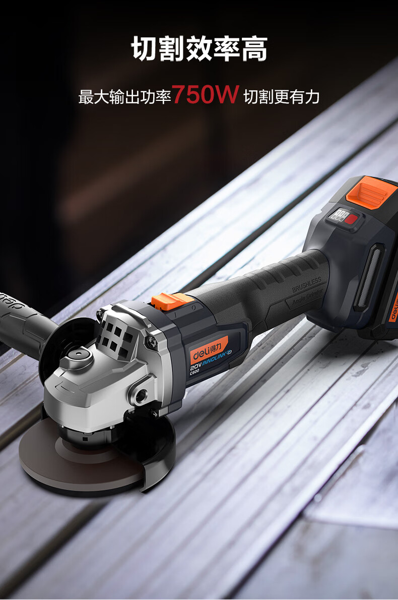 Deli (deli) brushless lithium battery rechargeable angle grinder genuine polishing machine hand grinding small cutting electric household handheld 20V brushless lithium battery model three-speed speed C600 no specifications