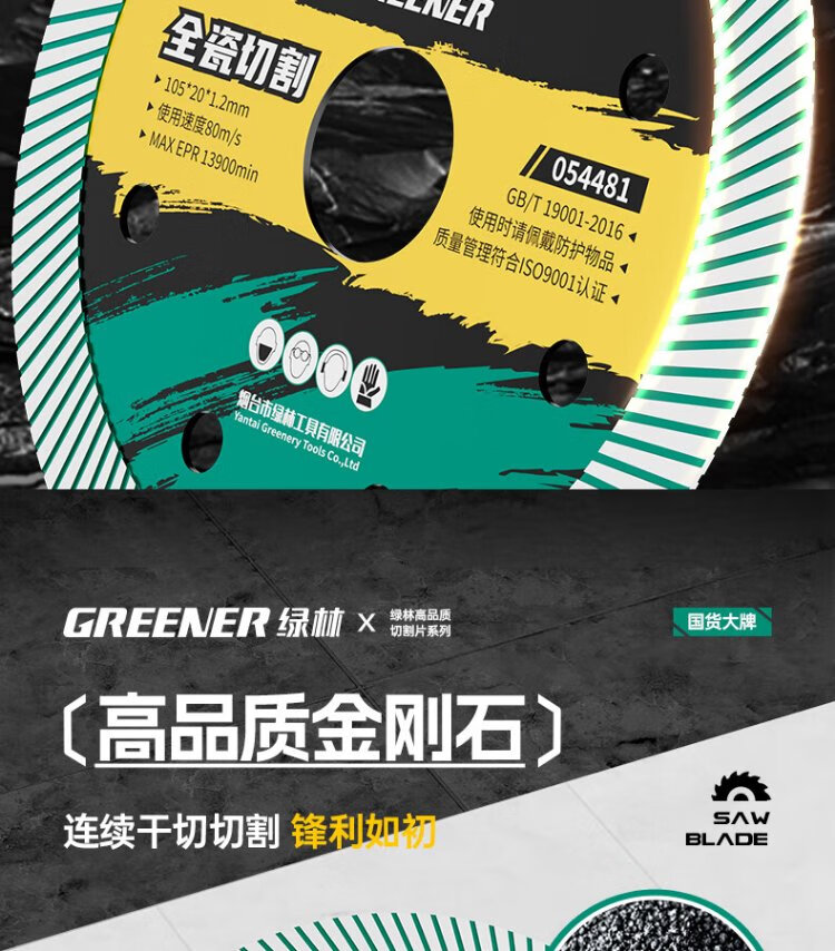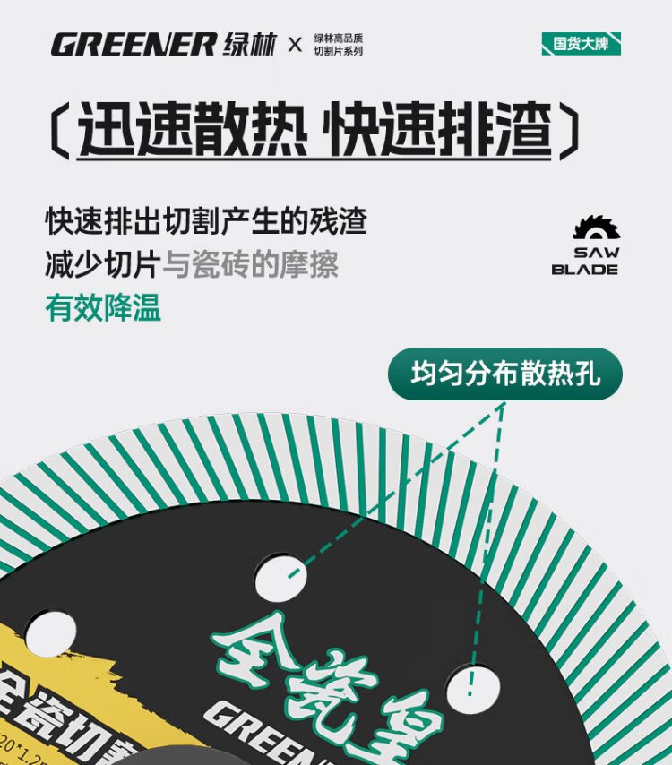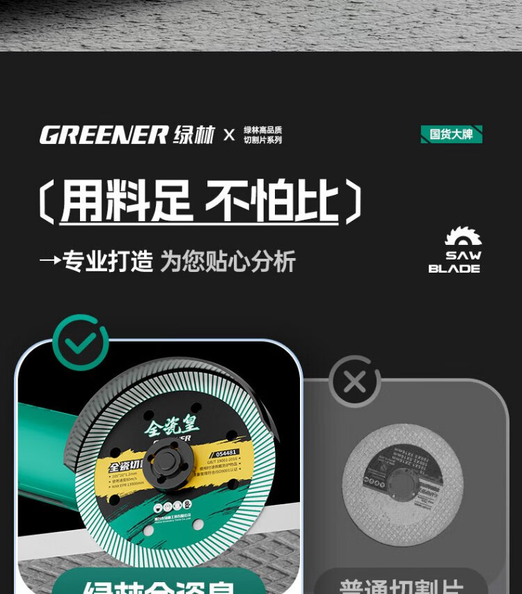 Greener (GREENER) green forest tile cutting disc all-ceramic special non-collapse edge grinding rock plate angle grinder diamond marble machine vitrified tile master style all-ceramic cutting disc-1 piece