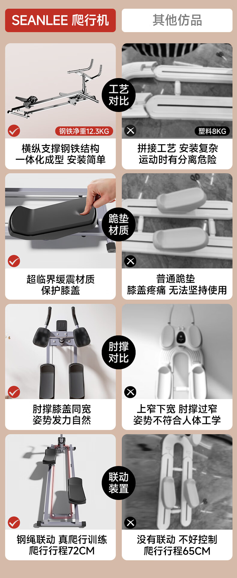 SEAN LEE crawler machine lumbar stretching core training spine spinal exercise artifact fitness weight loss slimming belly climbing machine steel rope linkage flagship model multi-function electronic watch + 5 levels of height super soft kneeling pad