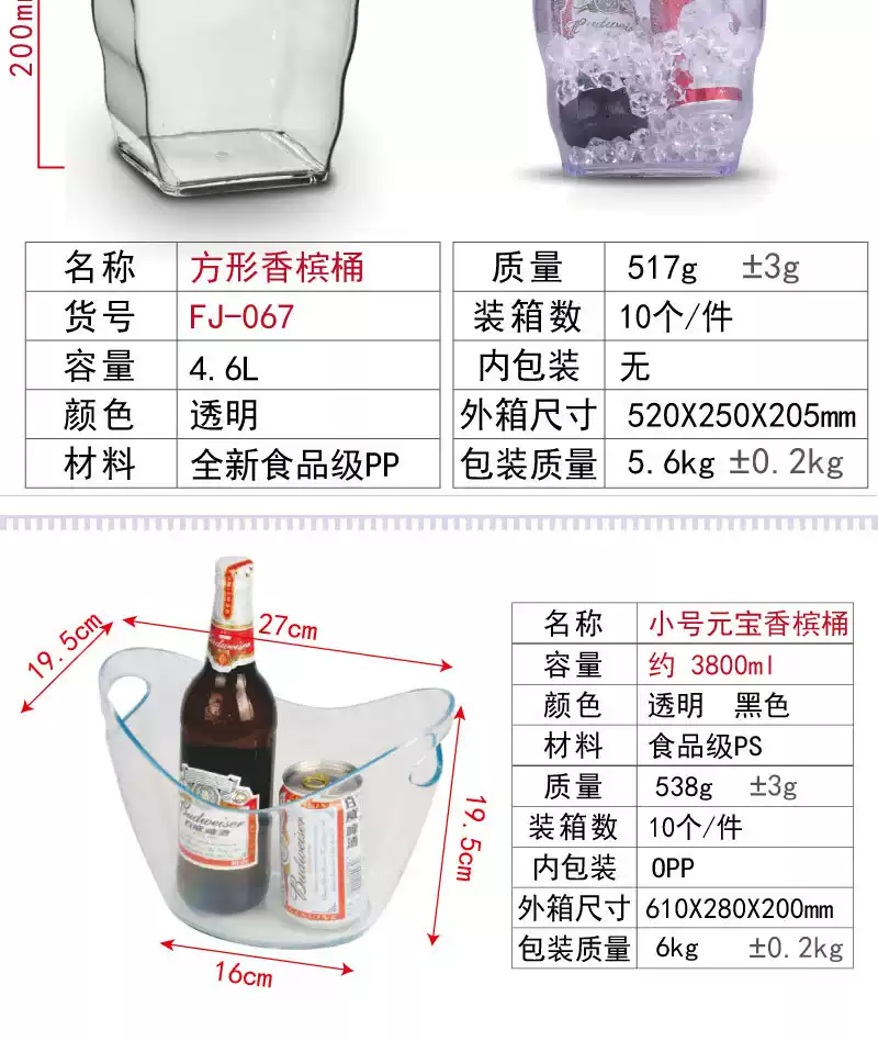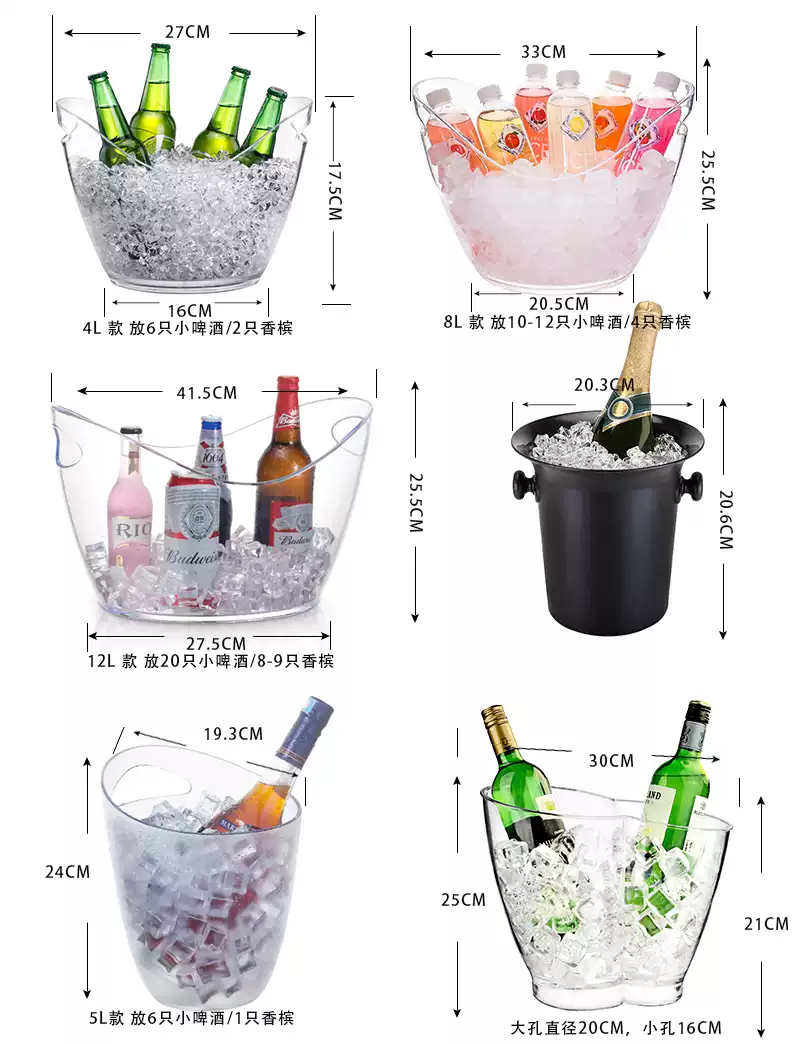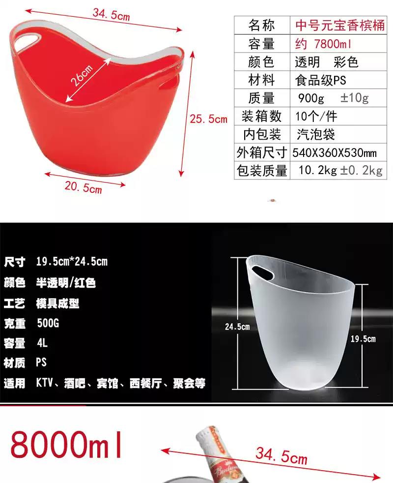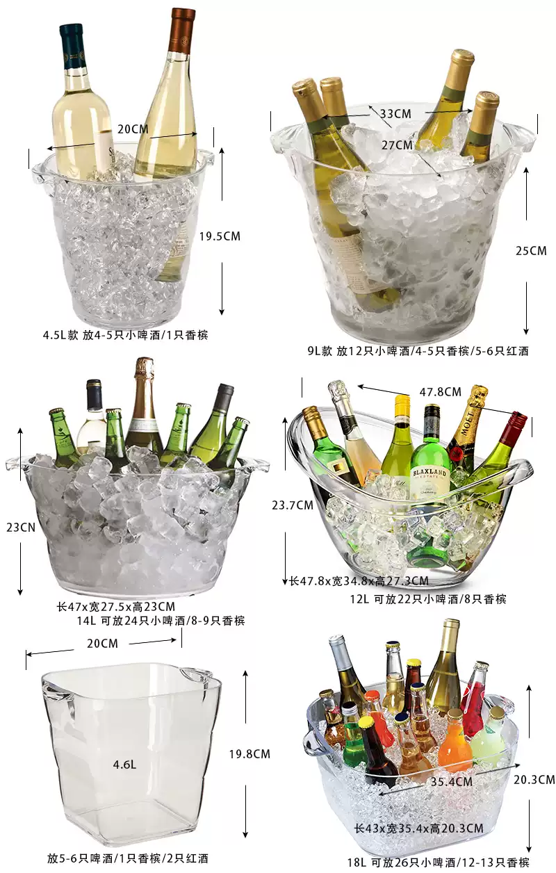 Fantasy bar music restaurant KTV special price large, medium and small Yuanbao ice bucket plastic champagne red wine ice cube ice bucket transparent 5 liters can hold 5 small beers