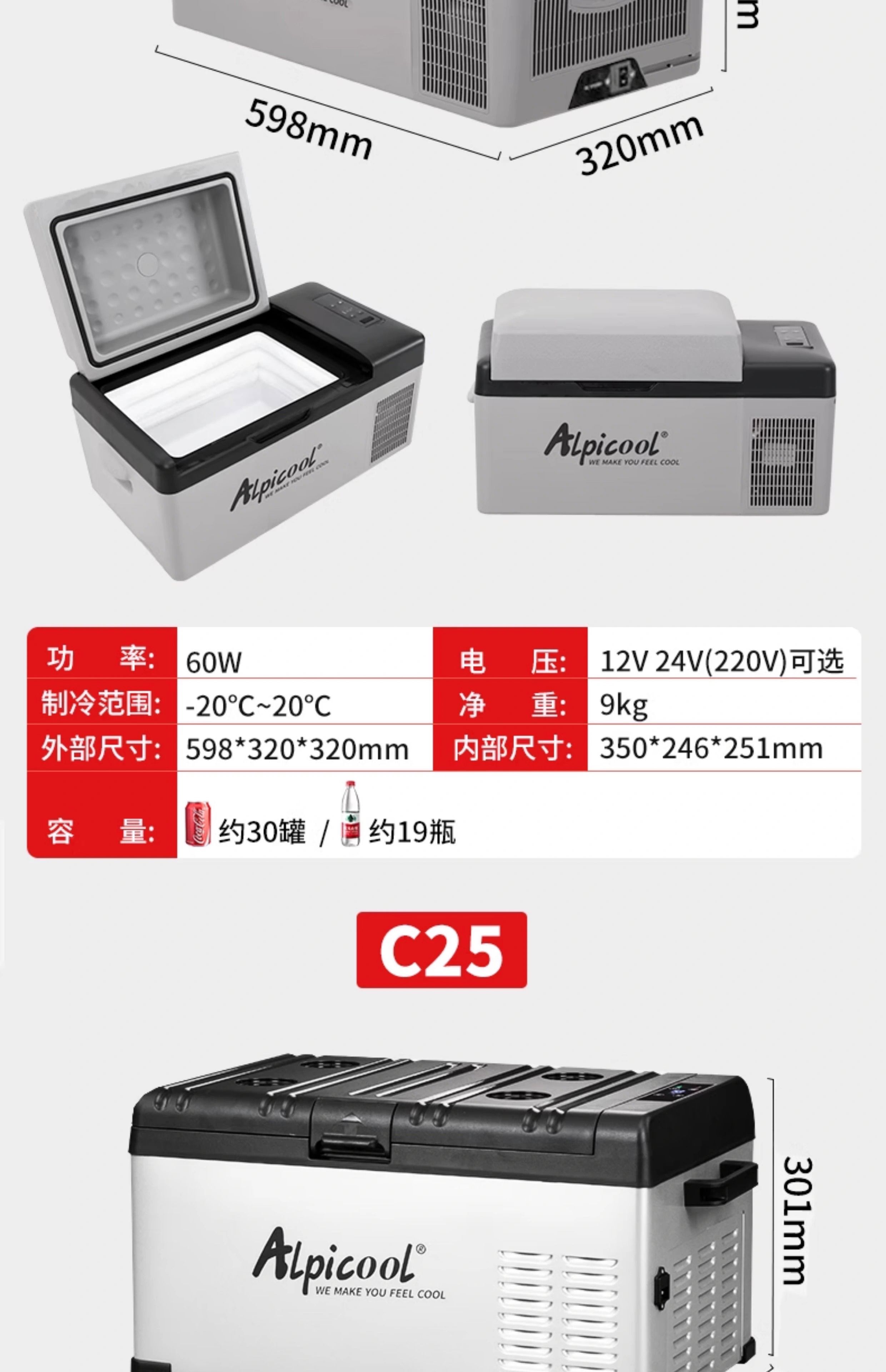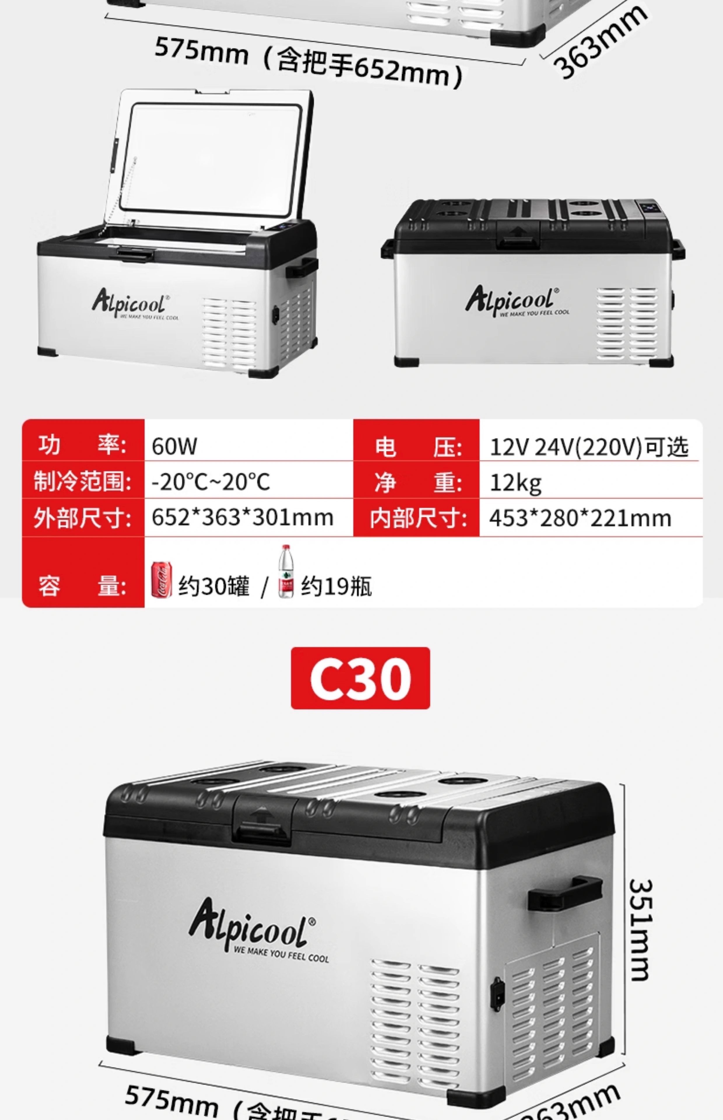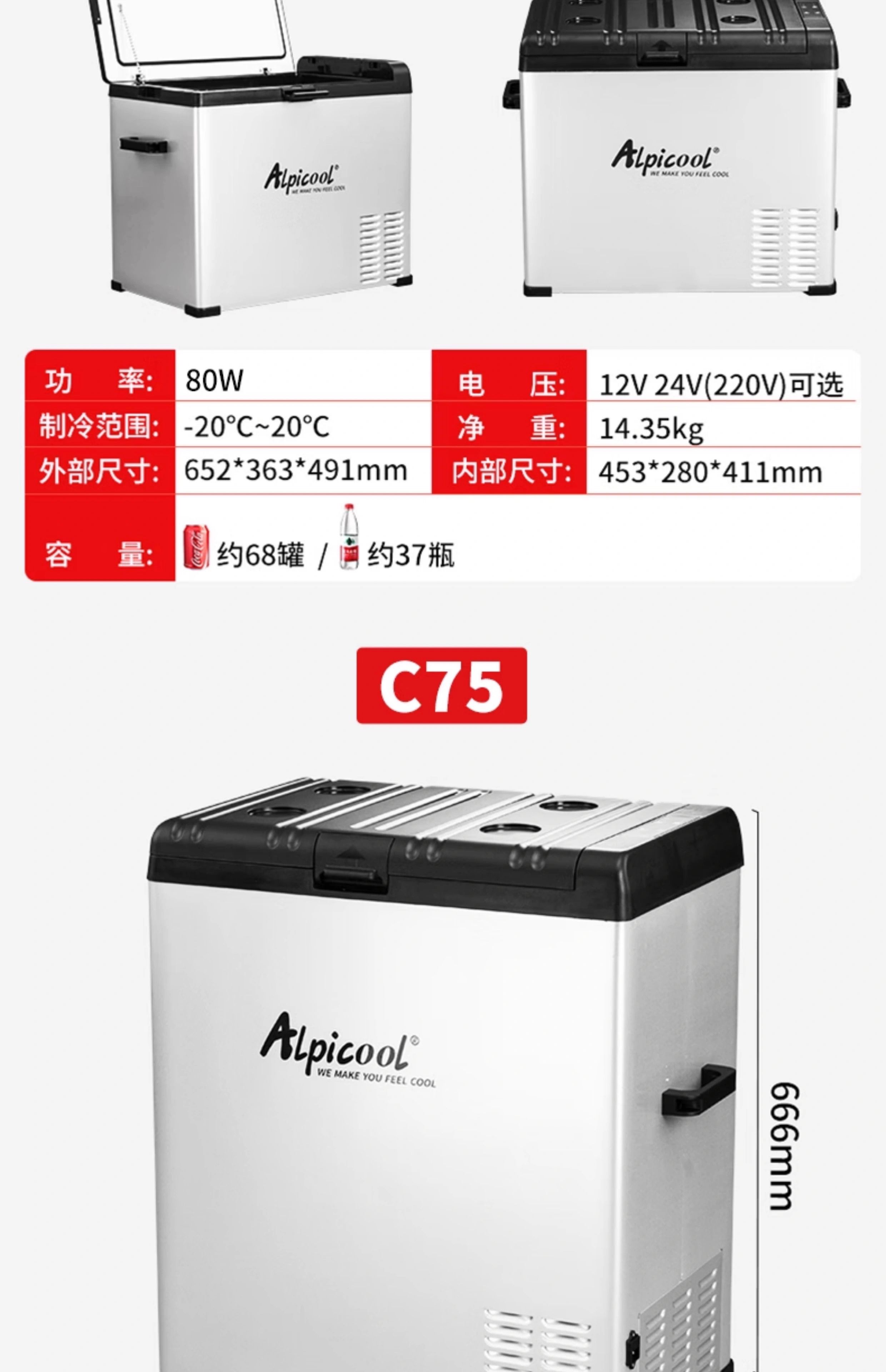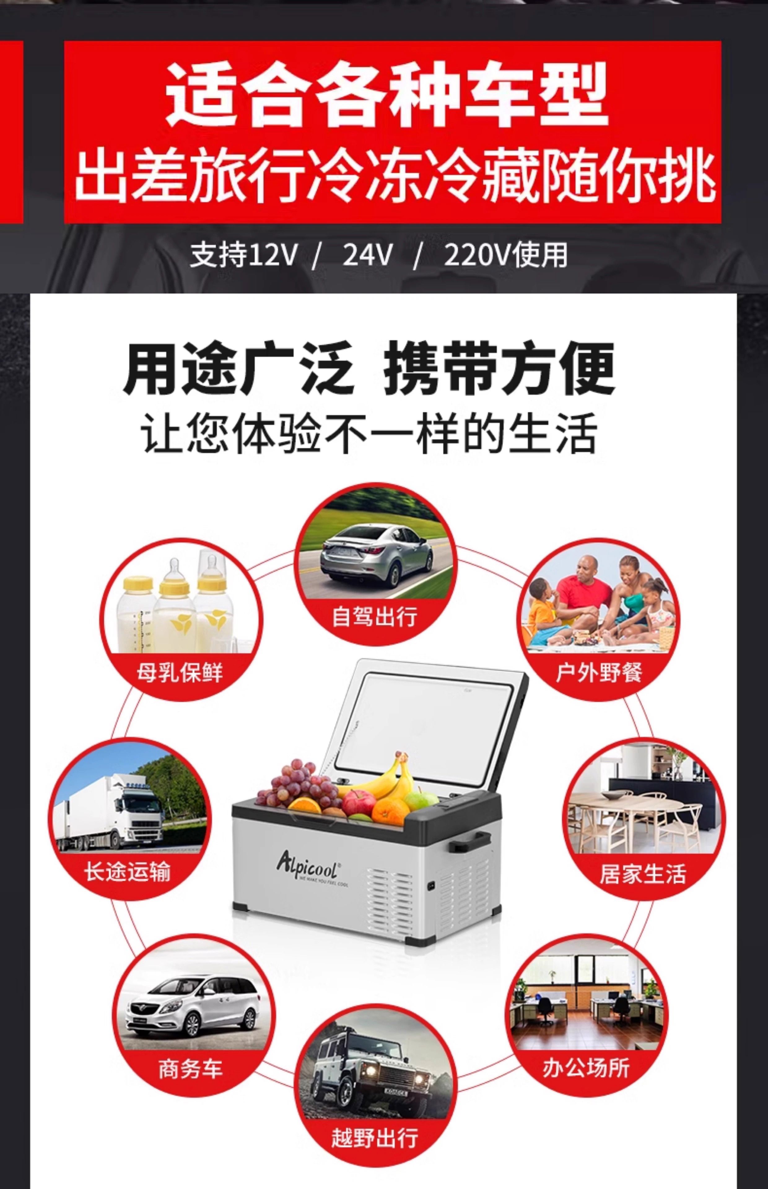 Ice Tiger (Alpicool) Ice Tiger car refrigerator 12v24v universal car home dual-use refrigeration car large truck special refrigerator C15 + digital display panel 12V24V220V