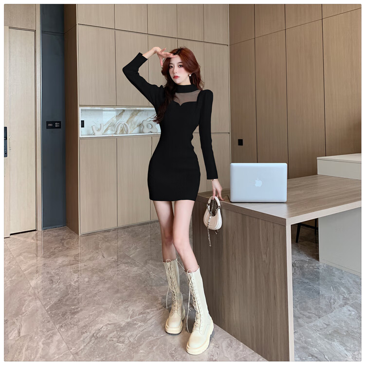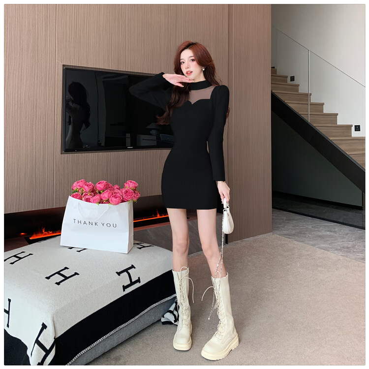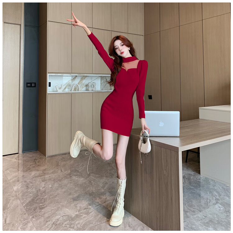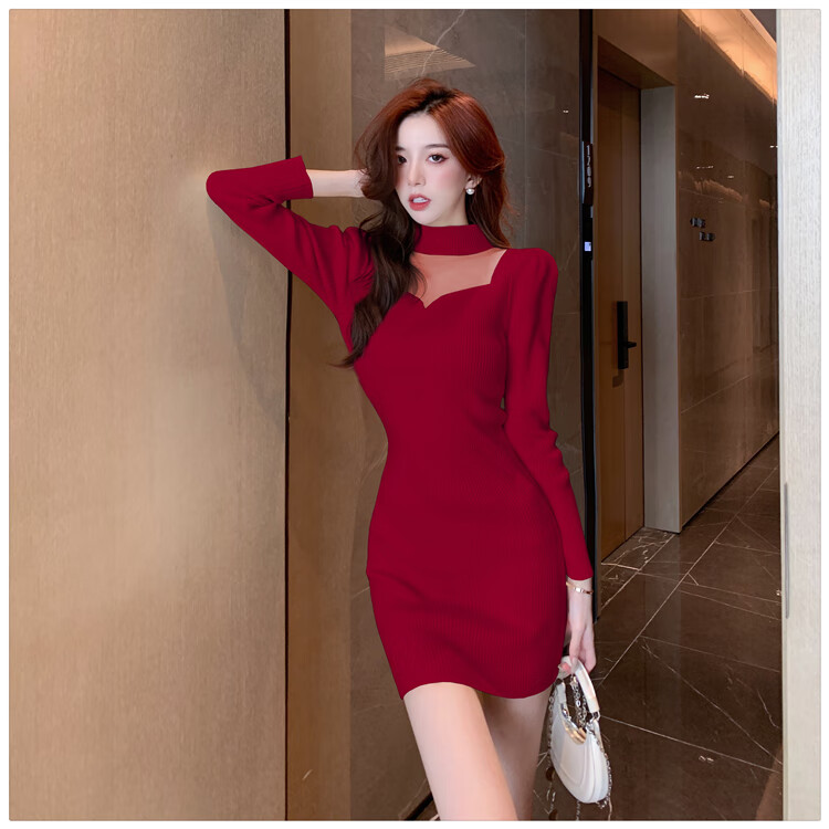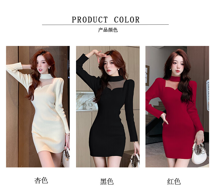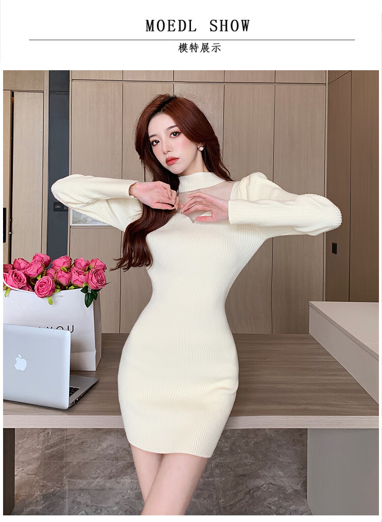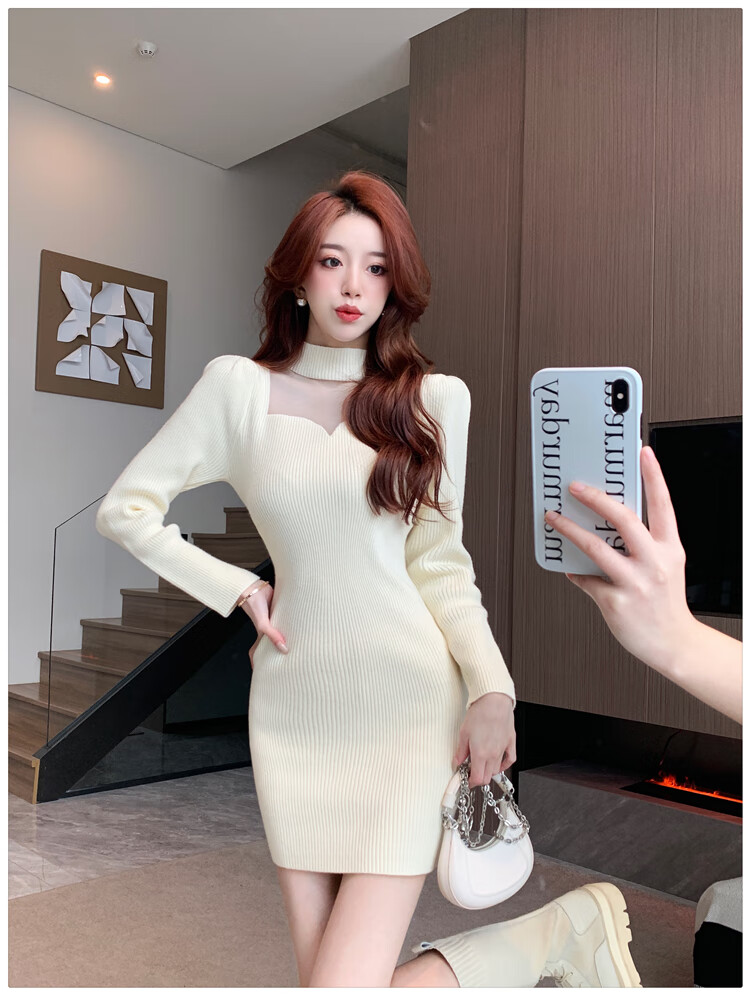 Yoekbird white knitted sweater dress for women autumn and winter 2025 new coat with bottoming slim fit hip skirt apricot style S recommended 80kg-90kg