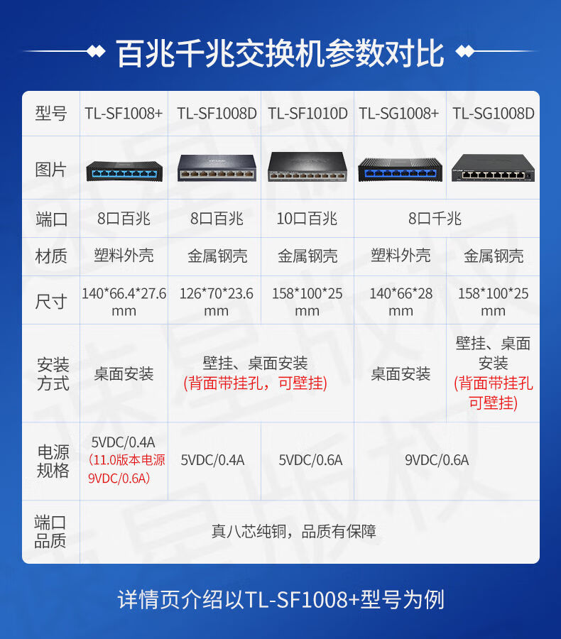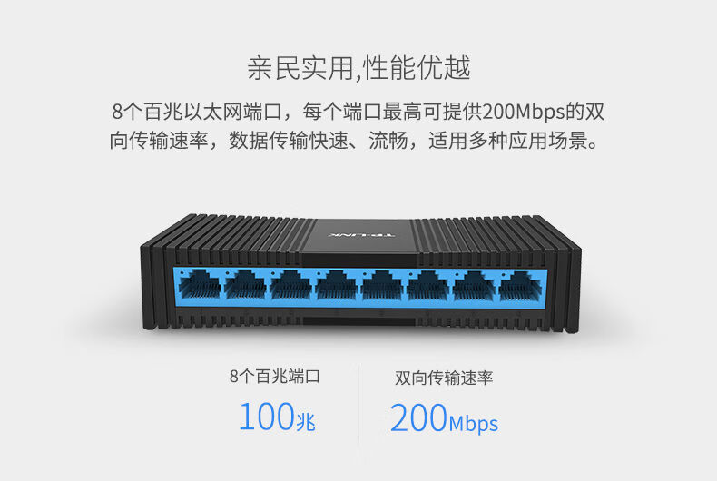 Pulian Pulian (TP-LINK) Pulian (TPLINK) 8-port 100M switch monitoring hub router network cable splitter home dormitory 8-port full Gigabit plastic case TL-SG1008+