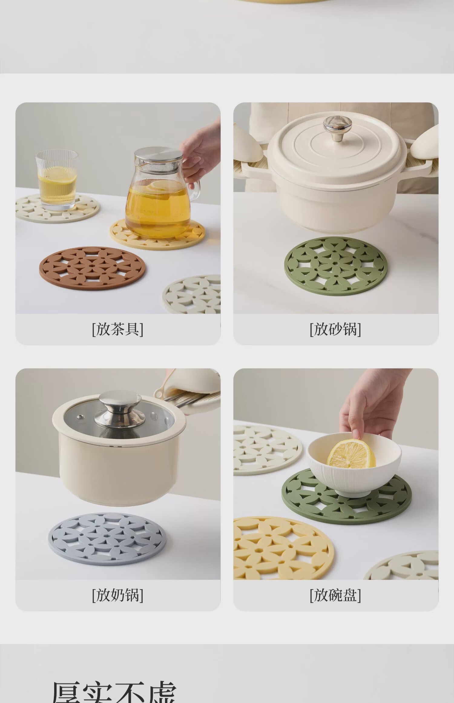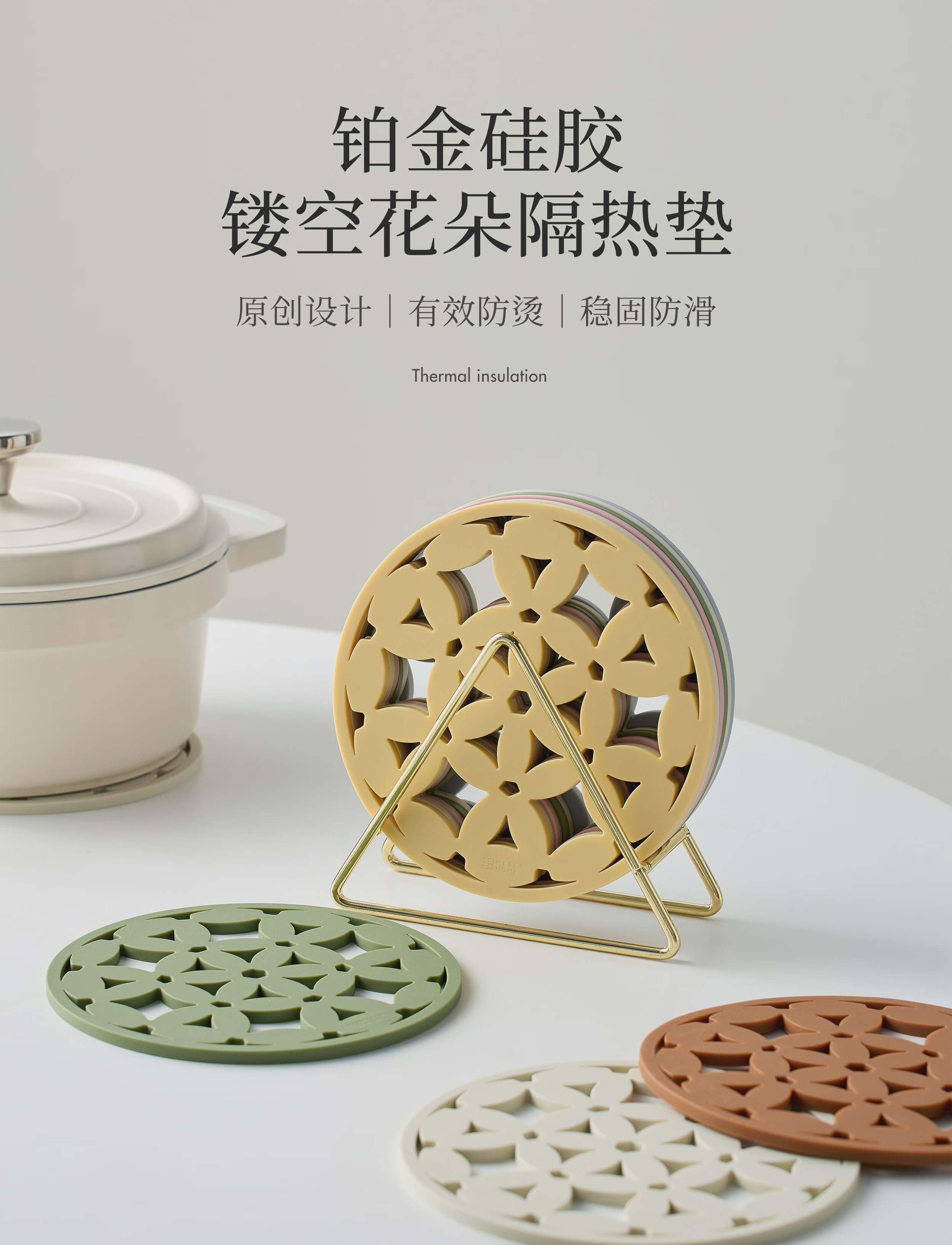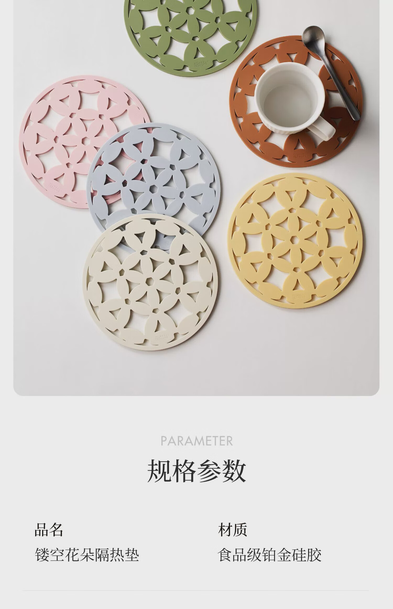 Mili Fengwu Insulation Mat Silicone Placemat Hollow Flower Table Mat Anti-scalding Pot Mat Bowl Mat Coaster 6 Pack Mixed Color B+Gold Trivet Hollow Flower Insulation Mat Platinum Silicone