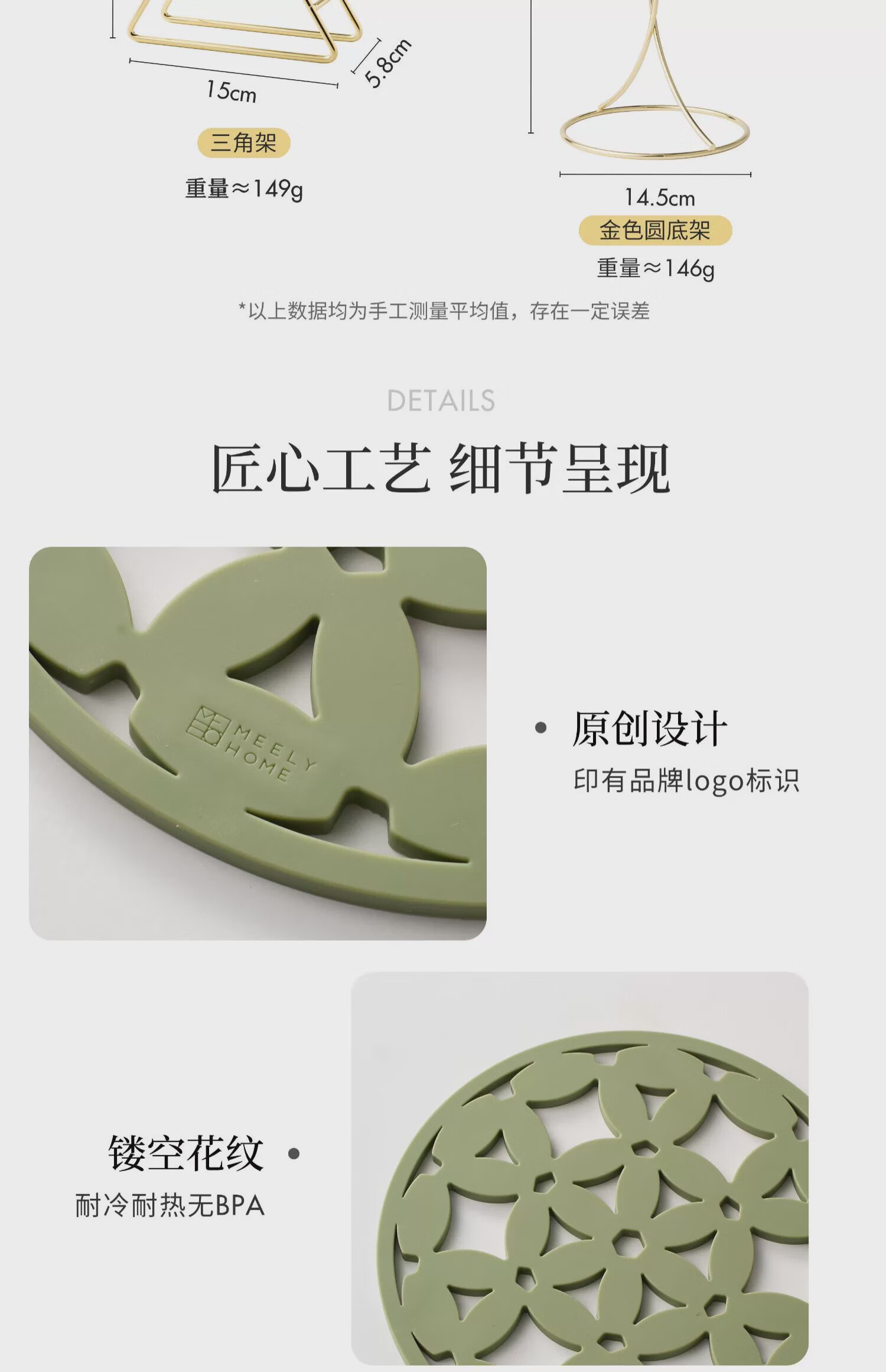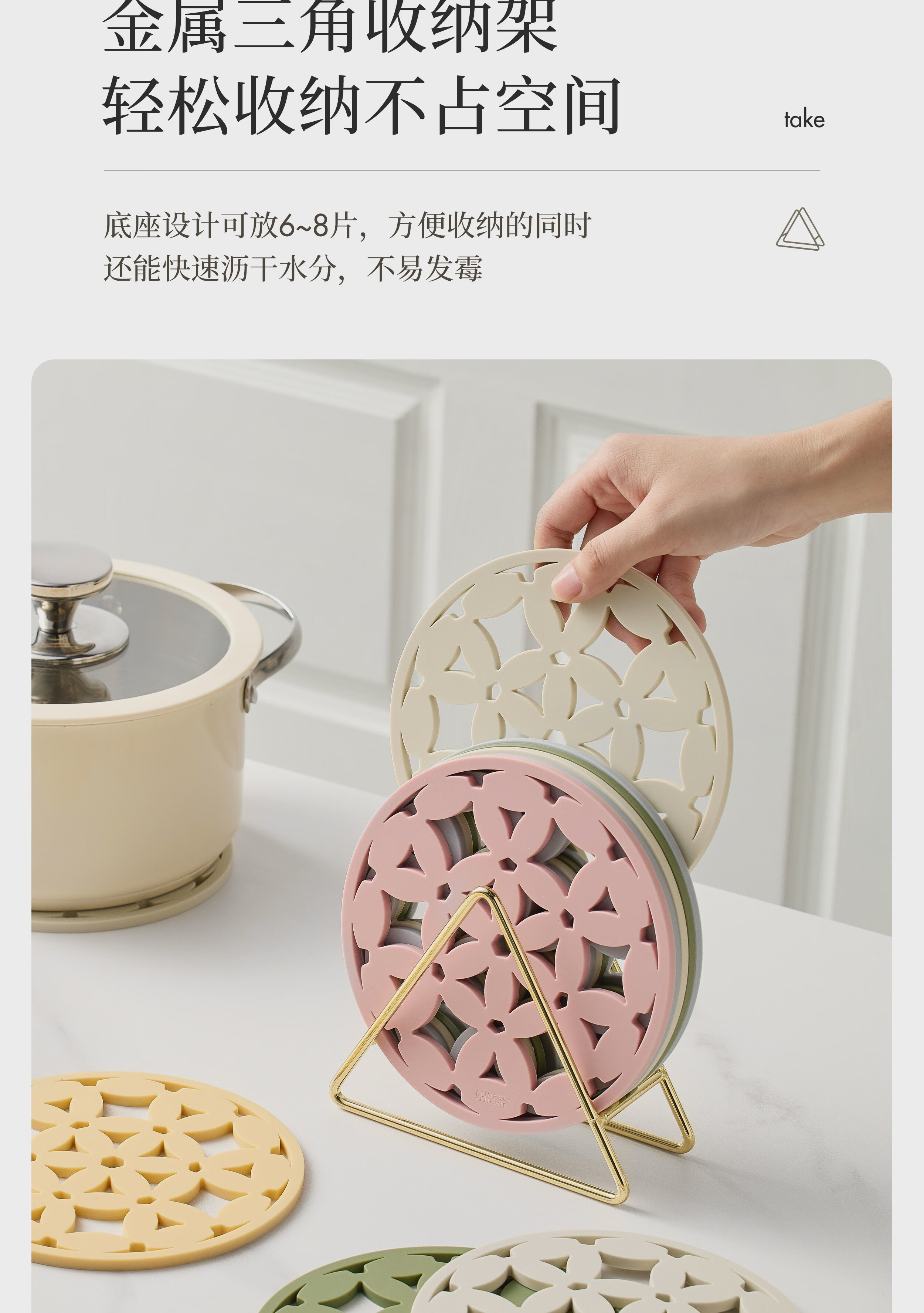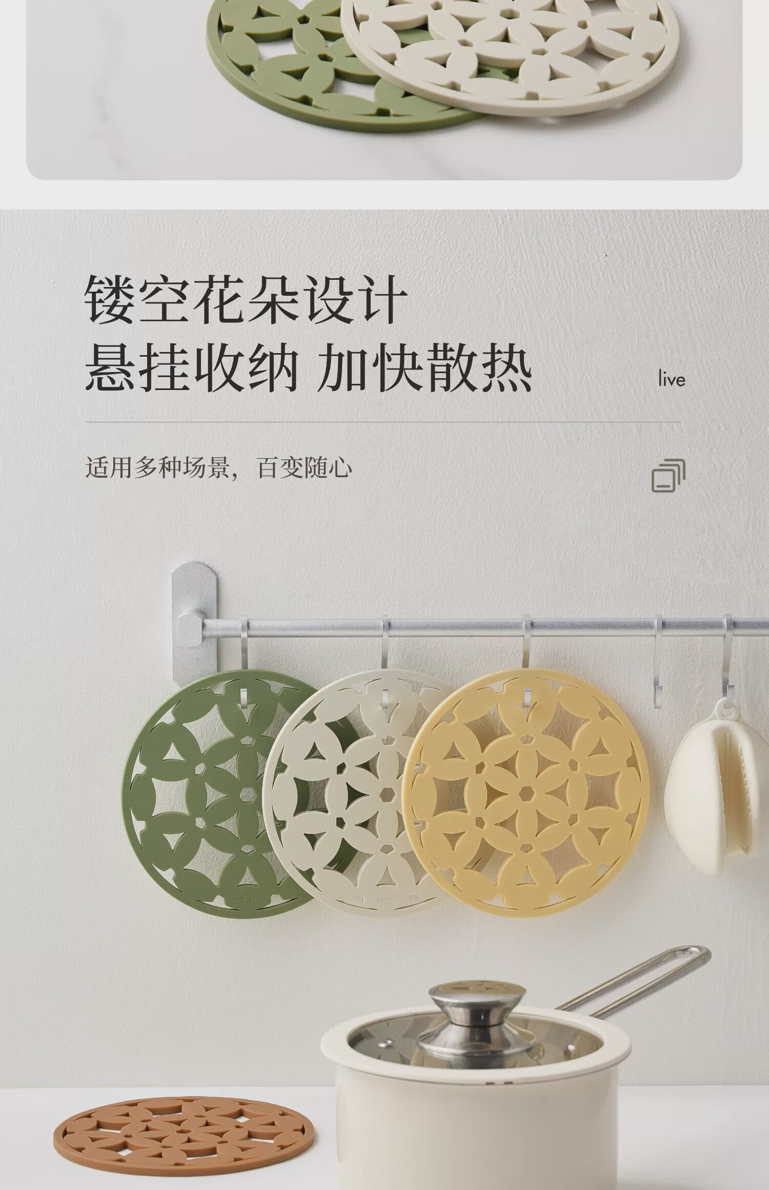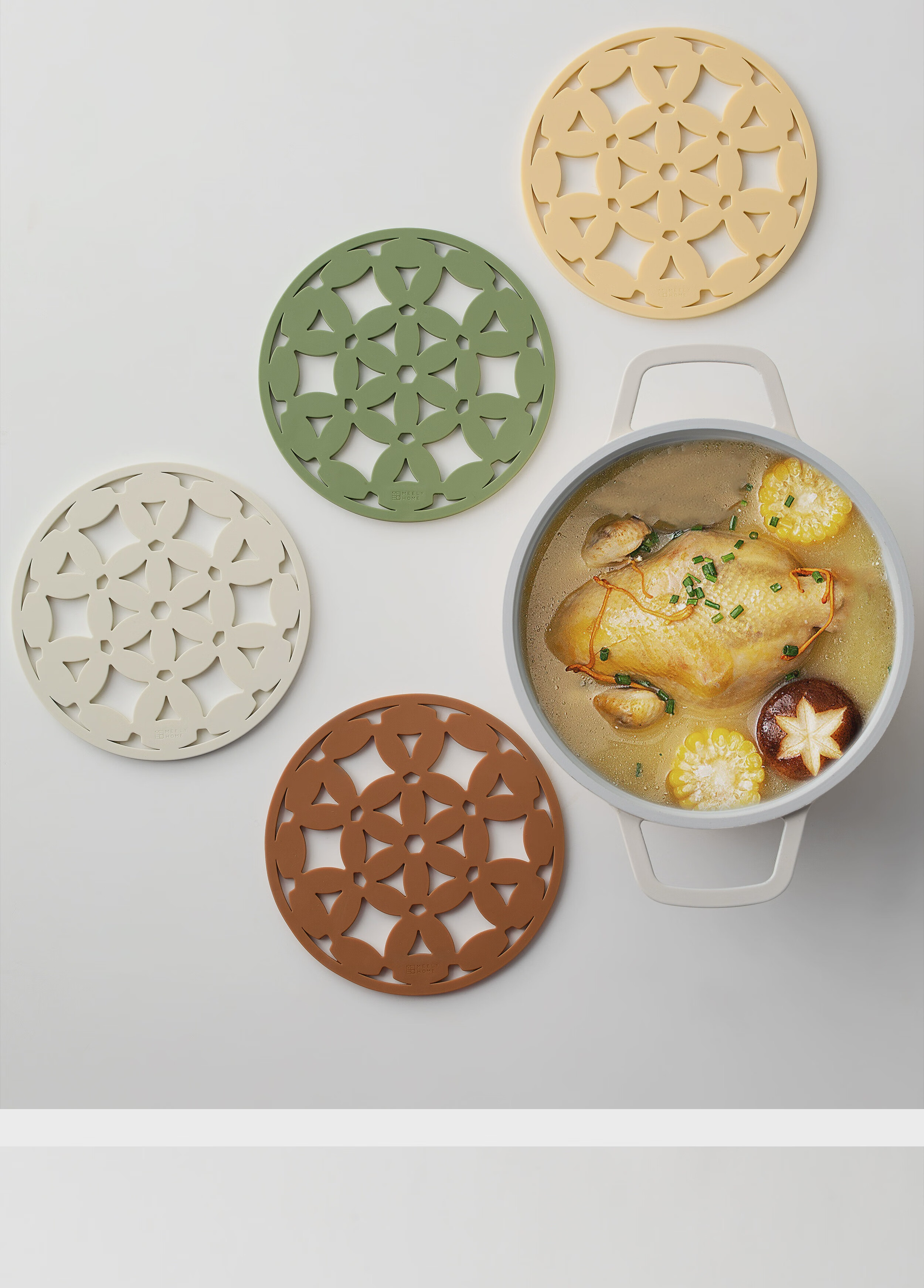 Mili Fengwu Insulation Mat Silicone Placemat Hollow Flower Table Mat Anti-scalding Pot Mat Bowl Mat Coaster 6 Pack Mixed Color B+Gold Trivet Hollow Flower Insulation Mat Platinum Silicone